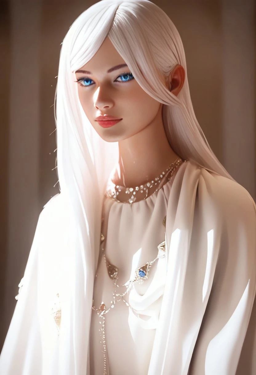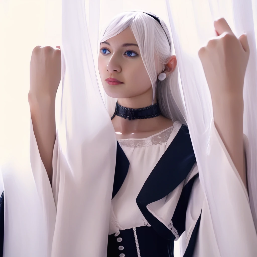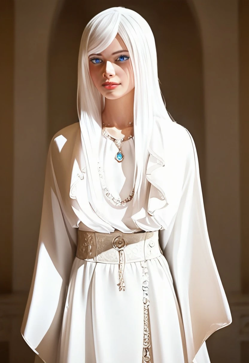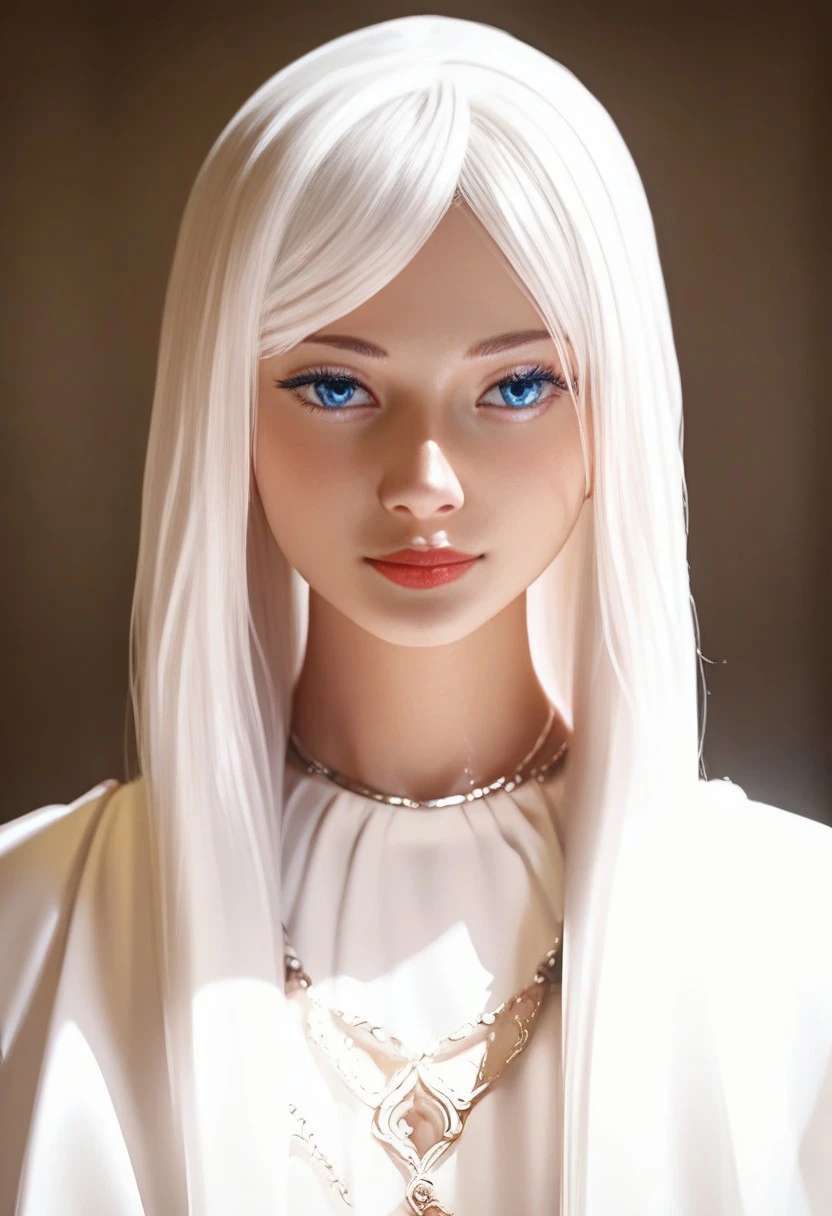 1girl, tsumuri, 1girl, solo, white hair, long hair, dress, blue eyes, robe,