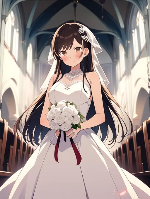 📌Prompt:Mizuhara Chizuru, long hair, brown hair, bangs, blush, brown eyes