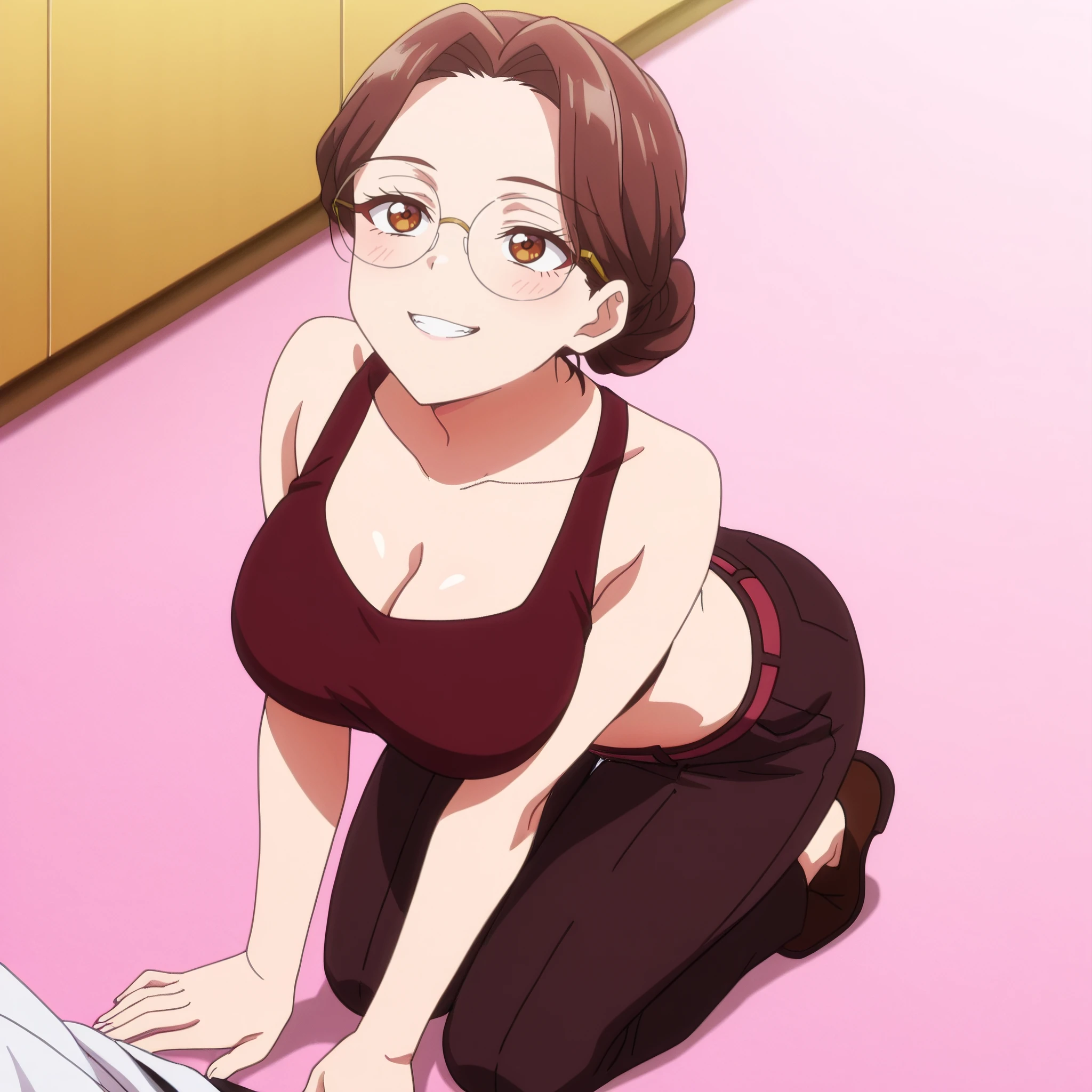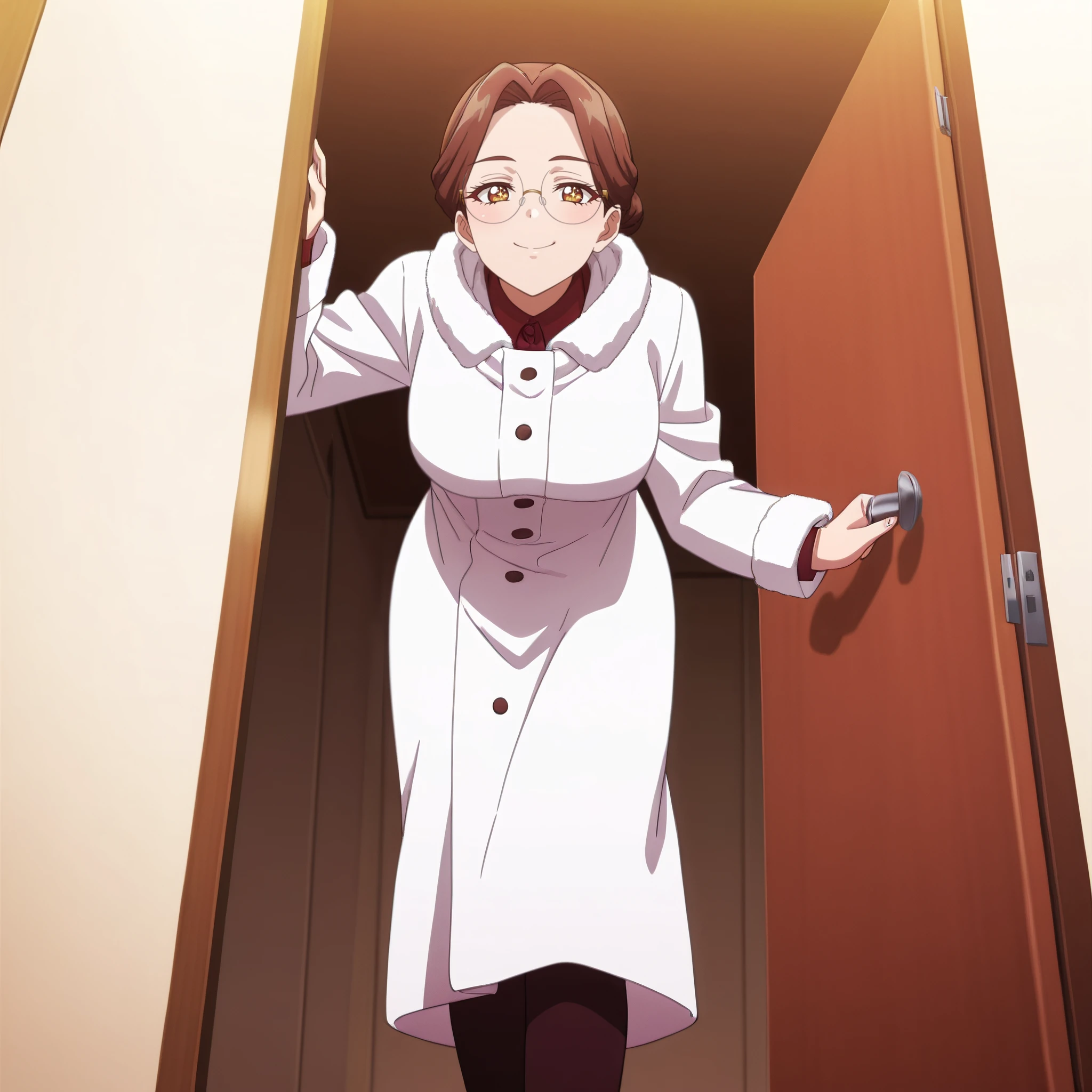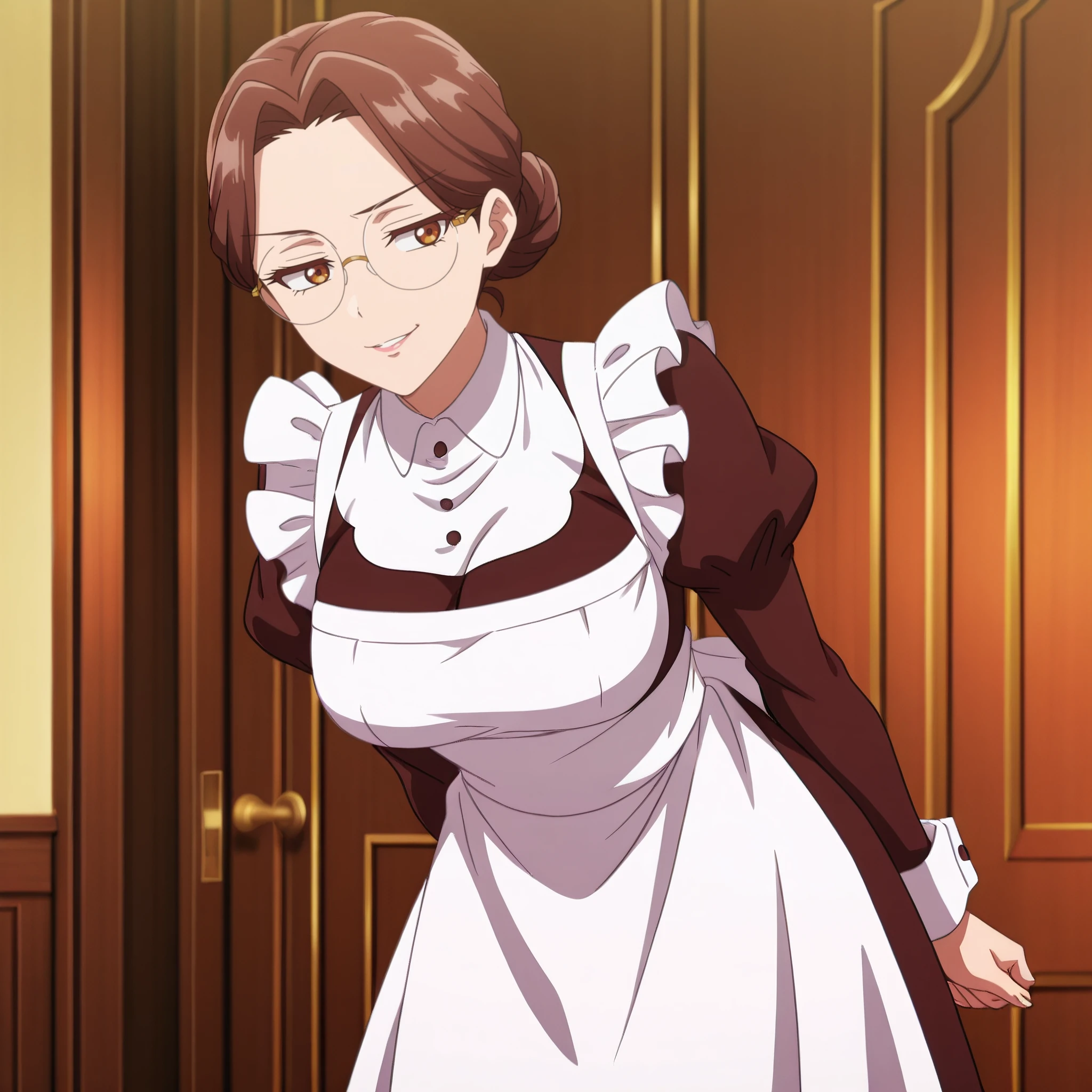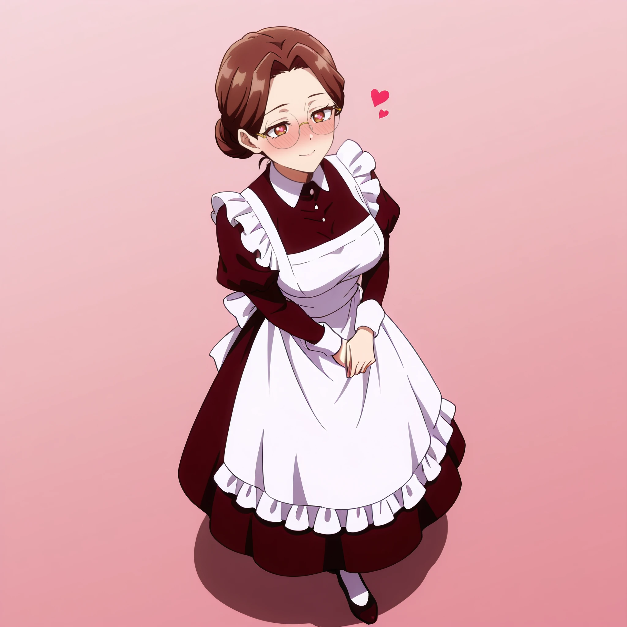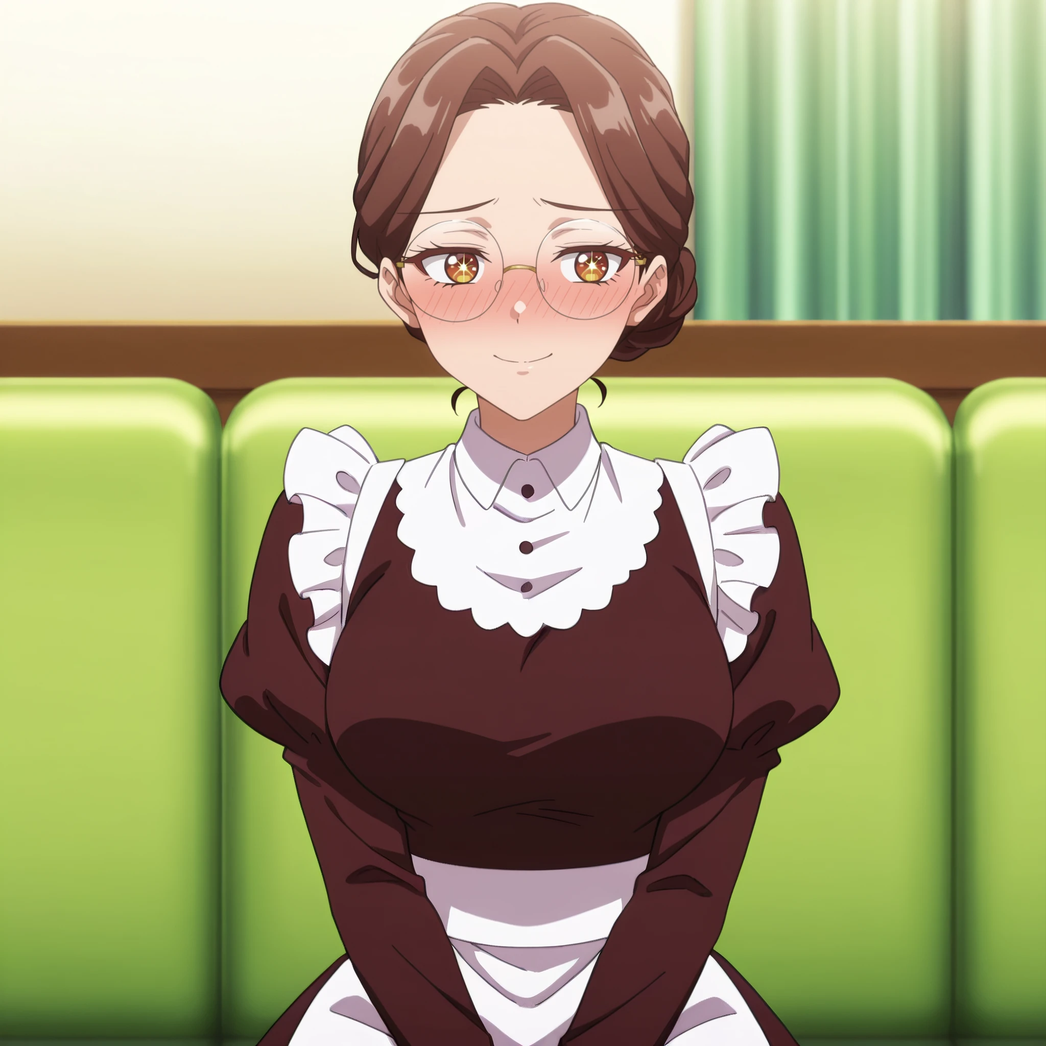 A4OMailen, brown eyes, brown hair, short hair, hair bun, bangs, long hair, glasses,