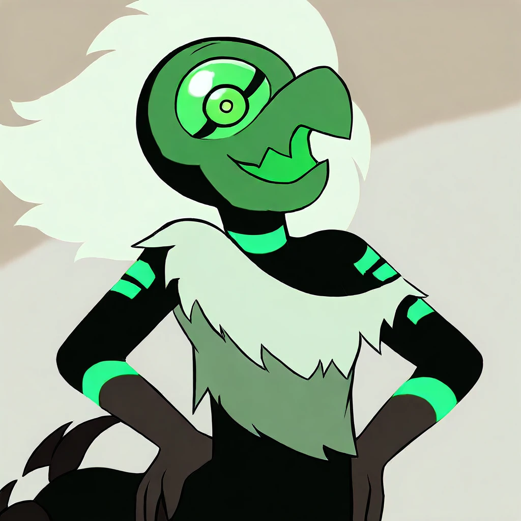 cyclopian eye, green mask, black skin, green markings, thorax,