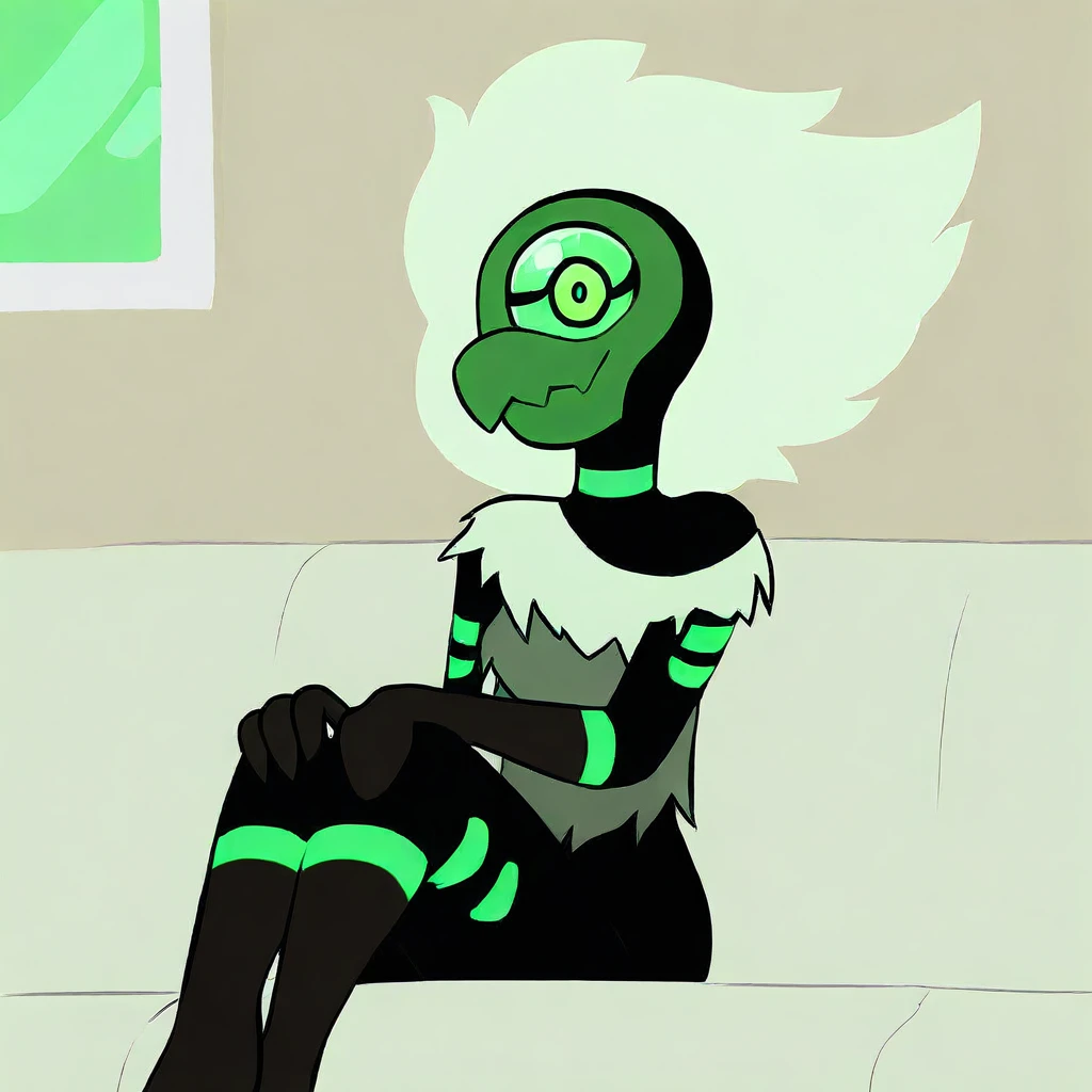centipeetle(Character), female, alien, no humans, green eye, white hair,