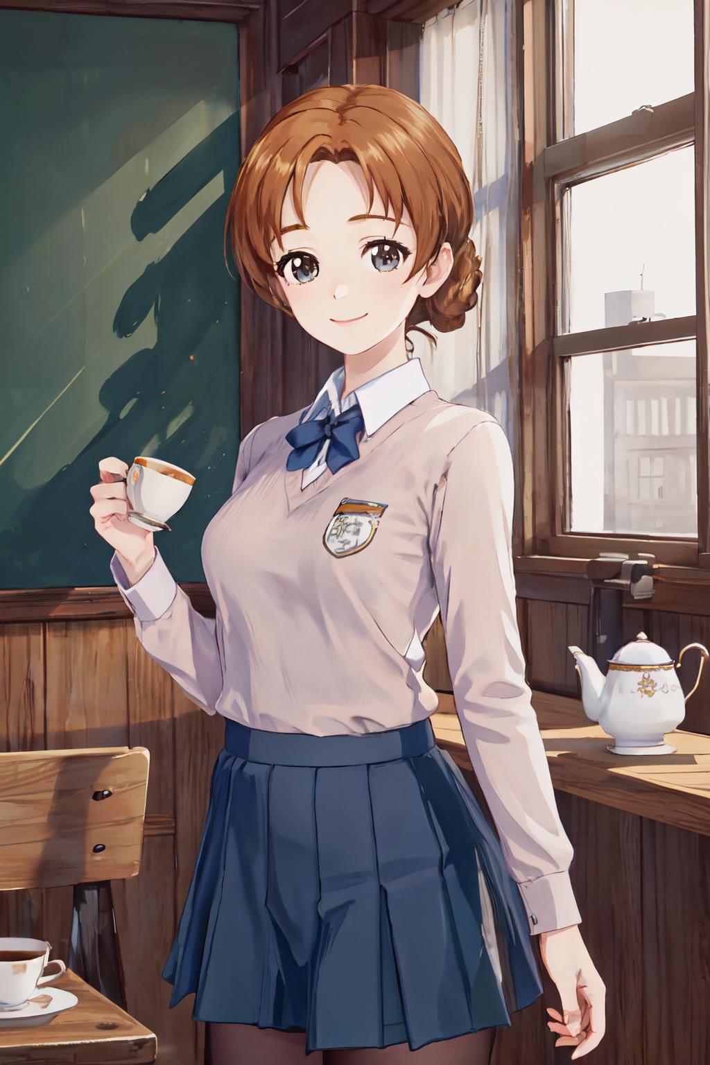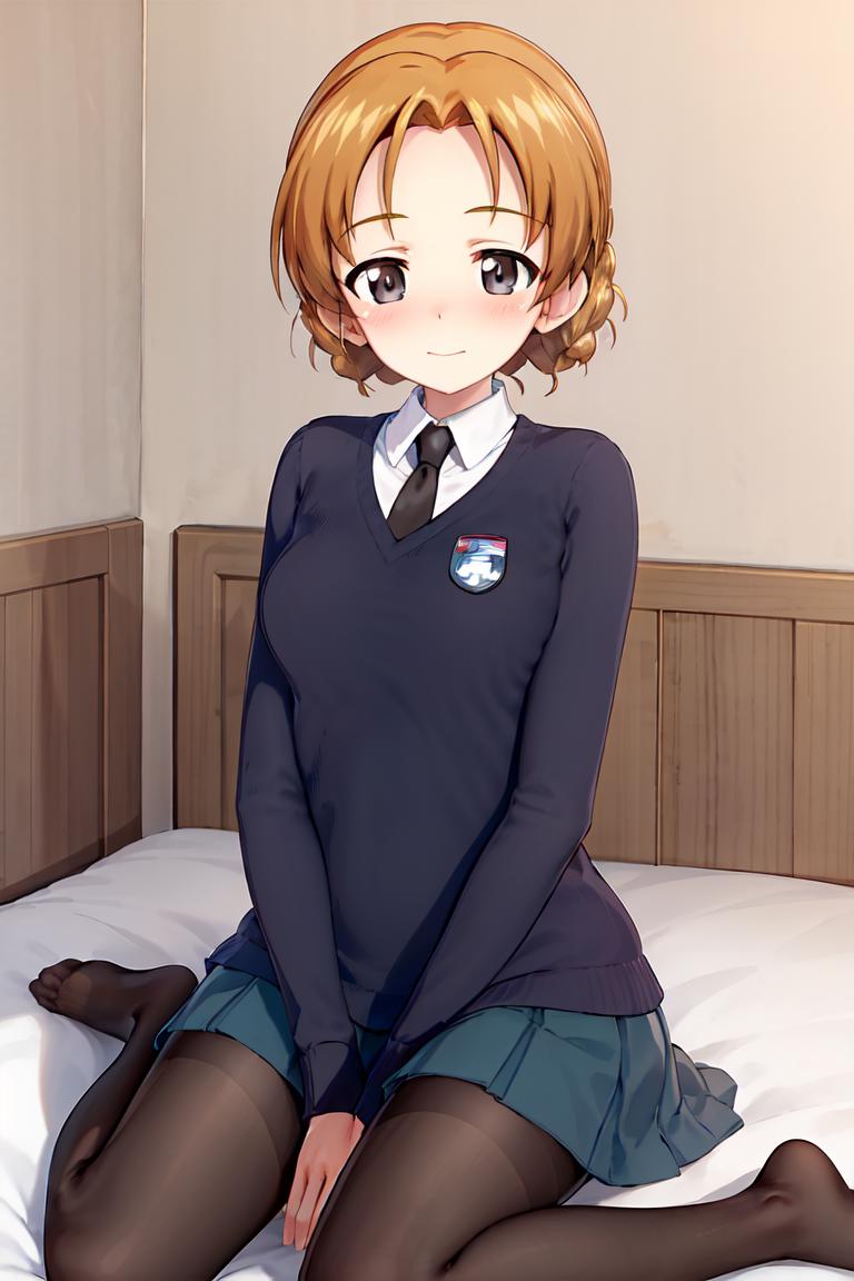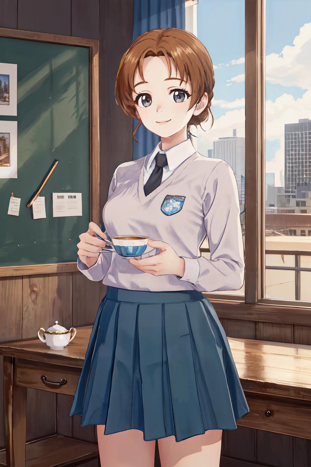 st. gloriana's school uniform, blue sweater, blue skirt, black necktie, white shirt, black pantyhose,st. gloriana's \(emblem\),
