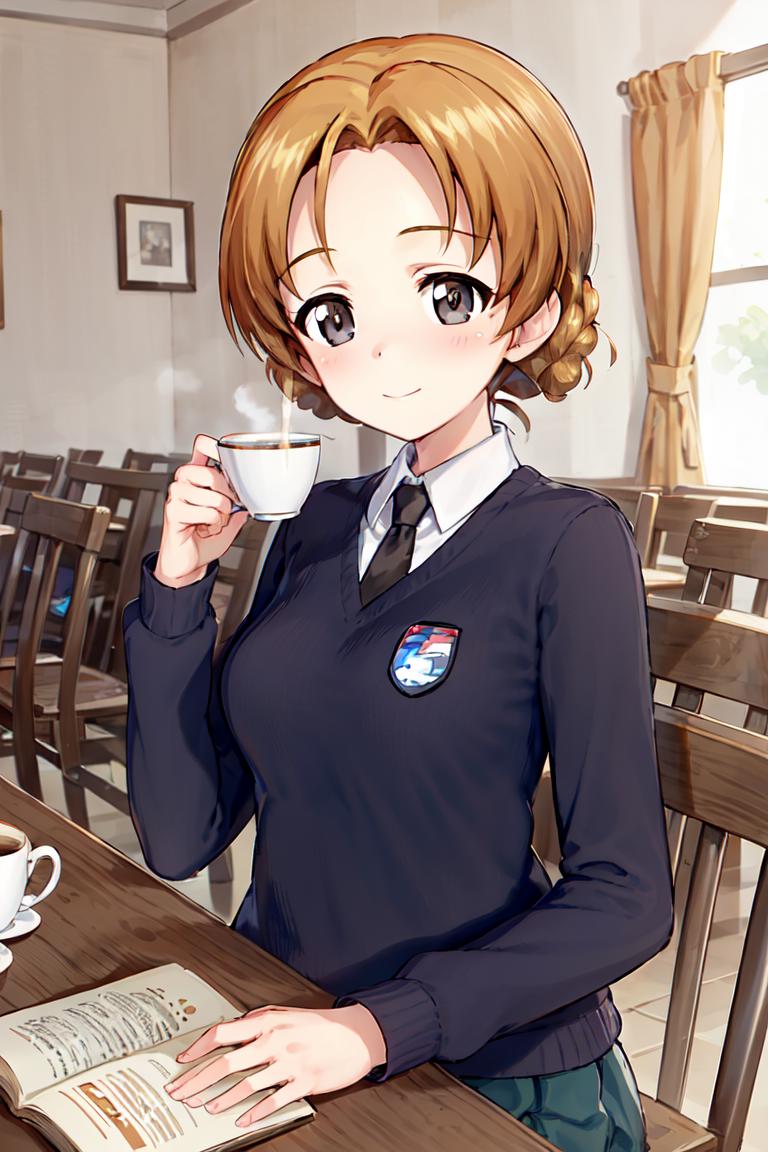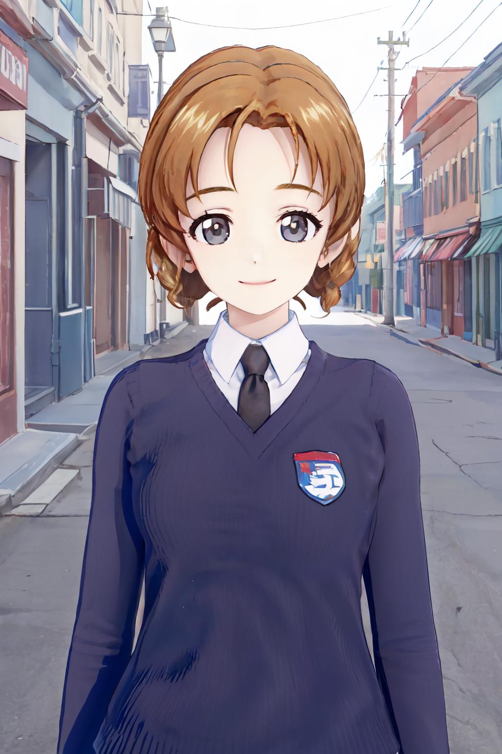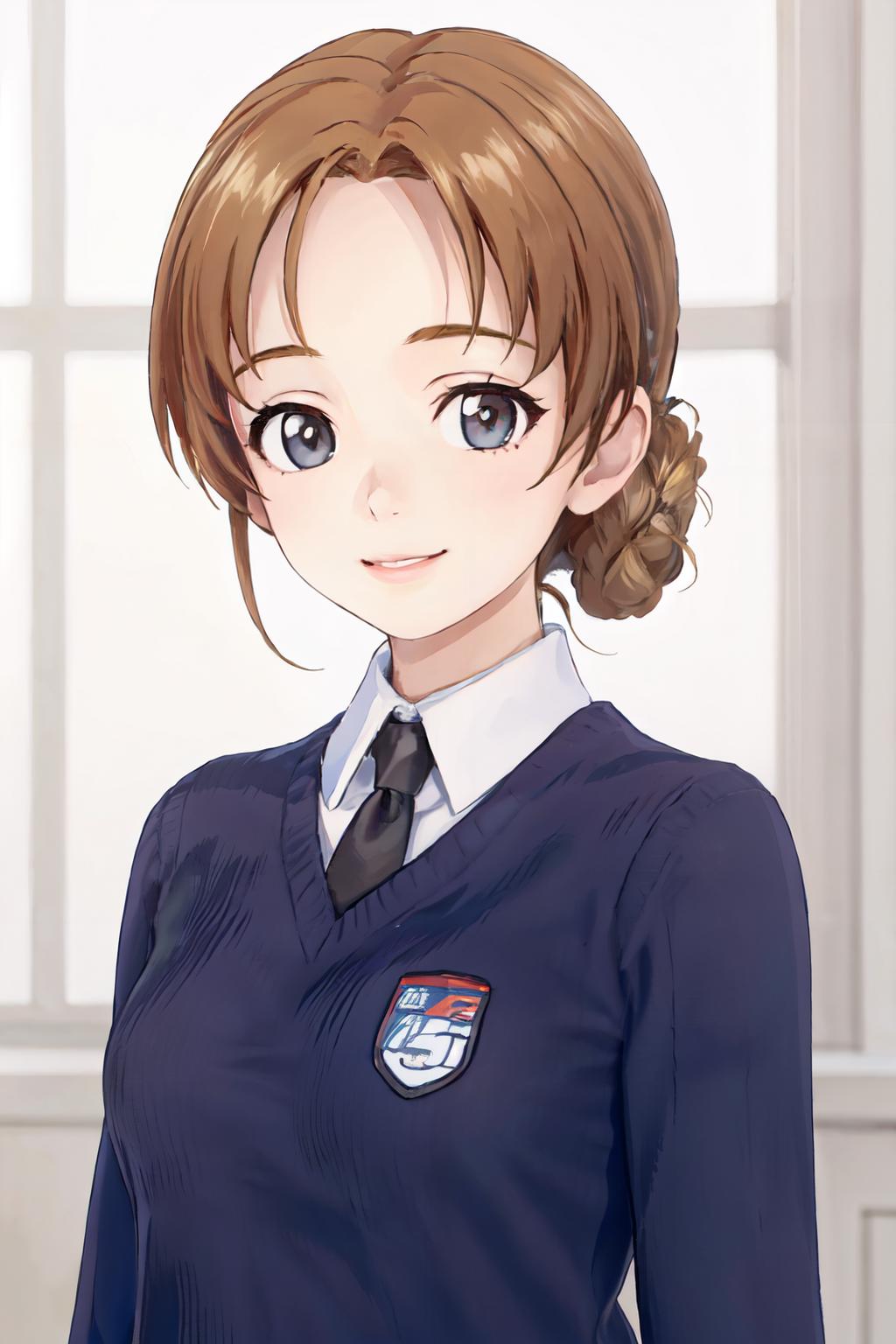st. gloriana's school uniform, blue sweater, blue skirt, black necktie, white shirt, black pantyhose,st. gloriana's \(emblem\),