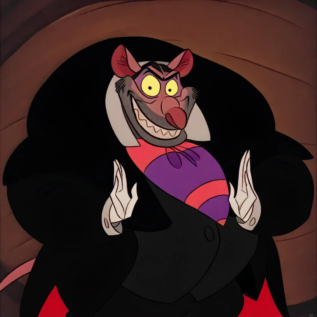 Professor Padraic Ratigan, better known as Professor Ratigan, or simply known by his surname Ratigan, is the main antagonist of Disney's 26th full-length animated feature film The Great Mouse Detective, which is based on the children's book series Basil of Baker’s Street by the late Eve Titus and the late Paul Galdone.