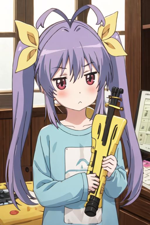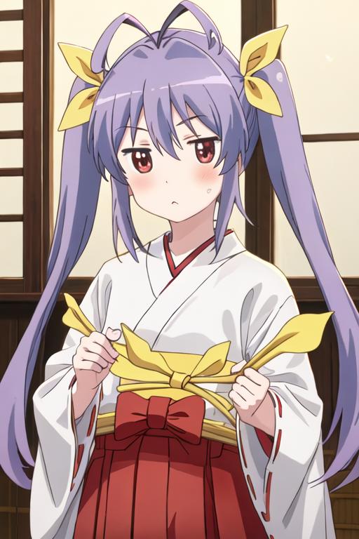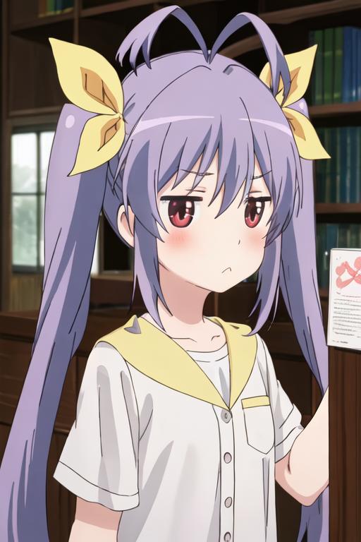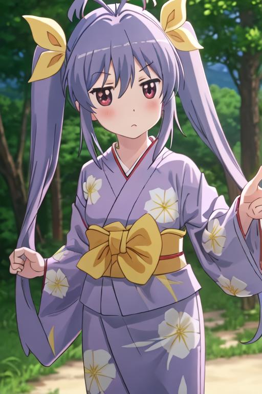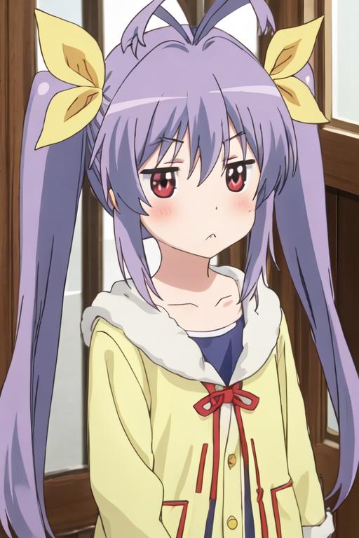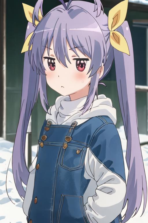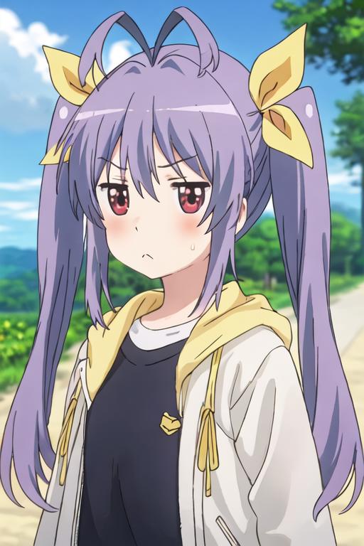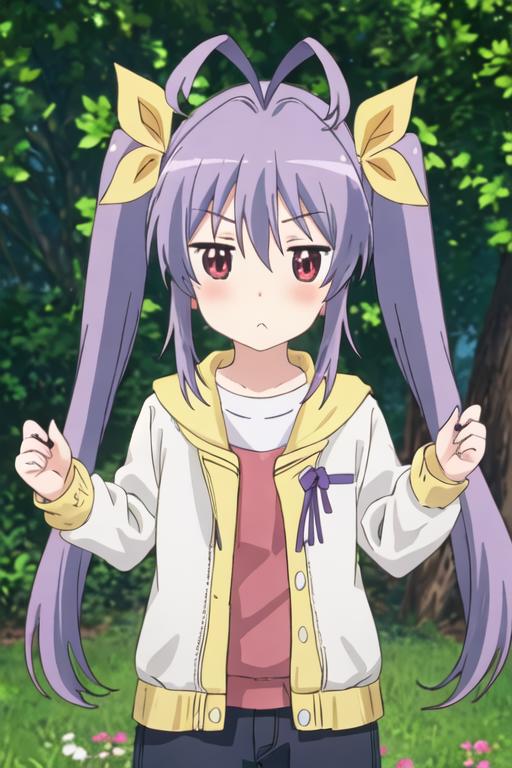 The trigger word is miyauchi_renge_nonnonbiyori, and the recommended tags are best quality, masterpiece, highres, solo, {miyauchi_renge_nonnonbiyori:1.15}, purple_hair, red_eyes, long_hair, twintails, ribbon, hair_ribbon, blush, antenna_hair, yellow_ribbon, hair_between_eyes.
