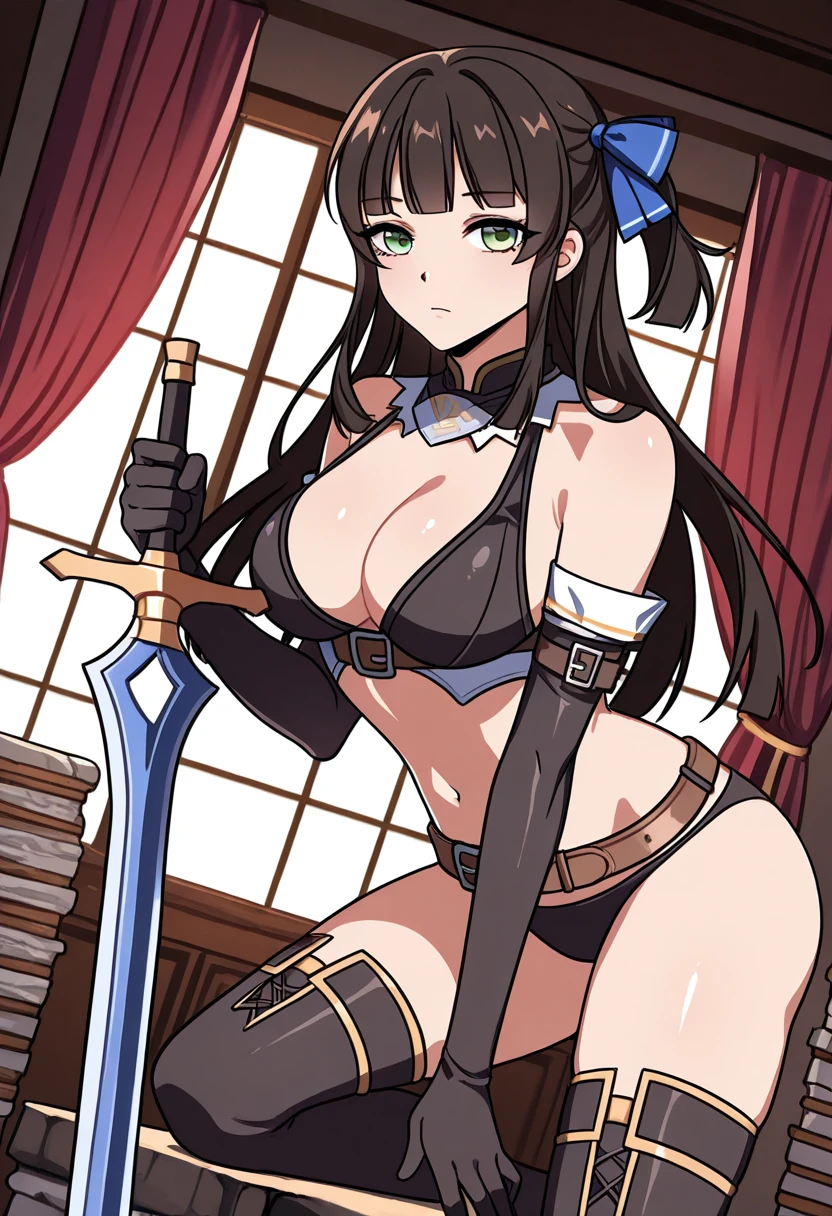 shoulder armor, black thighhighs, shirt, gauntlets, cape, lace-up boots, short shortsClothes Yomi: