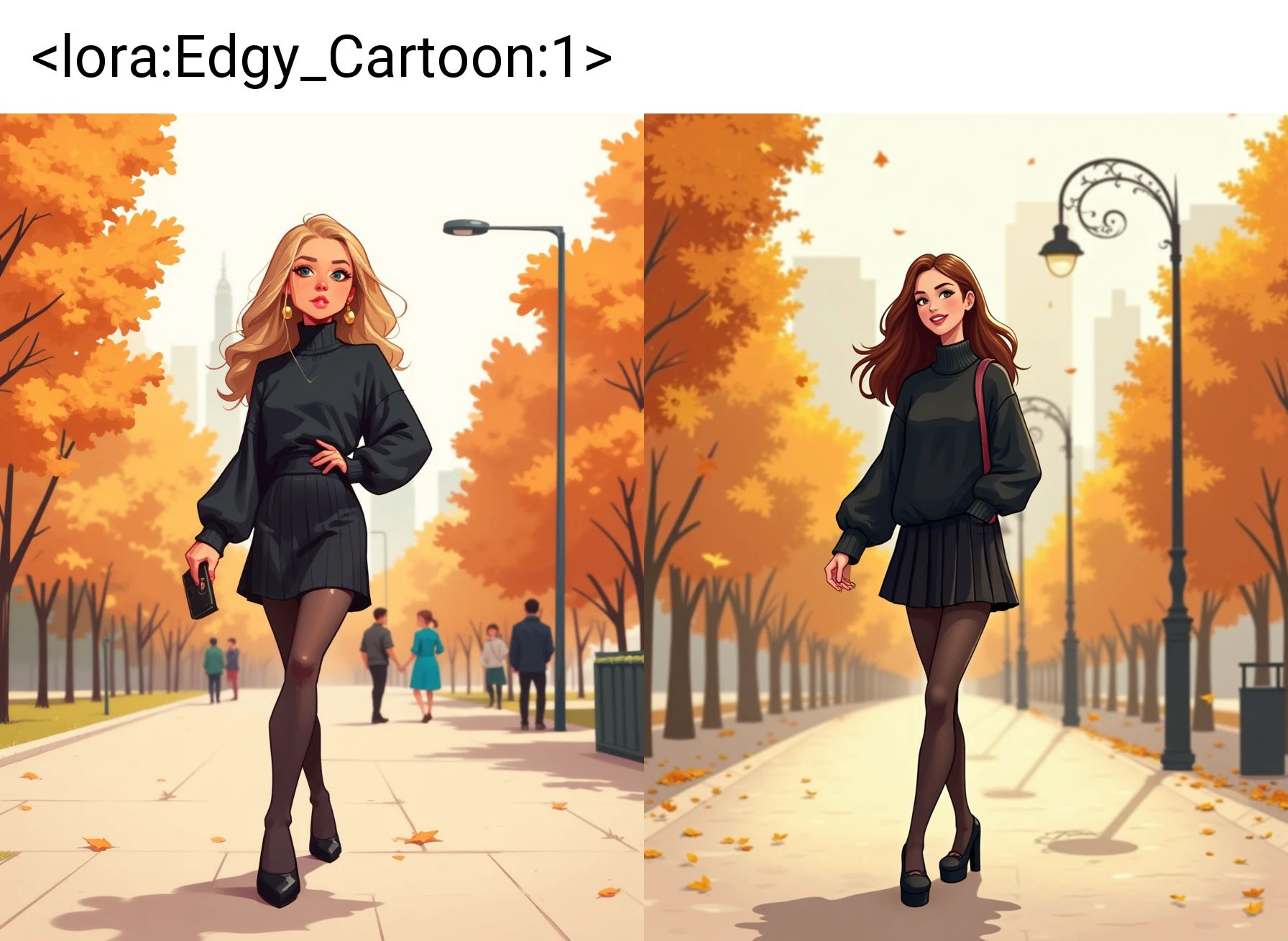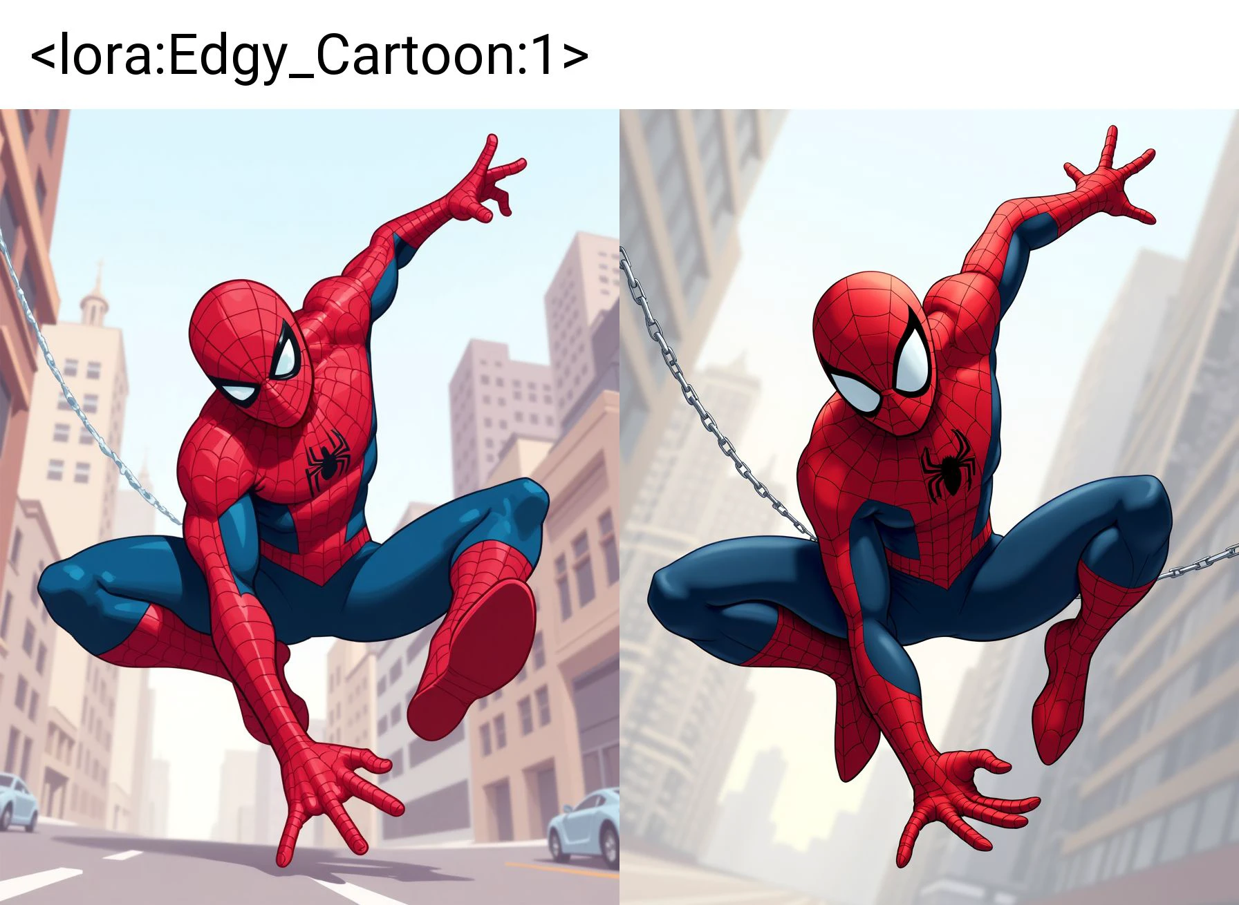 I wanted the greater range of Flux so I trained the LoRA on a set of 60 images autocaptioned by CivitAI. I removed the descriptions of "modern digital cartoon" and "anime style," only leaving the subject, but certain subjects require those tags to get the right look.