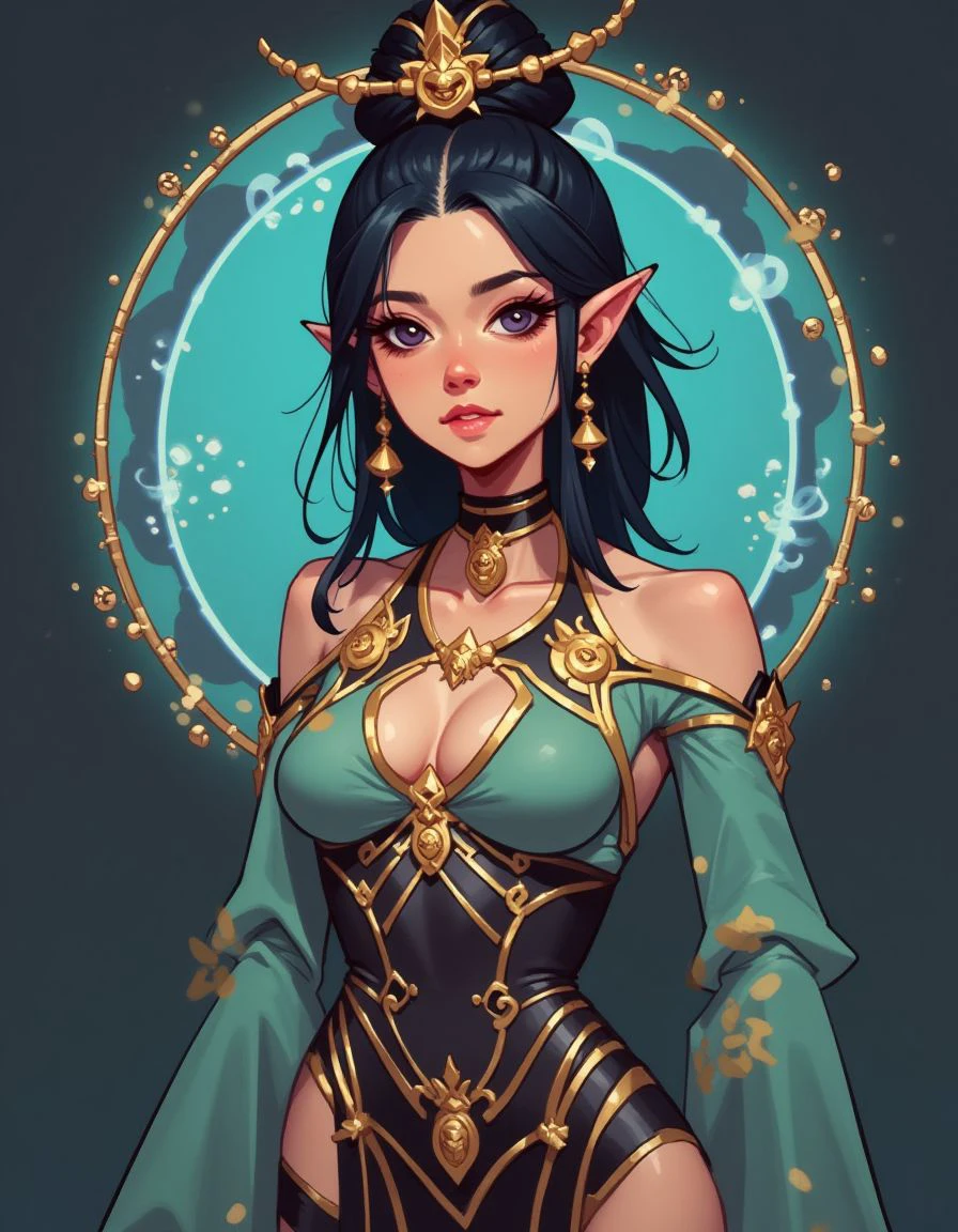 Negative prompt: Score_4, score_5, score_6, ugly, distorted, 3d, render, photograph, big hands, muscular female