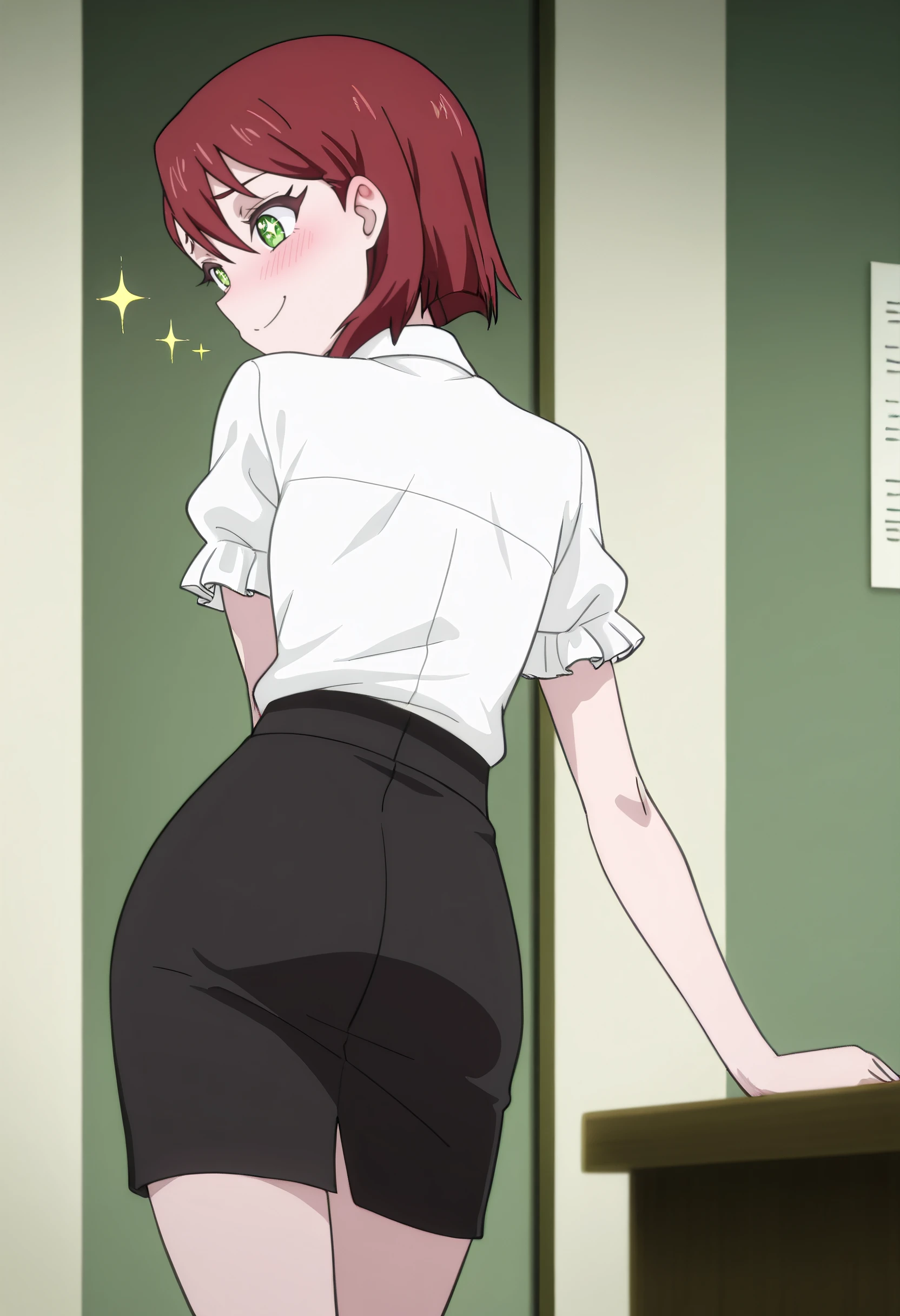 HNMDina, red hair, short hair, green eyes,