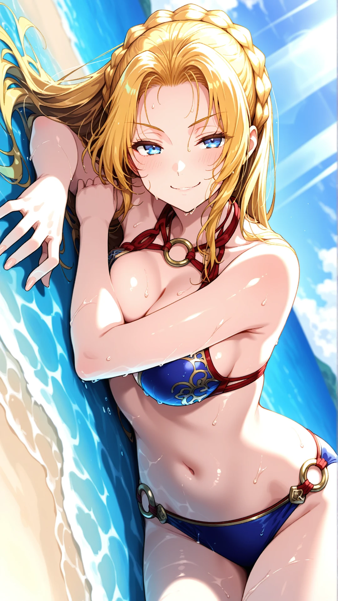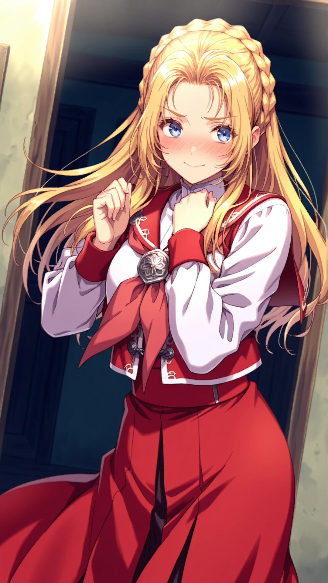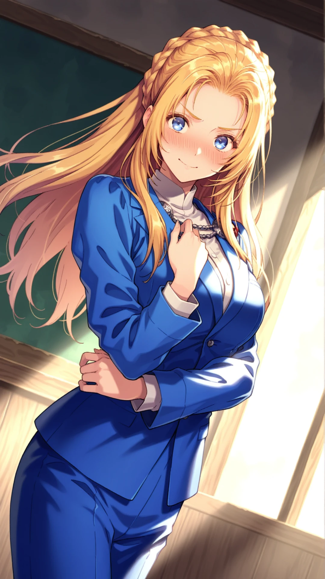 Appearance:blue eyes,blonde hair, long hair,braid,