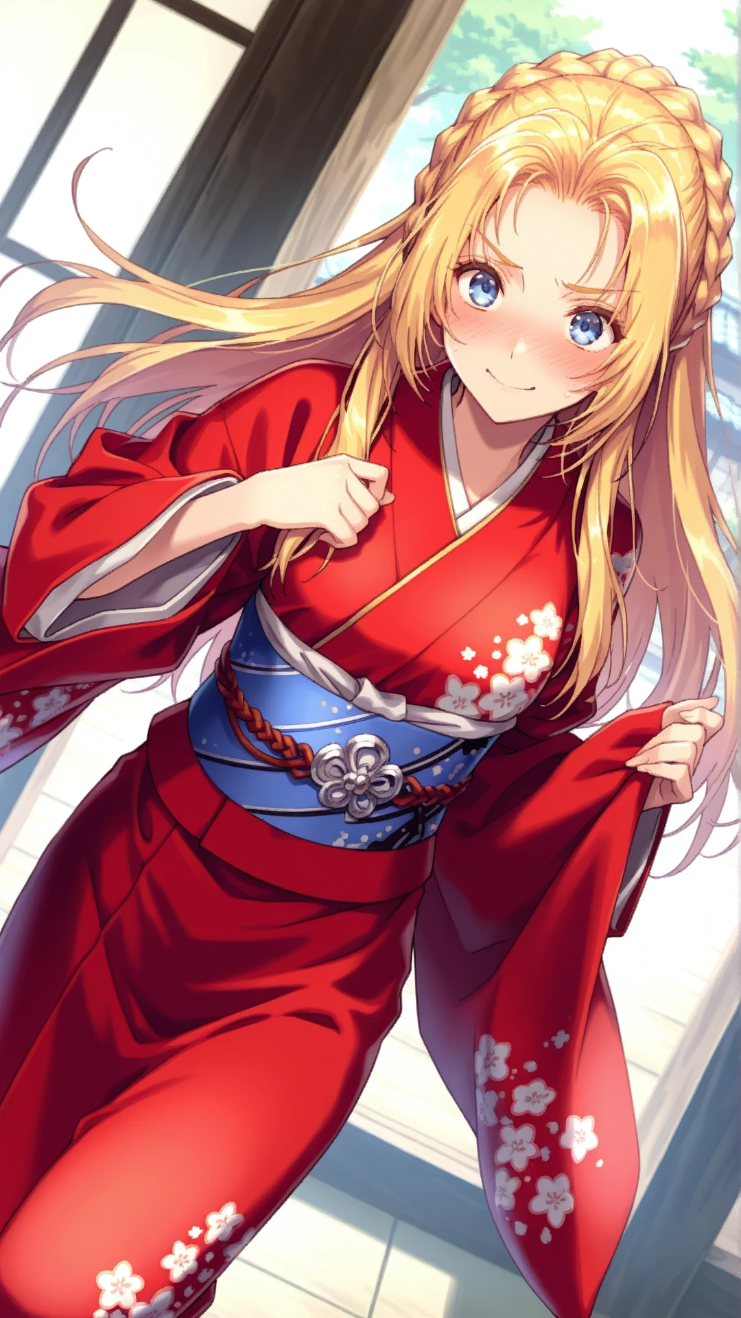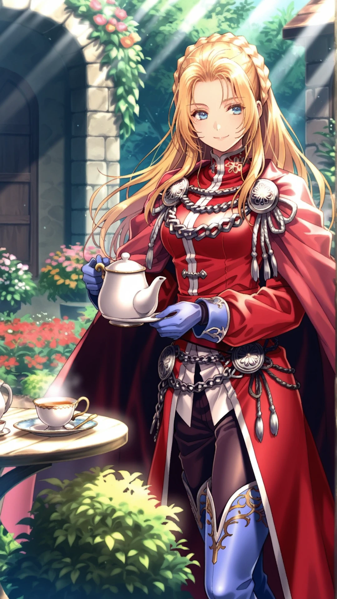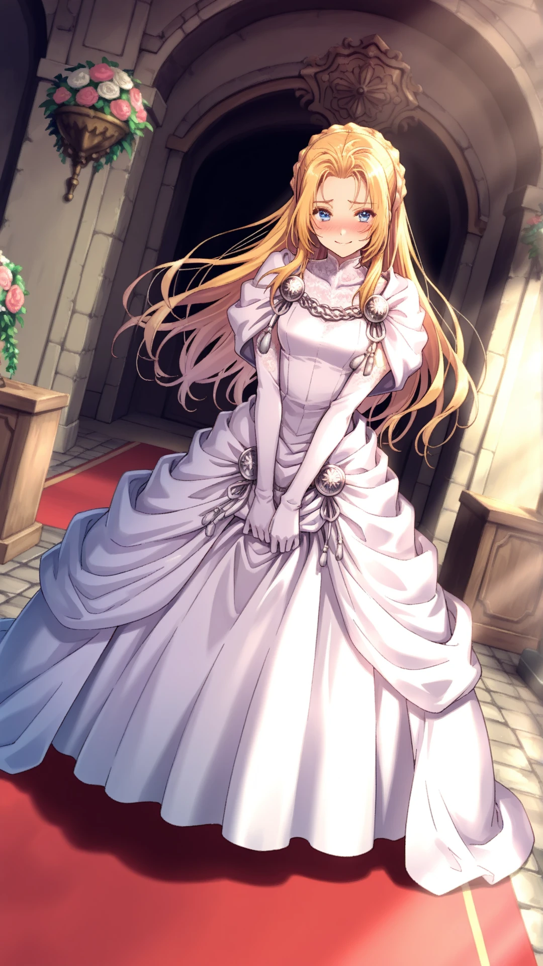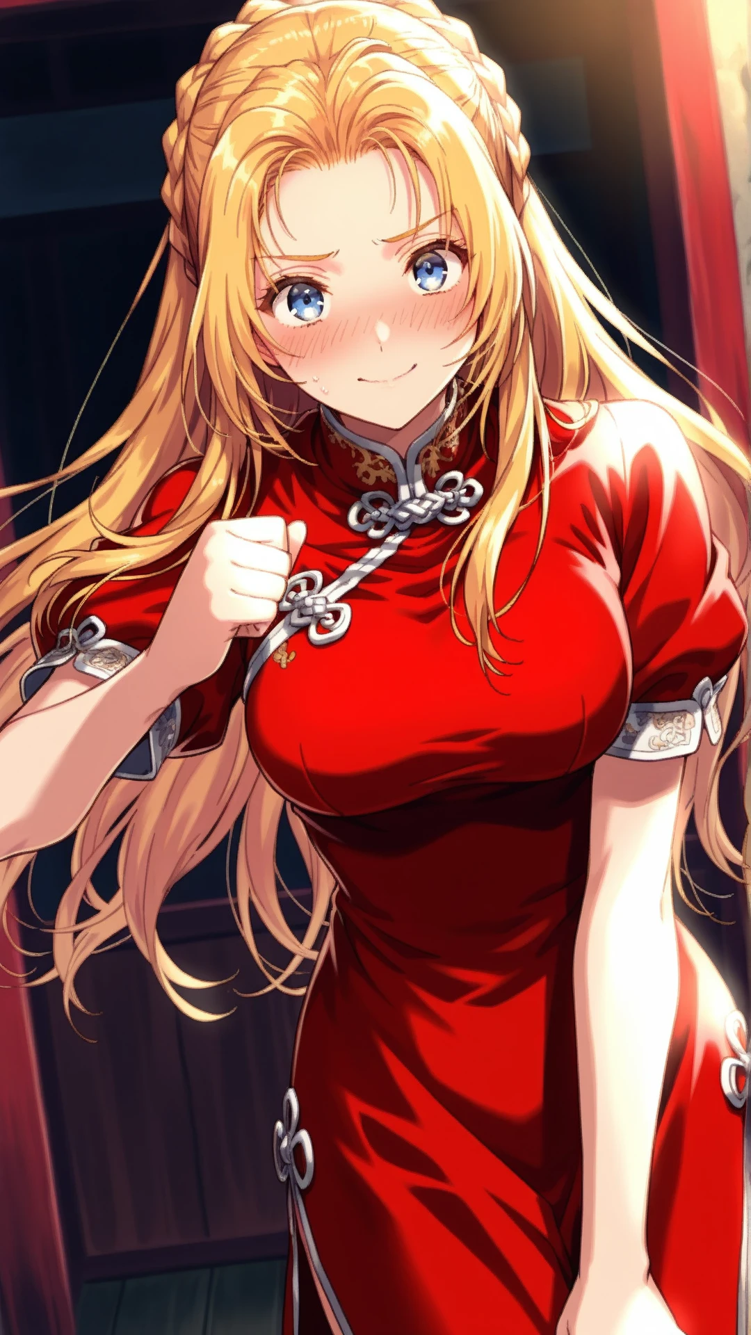 Appearance:blue eyes,blonde hair, long hair,braid,