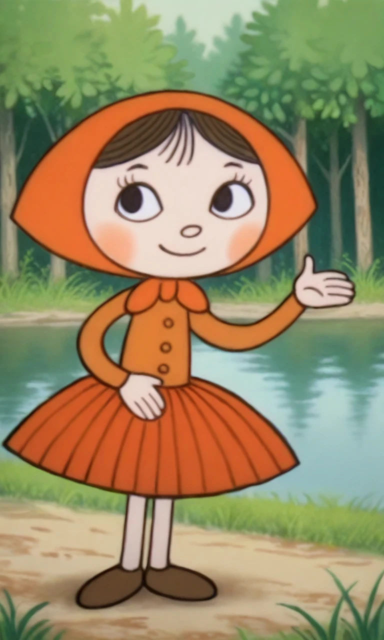 Kordulka, 1girl, brown hair, black eyes, orange headdress