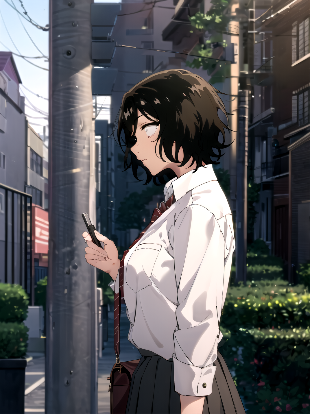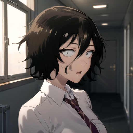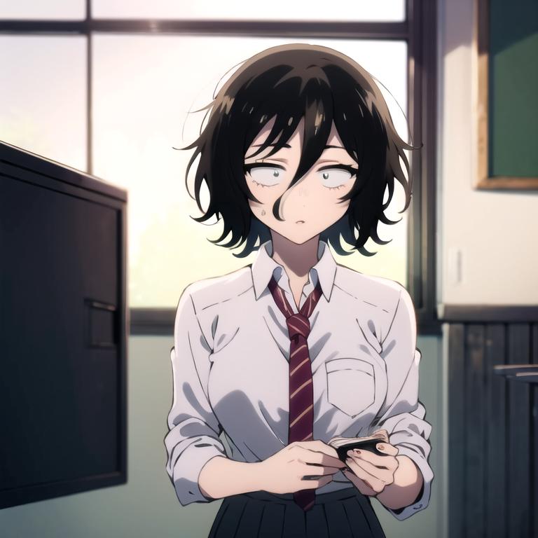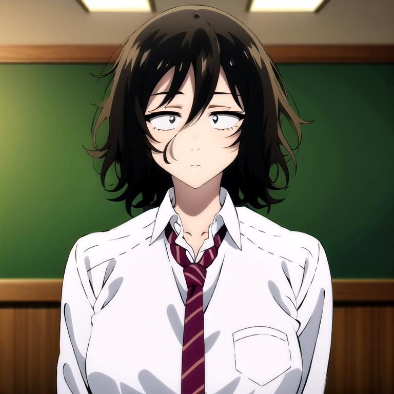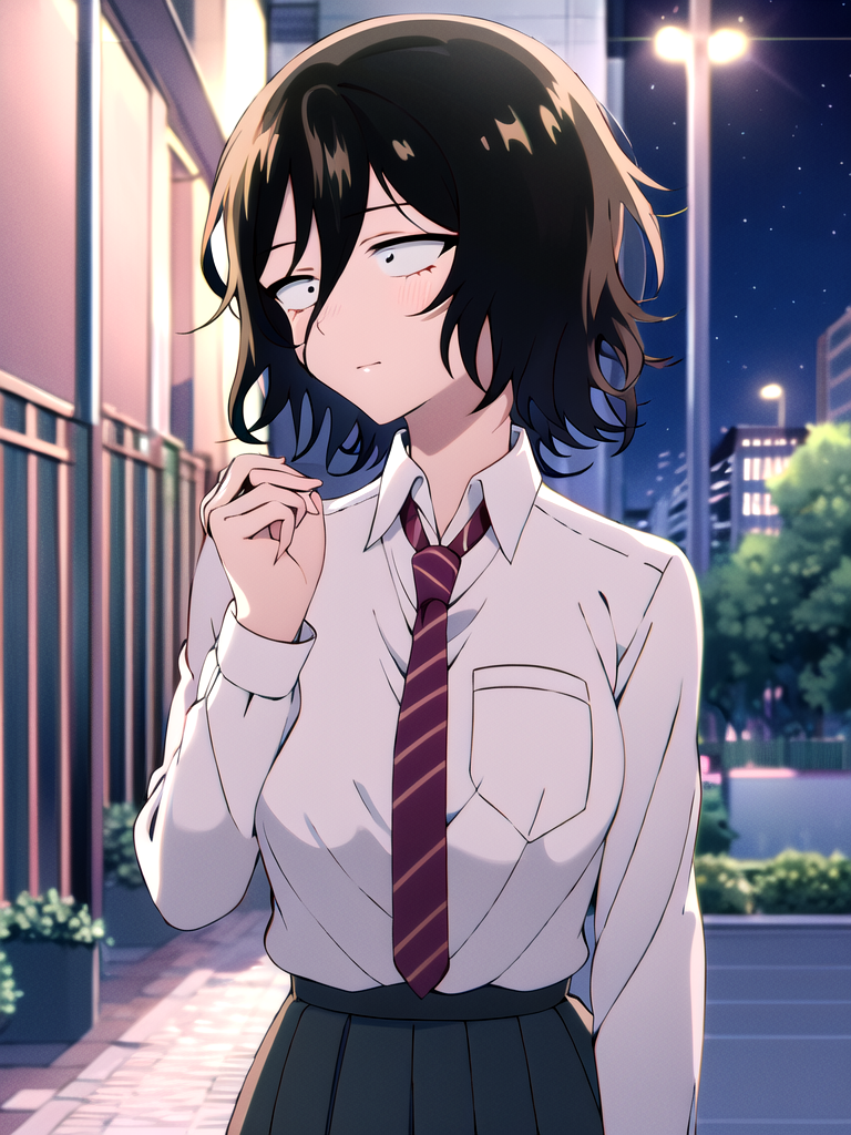 Other prompt : black hair, school girl uniform,