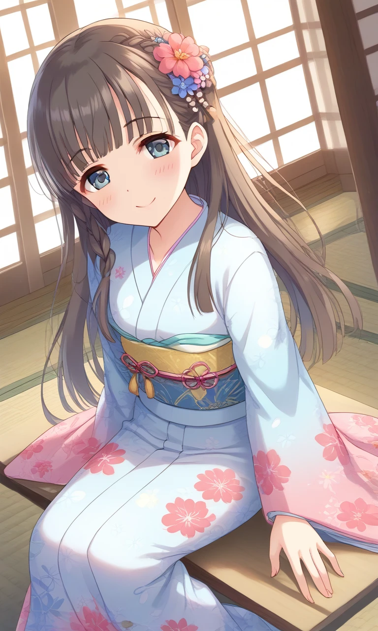 <lora:kobayakawa_sae:0.7>, long hair, black hair, braid, blunt bangs, black eyes,