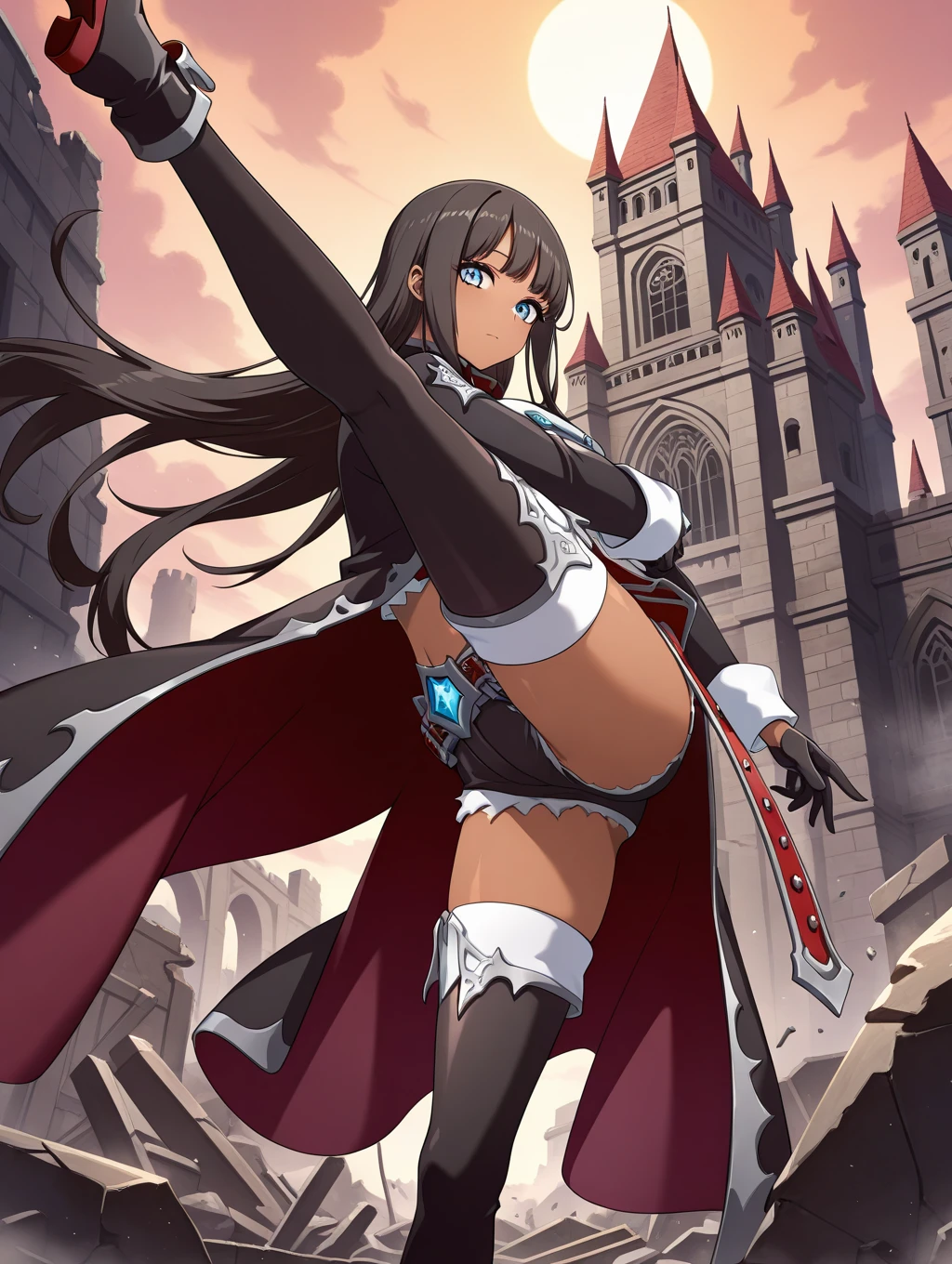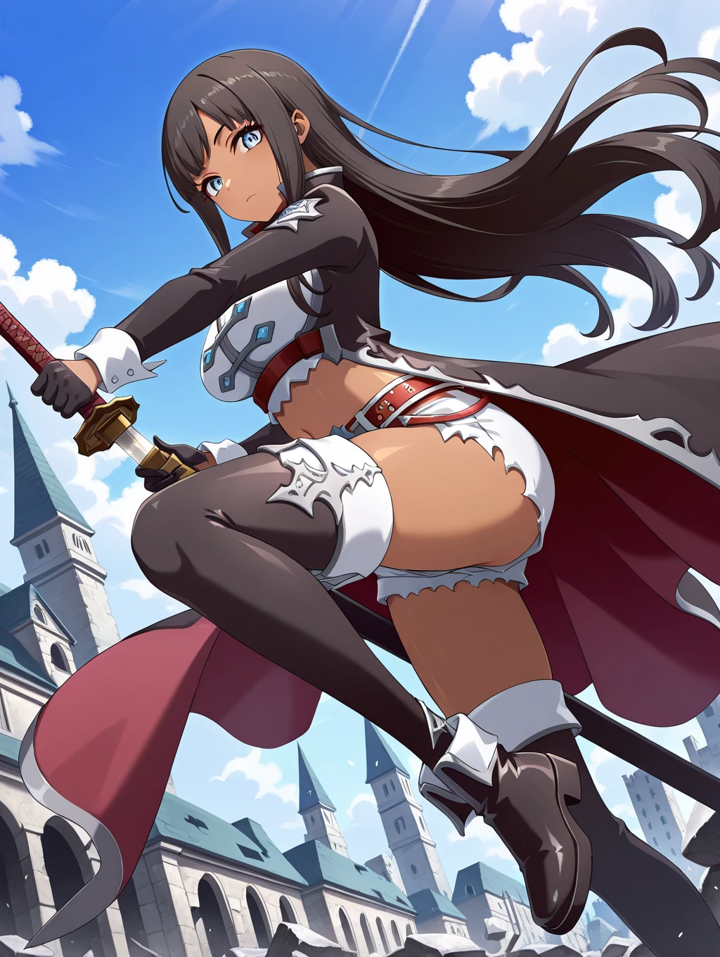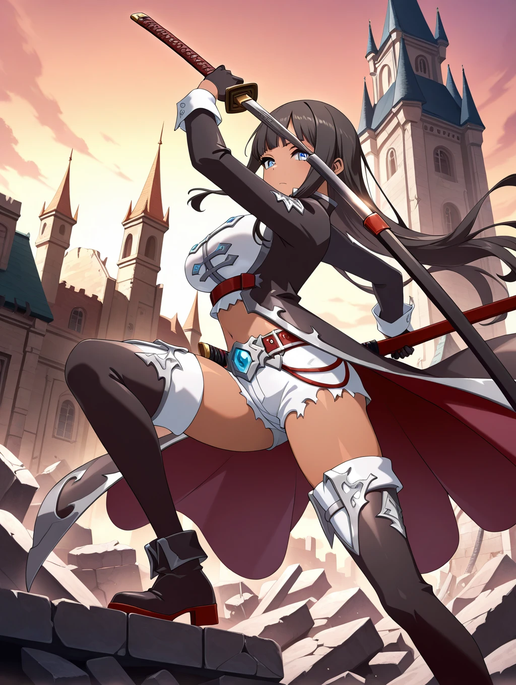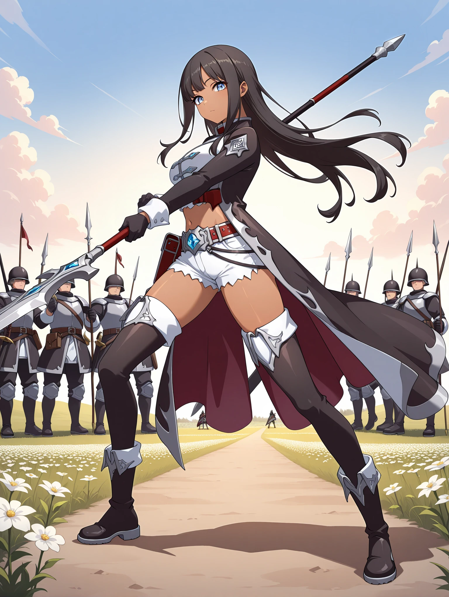 衣装補助ワード・black_thighhighs,gloves,boots,short shorts,midriff,coat,