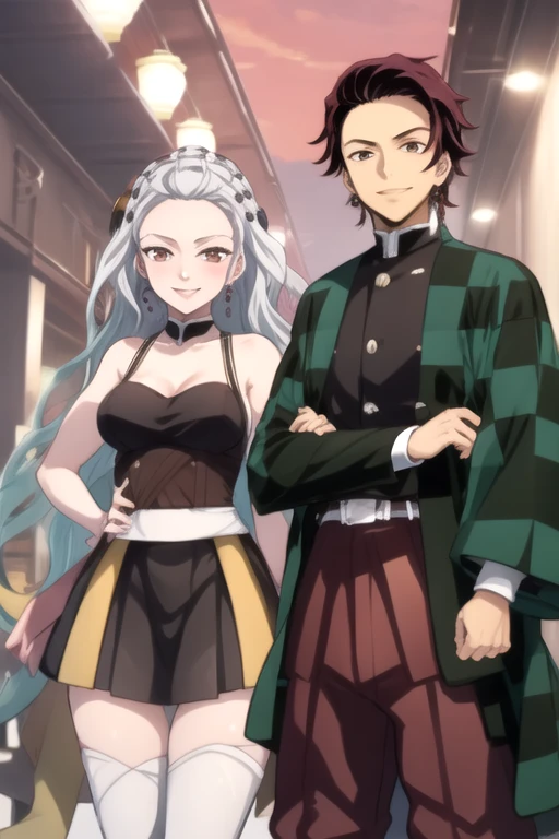 TanjiroDaki, a man and a woman, standing, smile, cowboy shot