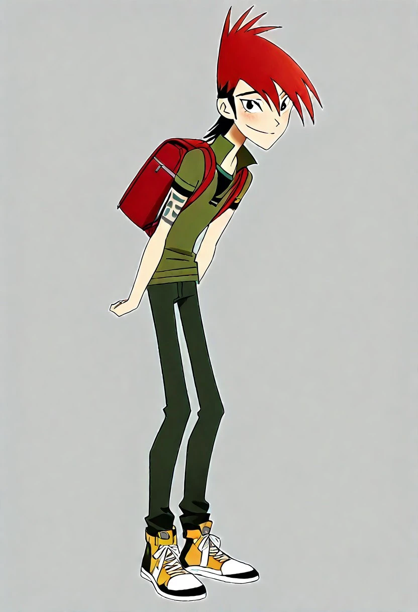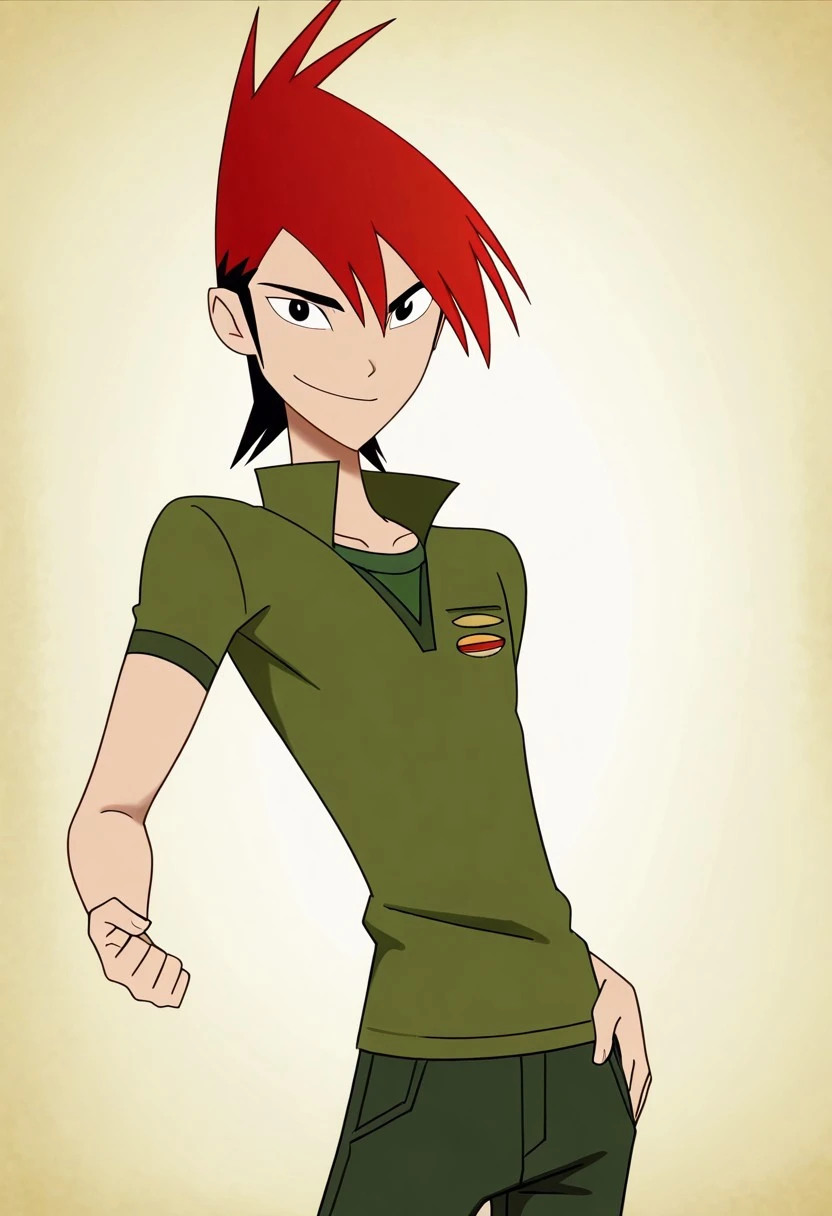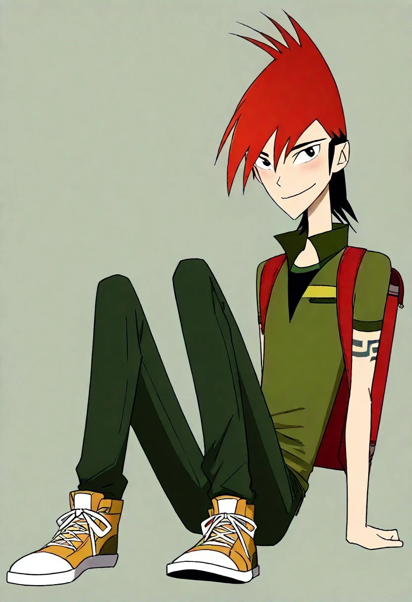 base: 1boy,solo,black eyes,two tone hair, red hair,black hair,arm tattoo