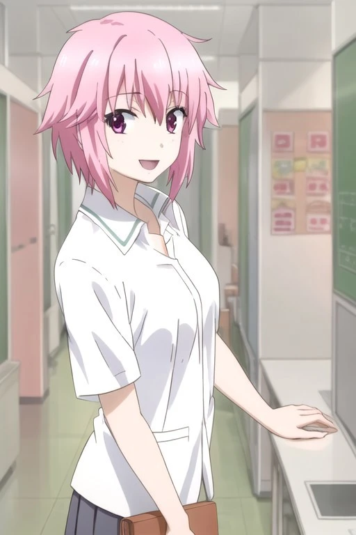 Trigger Words: mizukami sakura, short hair, pink hair, pink eyes