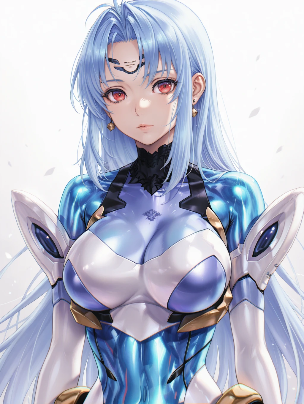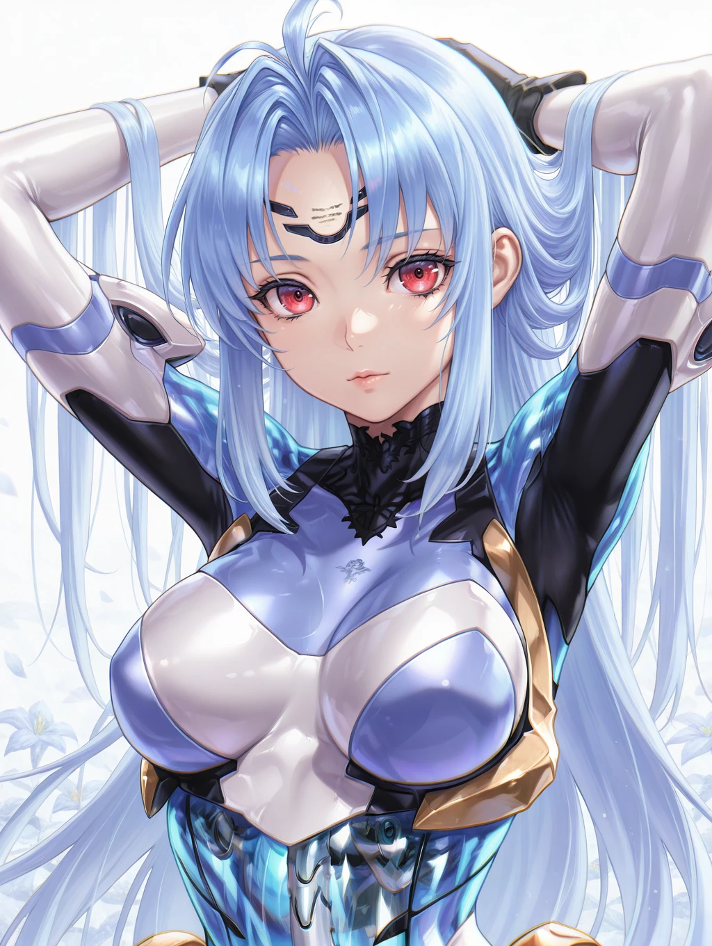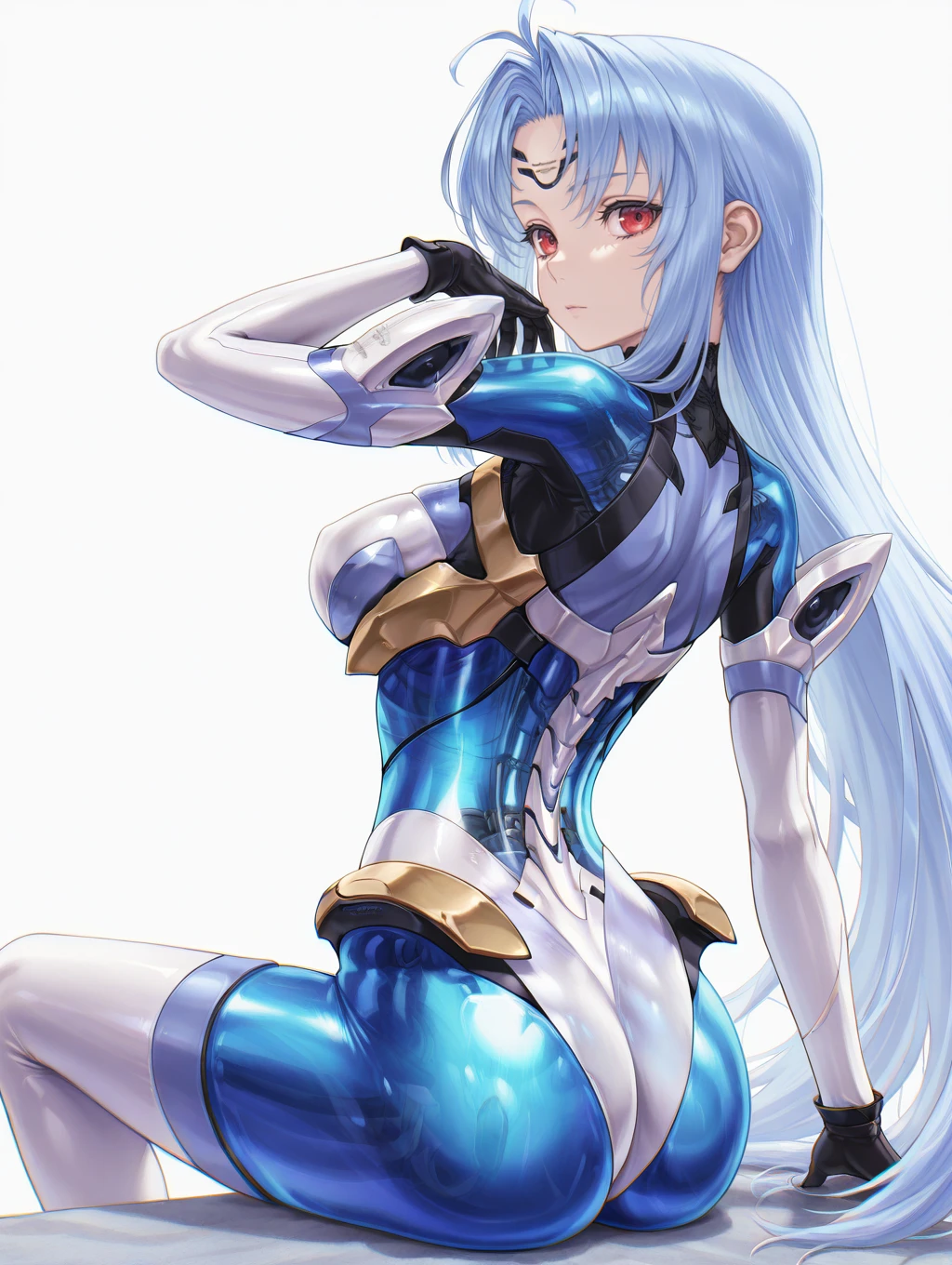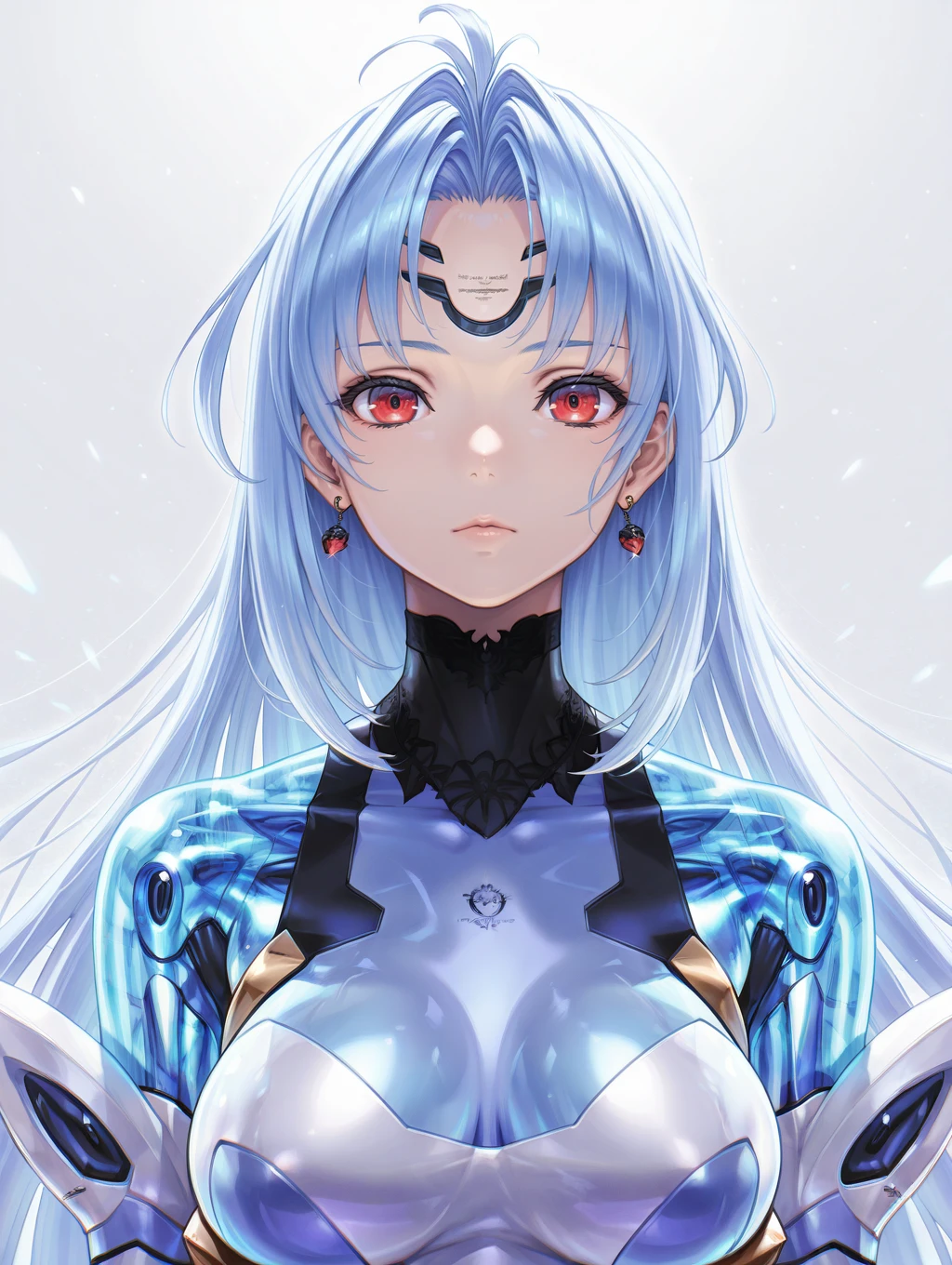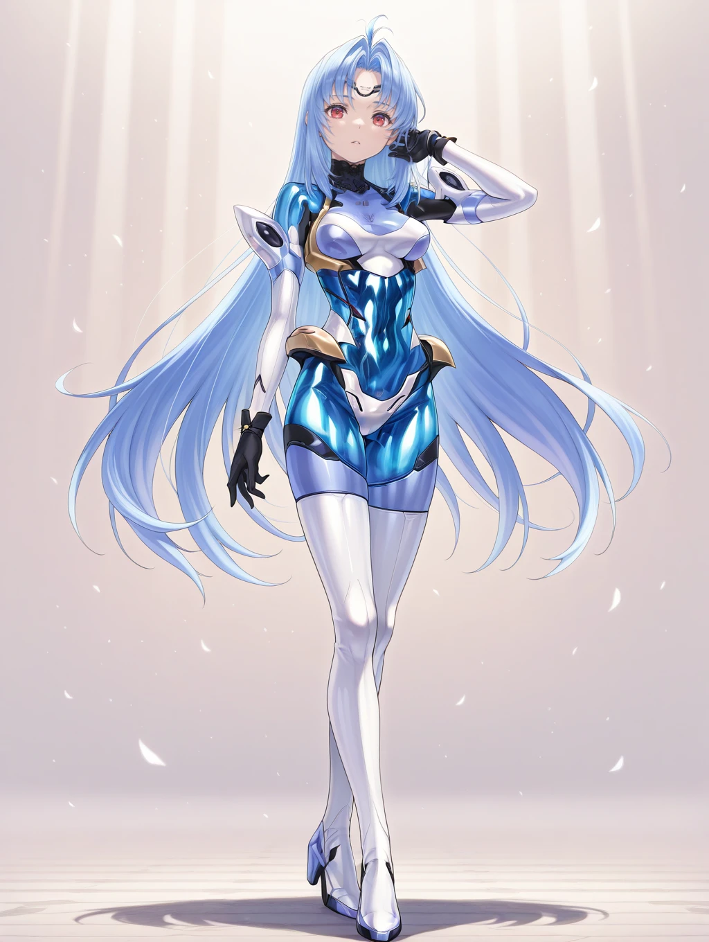 Tags (clothes): white bodysuit, elbow gloves, transparent body, white thigh boots, forehead mark,