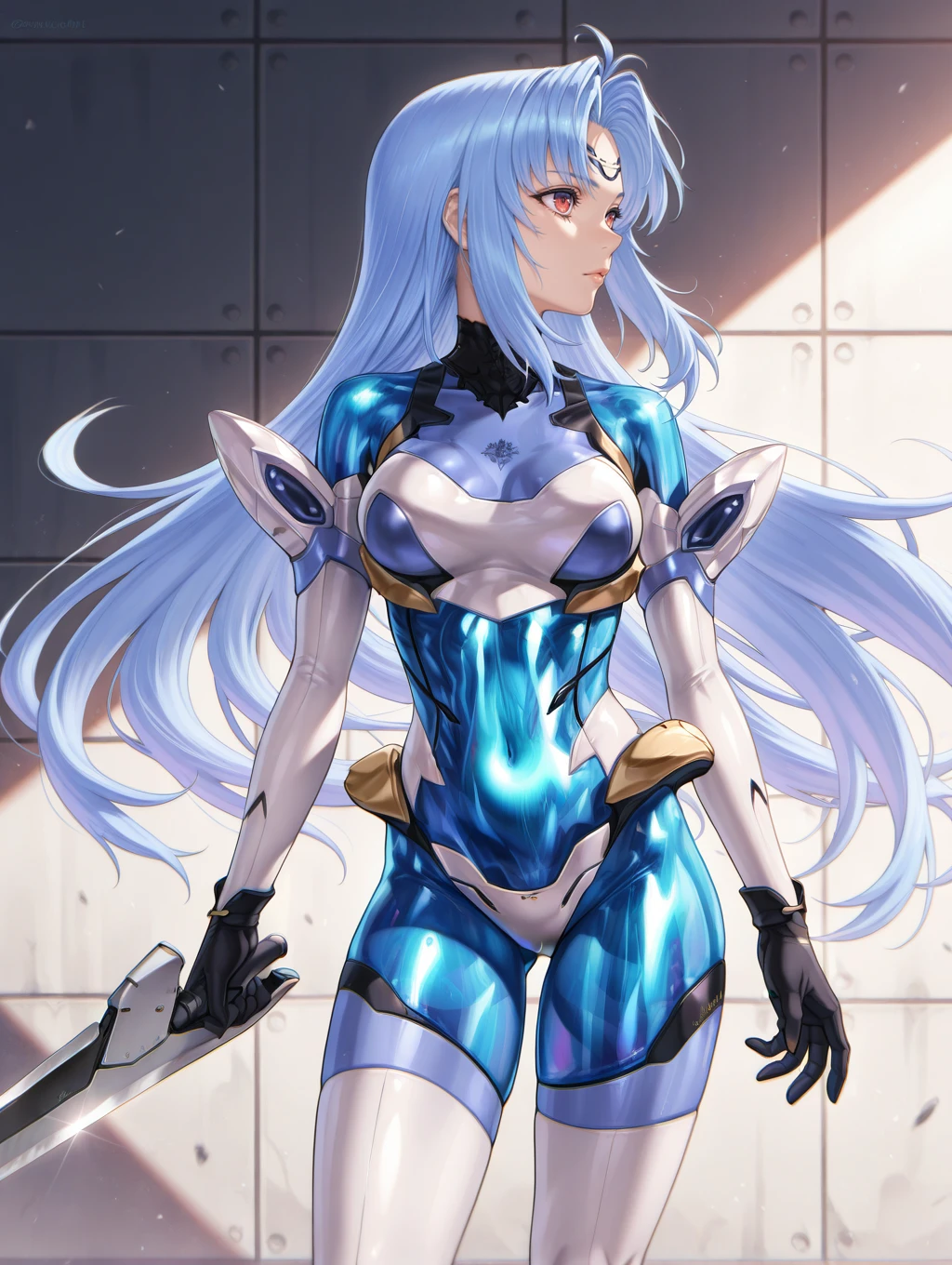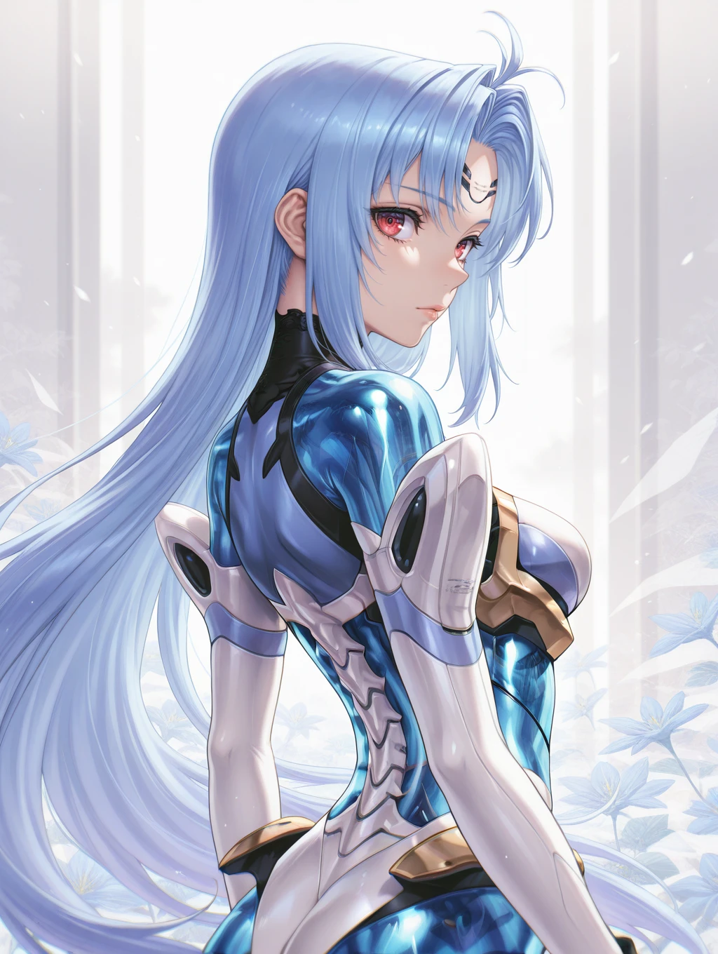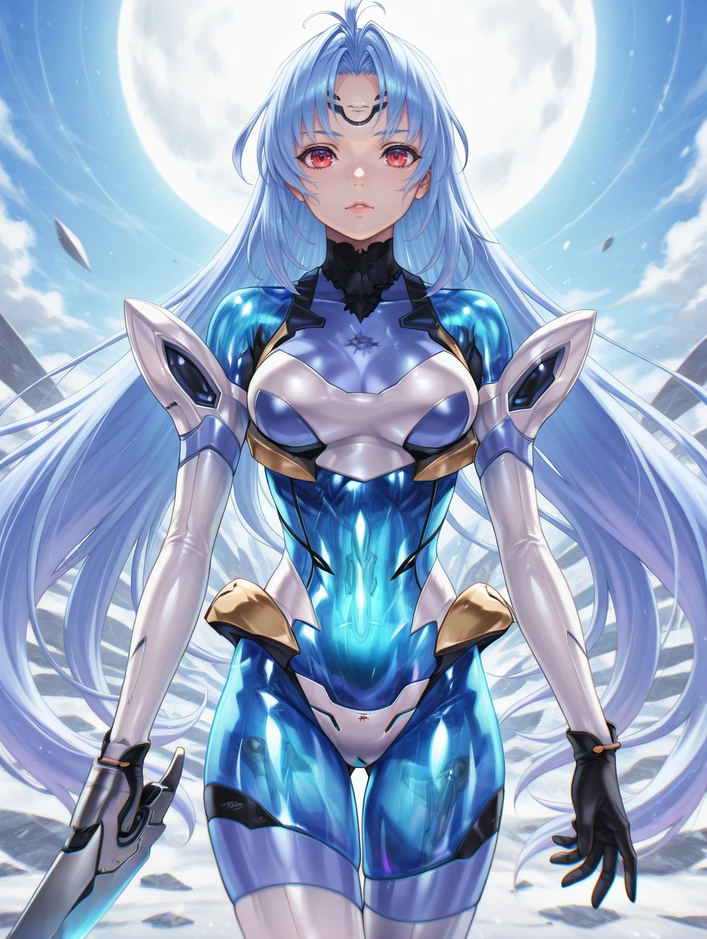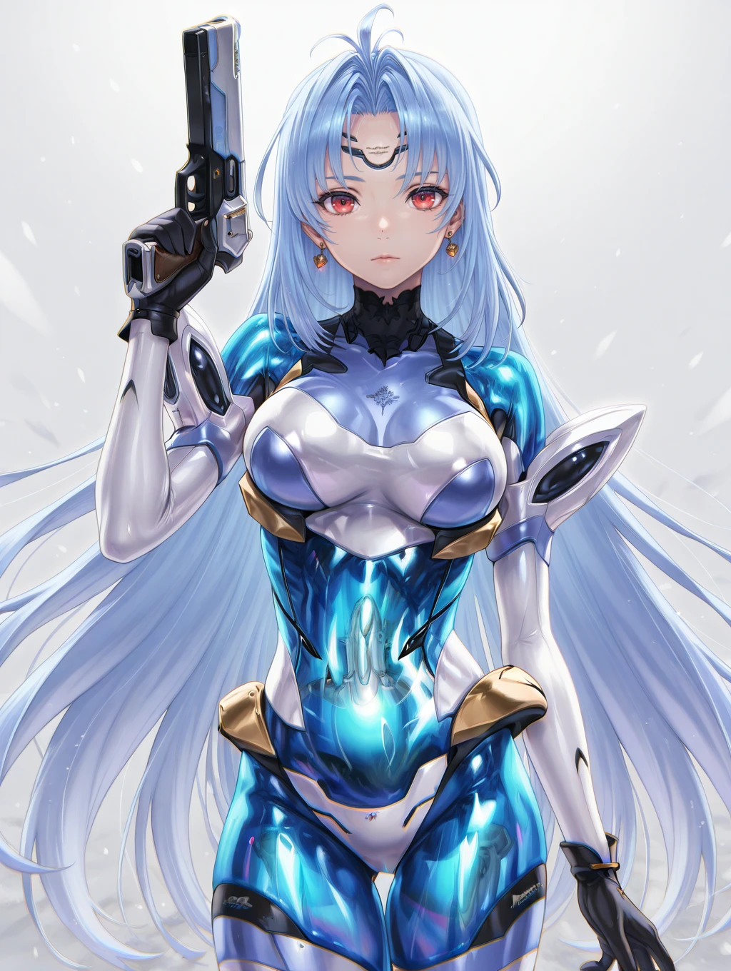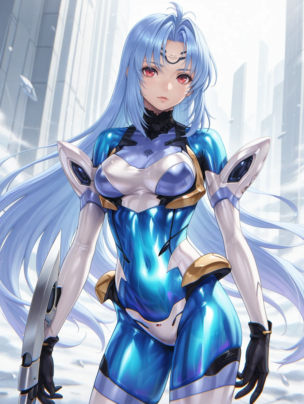 Tags (clothes): white bodysuit, elbow gloves, transparent body, white thigh boots, forehead mark,