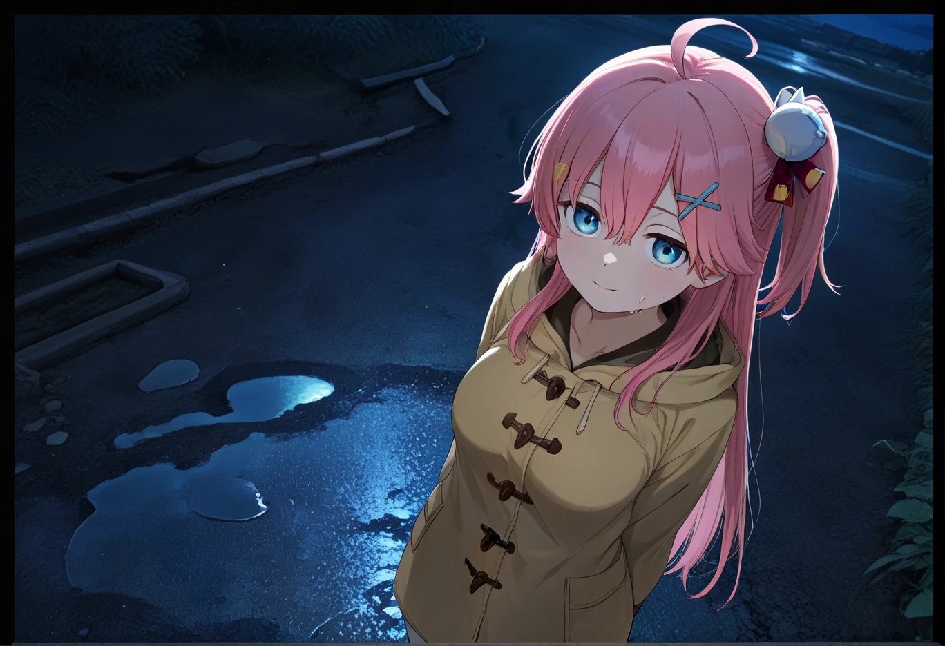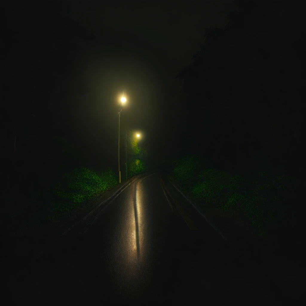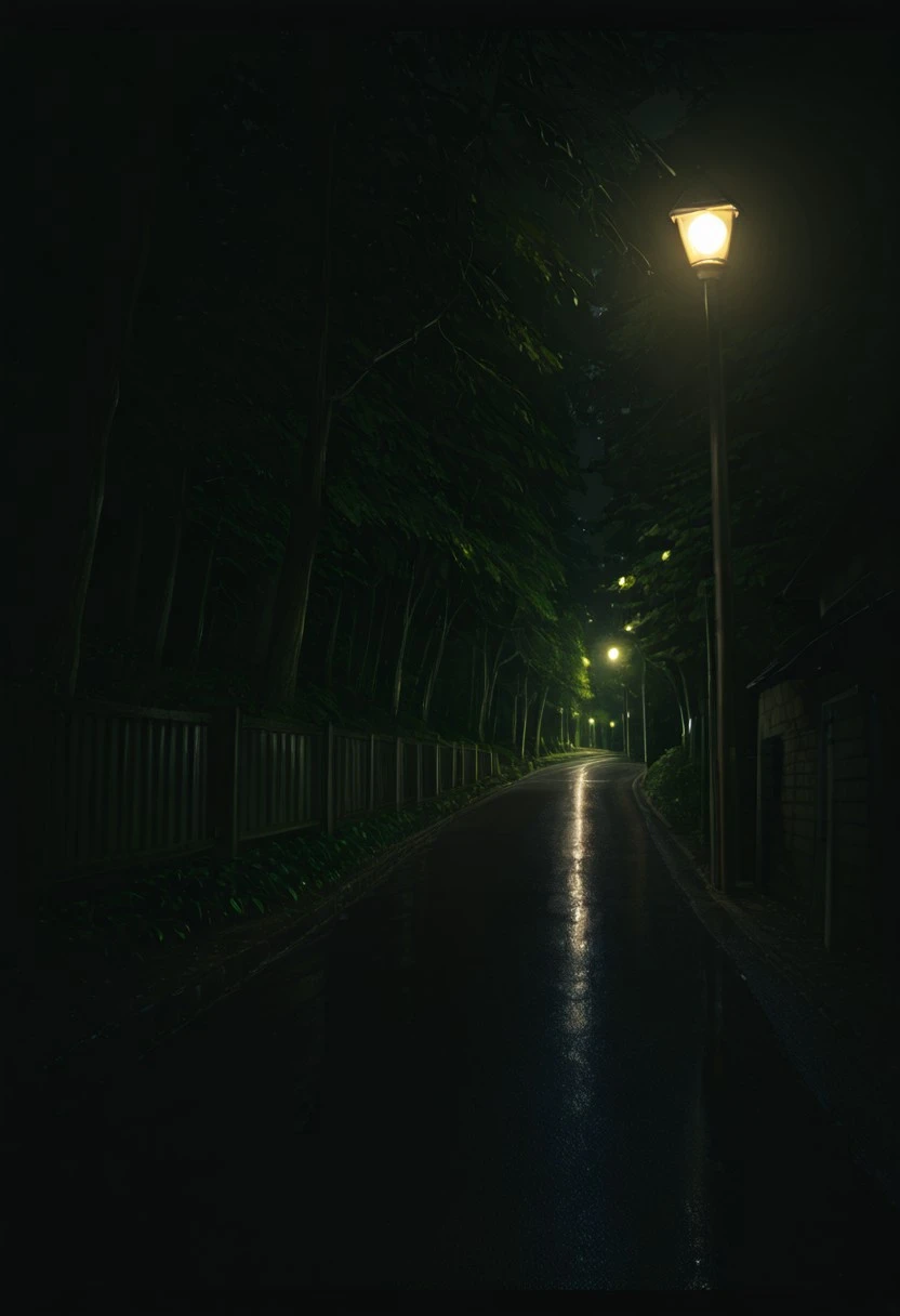 outdoors, night, wet ground,asphalt ground