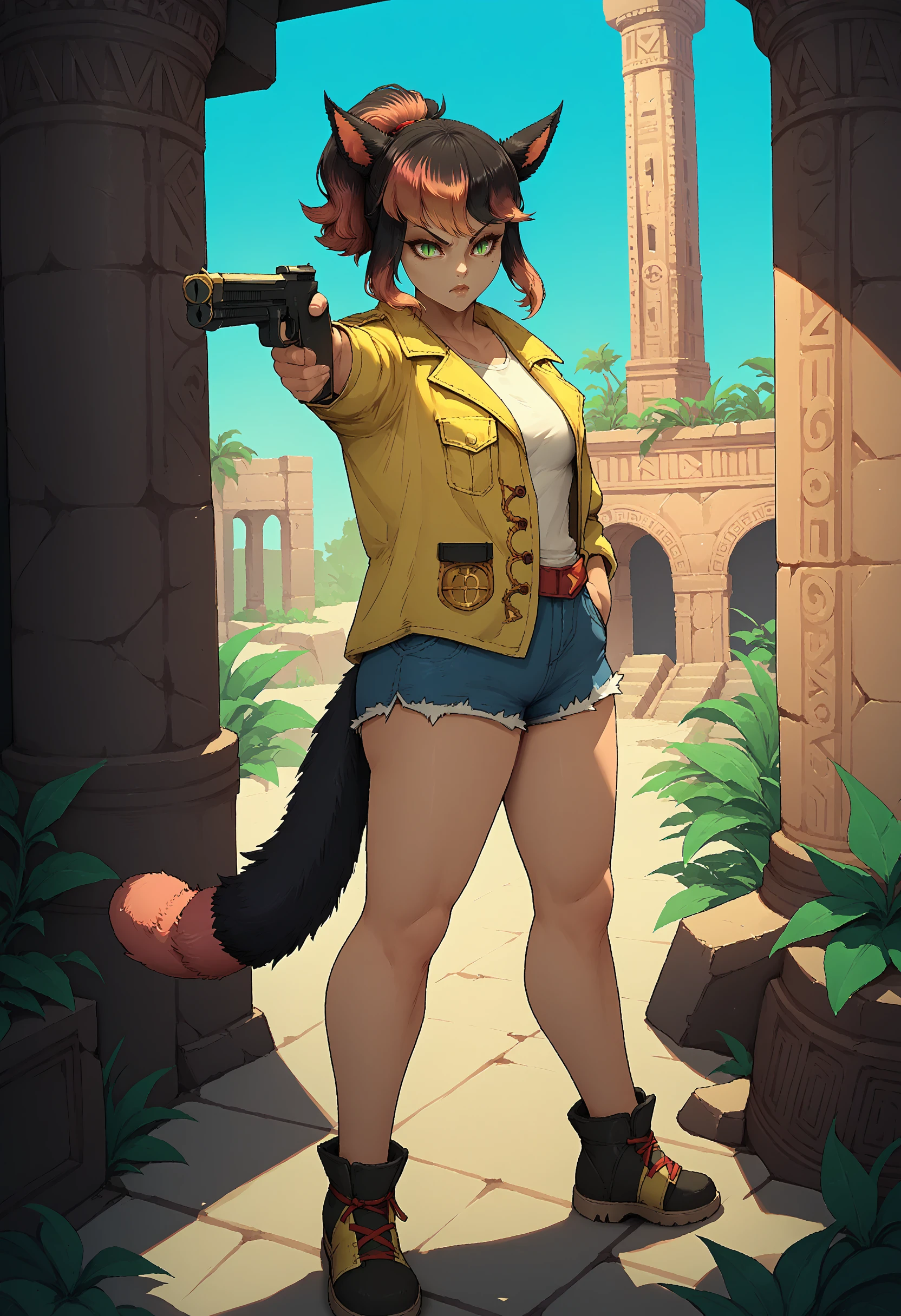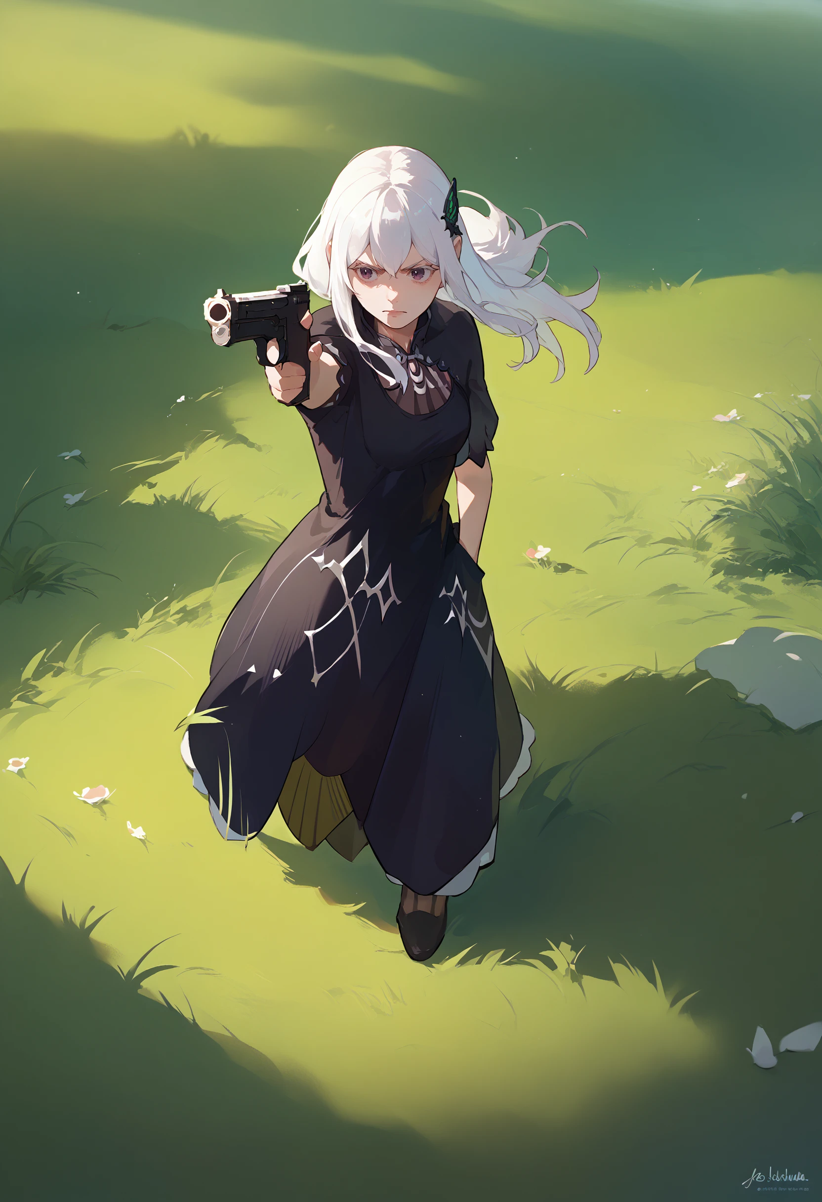 holding weapon, holding gun, handgun, hand in pocket, aiming