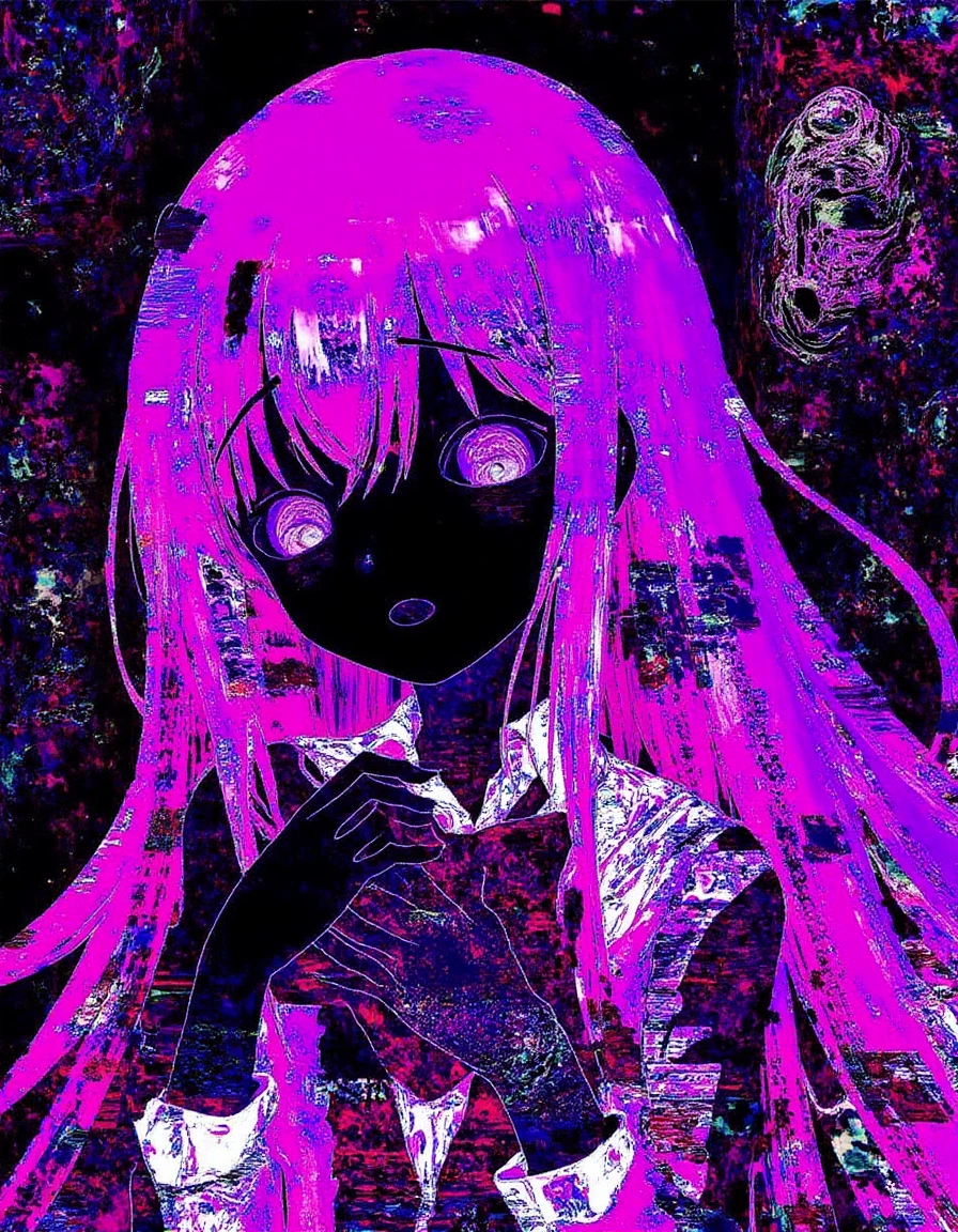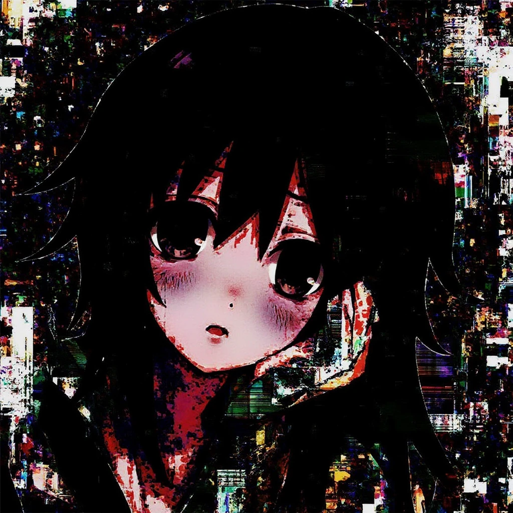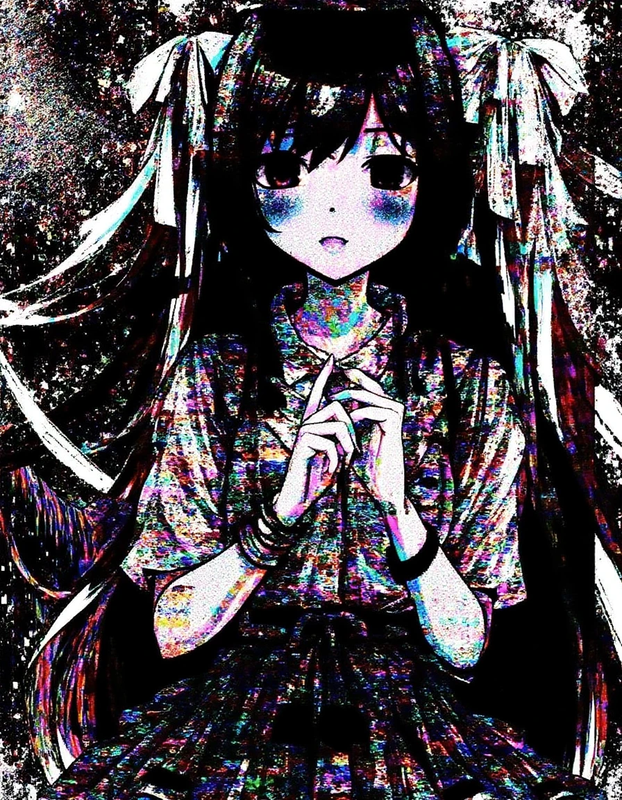 also: noisy, glitchy, noise glitch, anime character, distortion