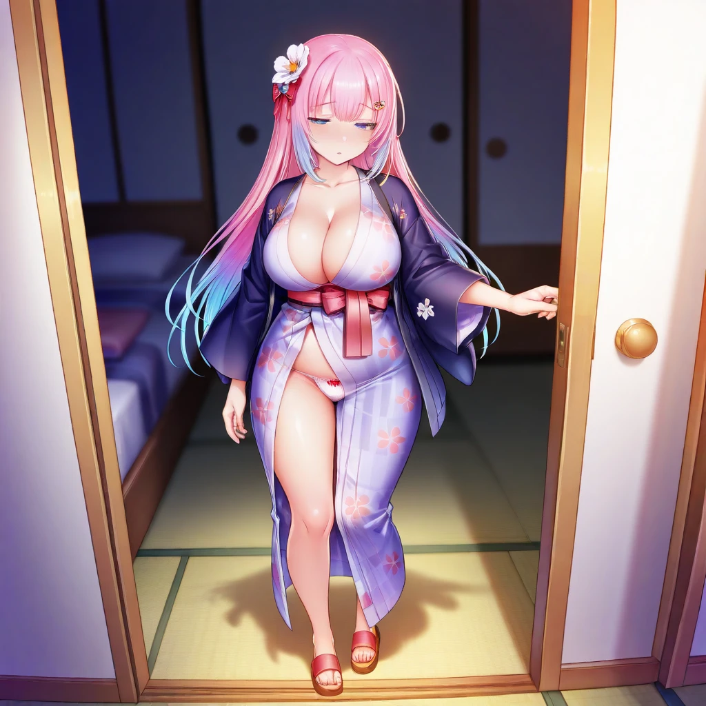 Yukata: Labyuk, hairclip, hair flower, yukata, flower print, ribbon panties, sandals,