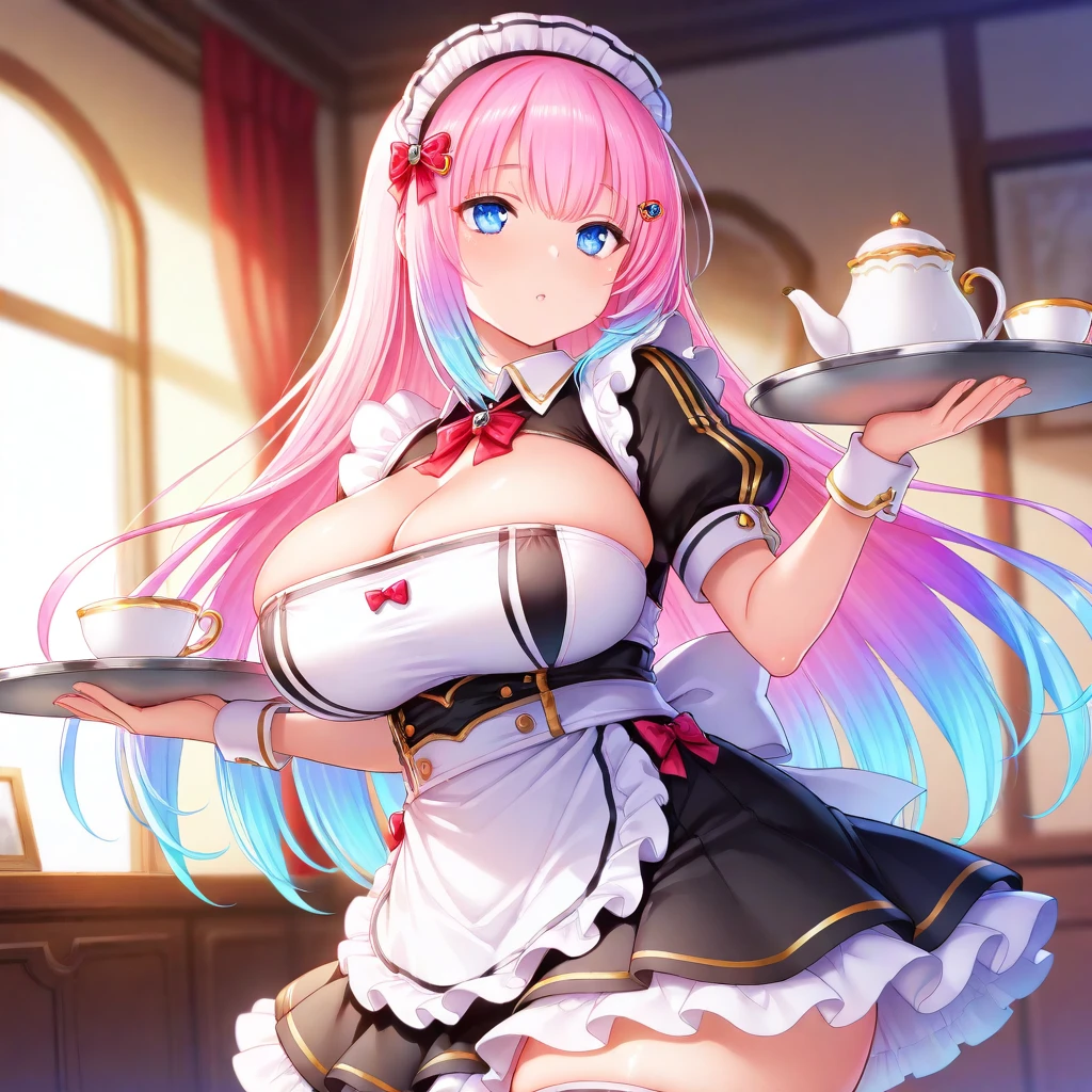 LabJP, blue eyes, pink hair, blue hair, gradient hair, long hair,
