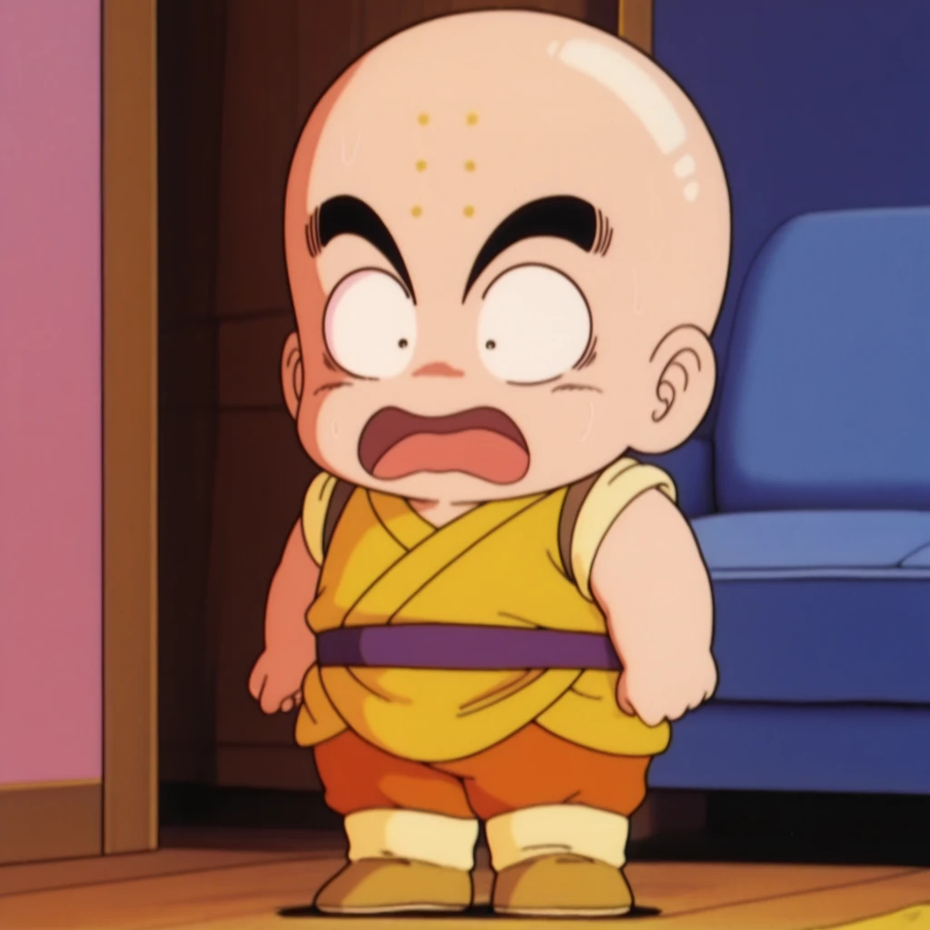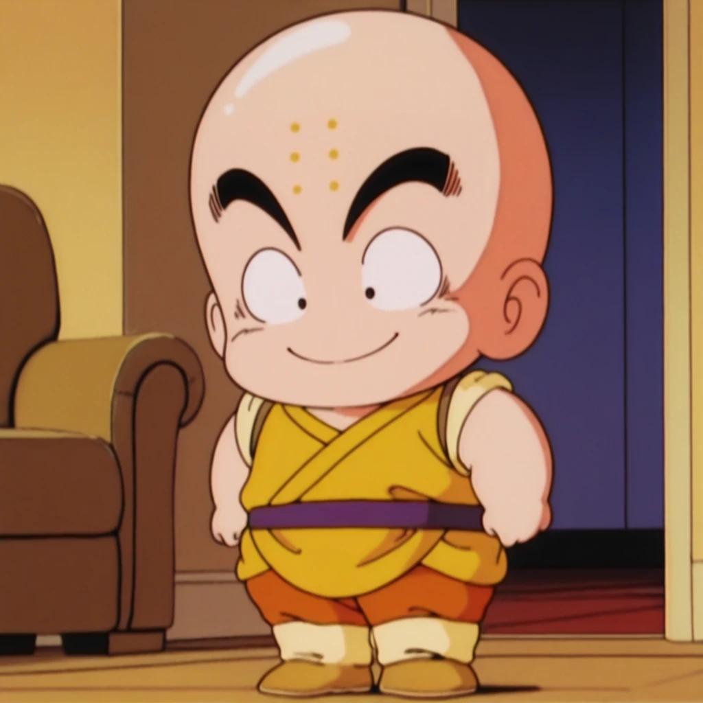 male, solo, human, young, bald, black dot eyes, dots on forehead, thick eyebrows, noseless, short