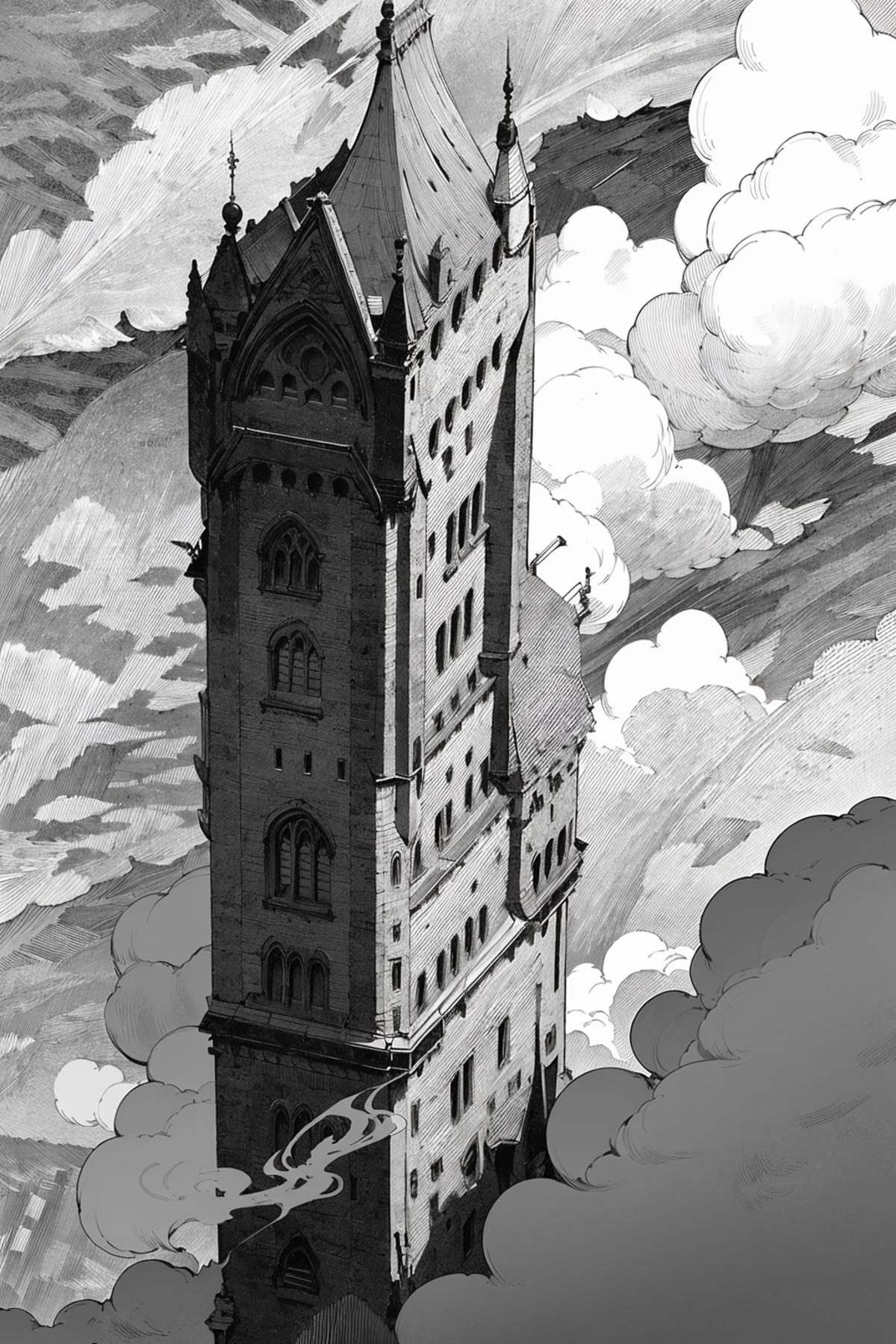 For example tree, stool, monochrome, grass, outdoor, sitting, solo, hat, 1girl, traditional media, landscape...