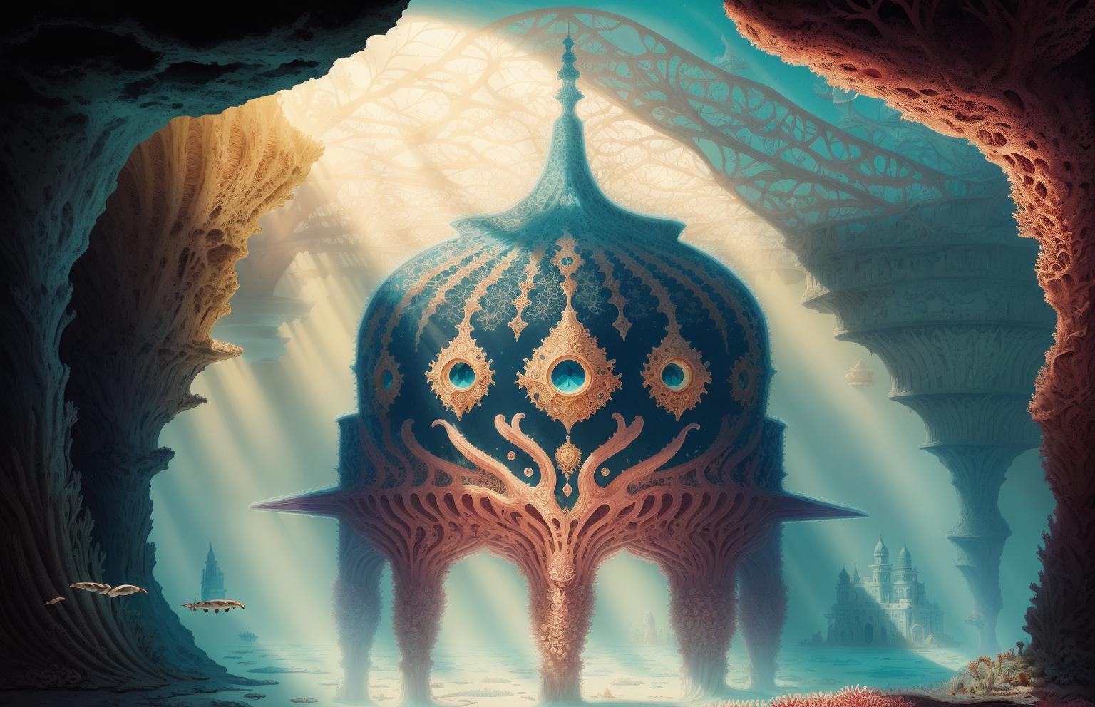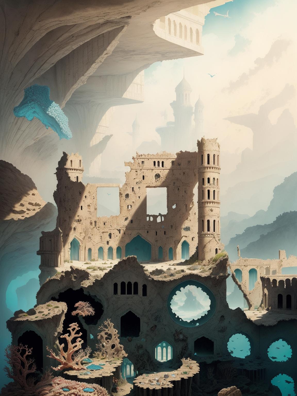 This model was trained on 19th Century prints of the corals, sponges, and fish of Australia's Great Barrier Reef. These prints were the work of pioneering marine biologist William Saville-Kent, who used a custom-built tripod and specialised filters to photograph marine life from above the water's surface with primitive camera equipment. Saville-Kent used these photographs as the basis for beautiful colour illustrations that captured the vibrant colours and patterns of tropical marine life.