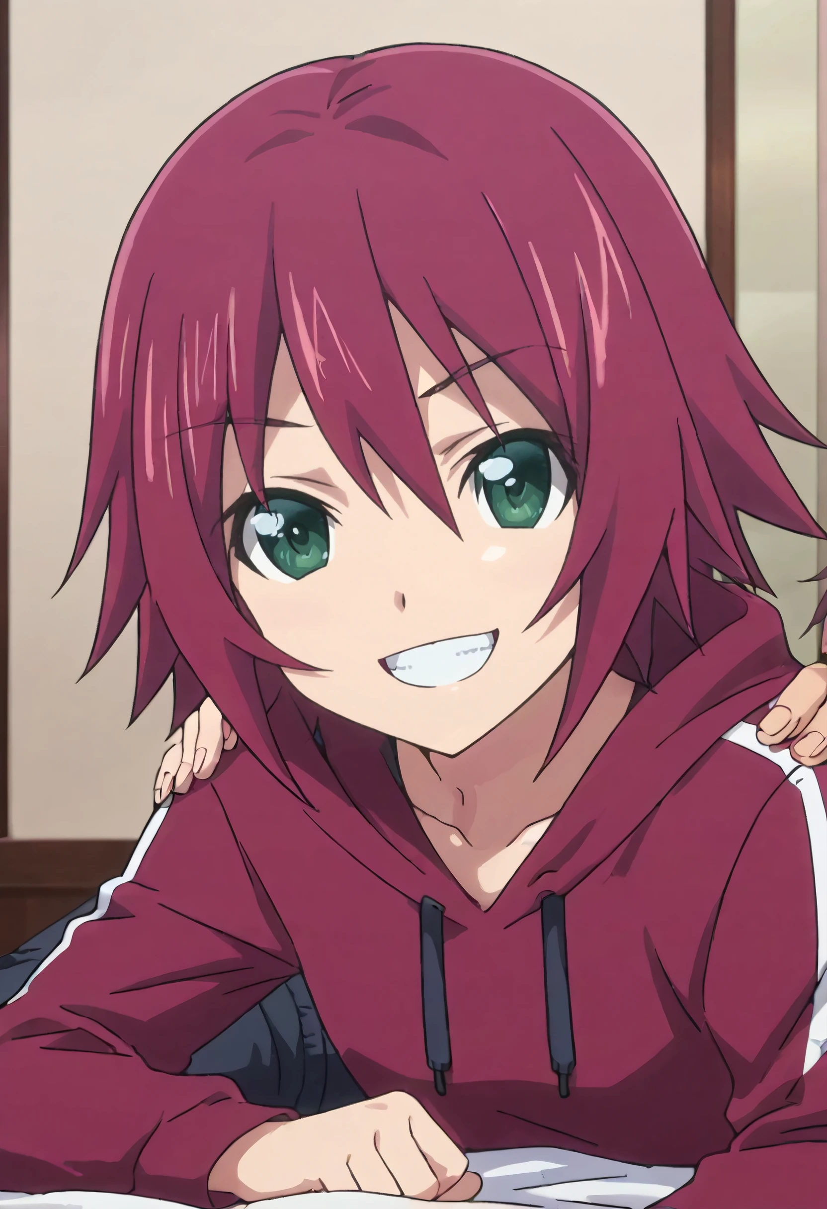 IStM4n4ger, red hair, short hair, green eyes, hair between eyes,