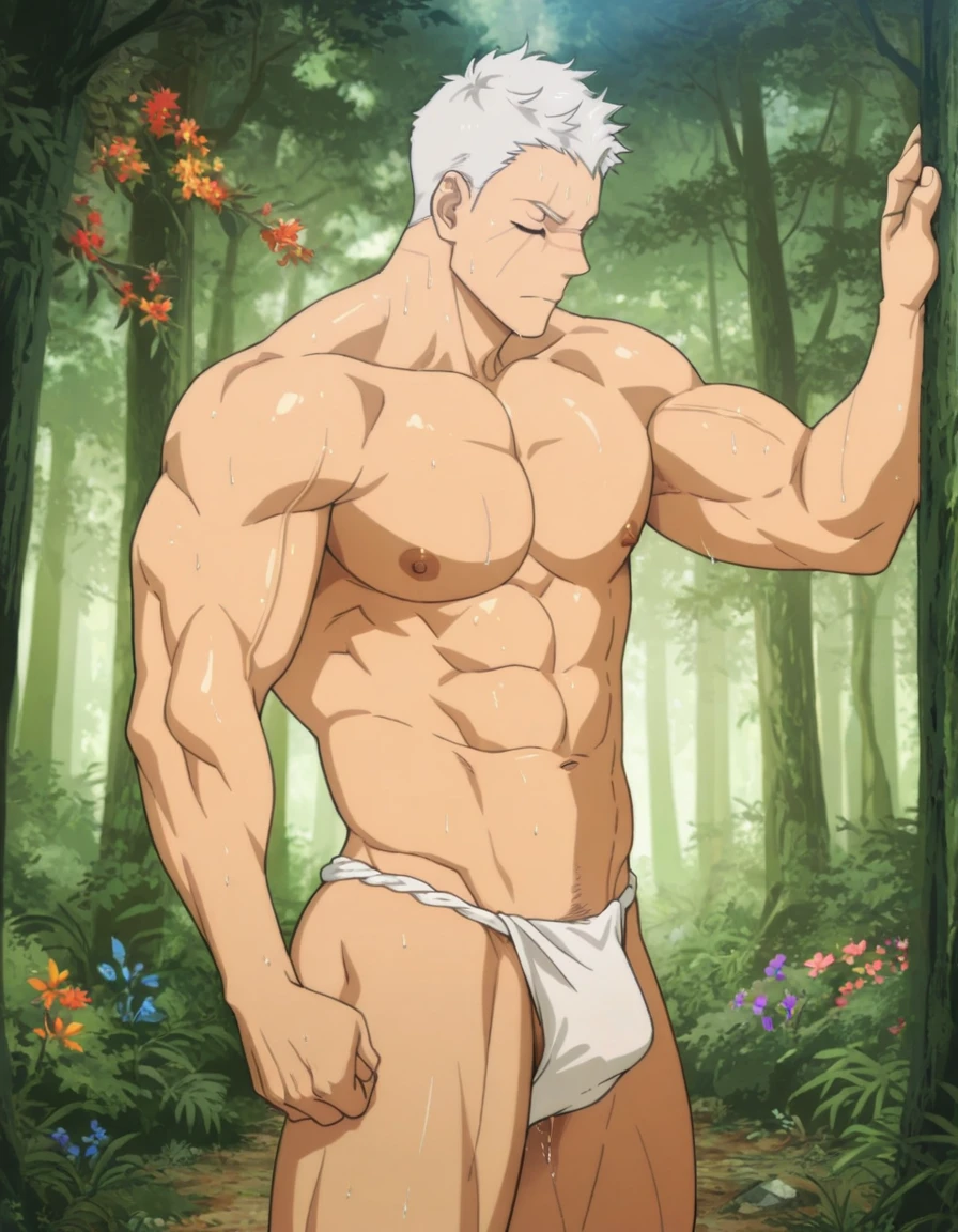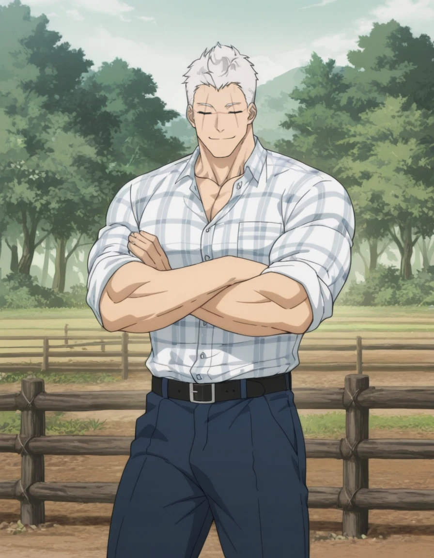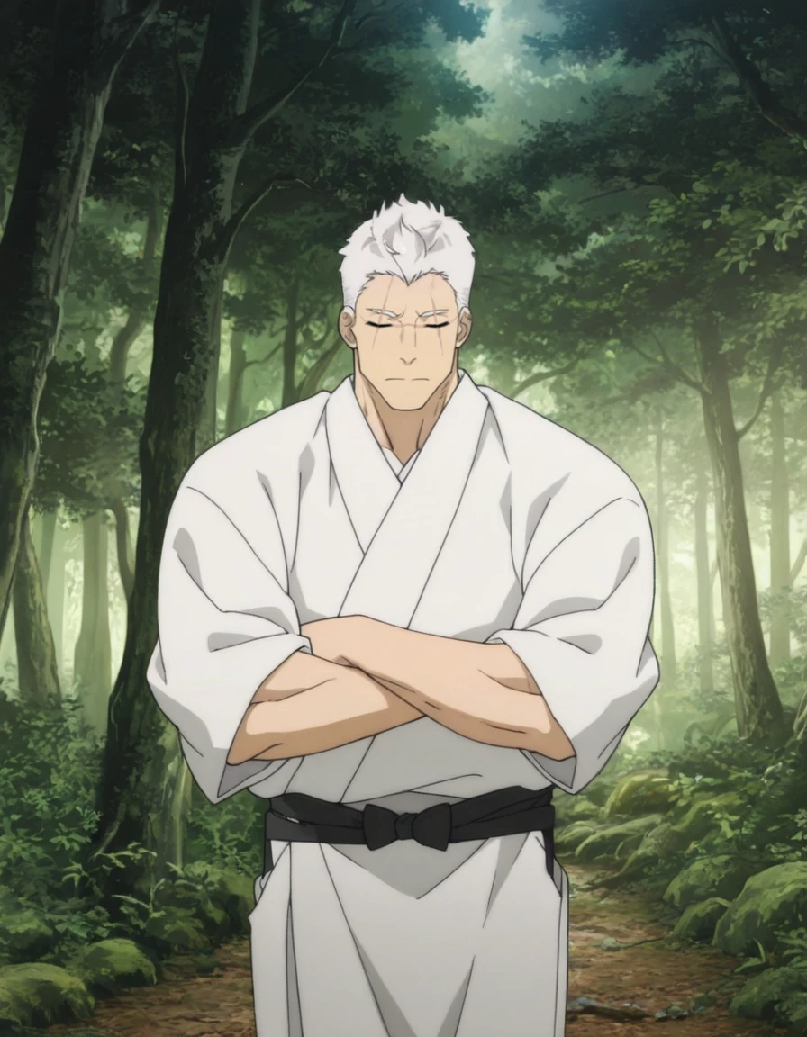 shionil, closed eyes, scar, white hair, scar on face, short hair