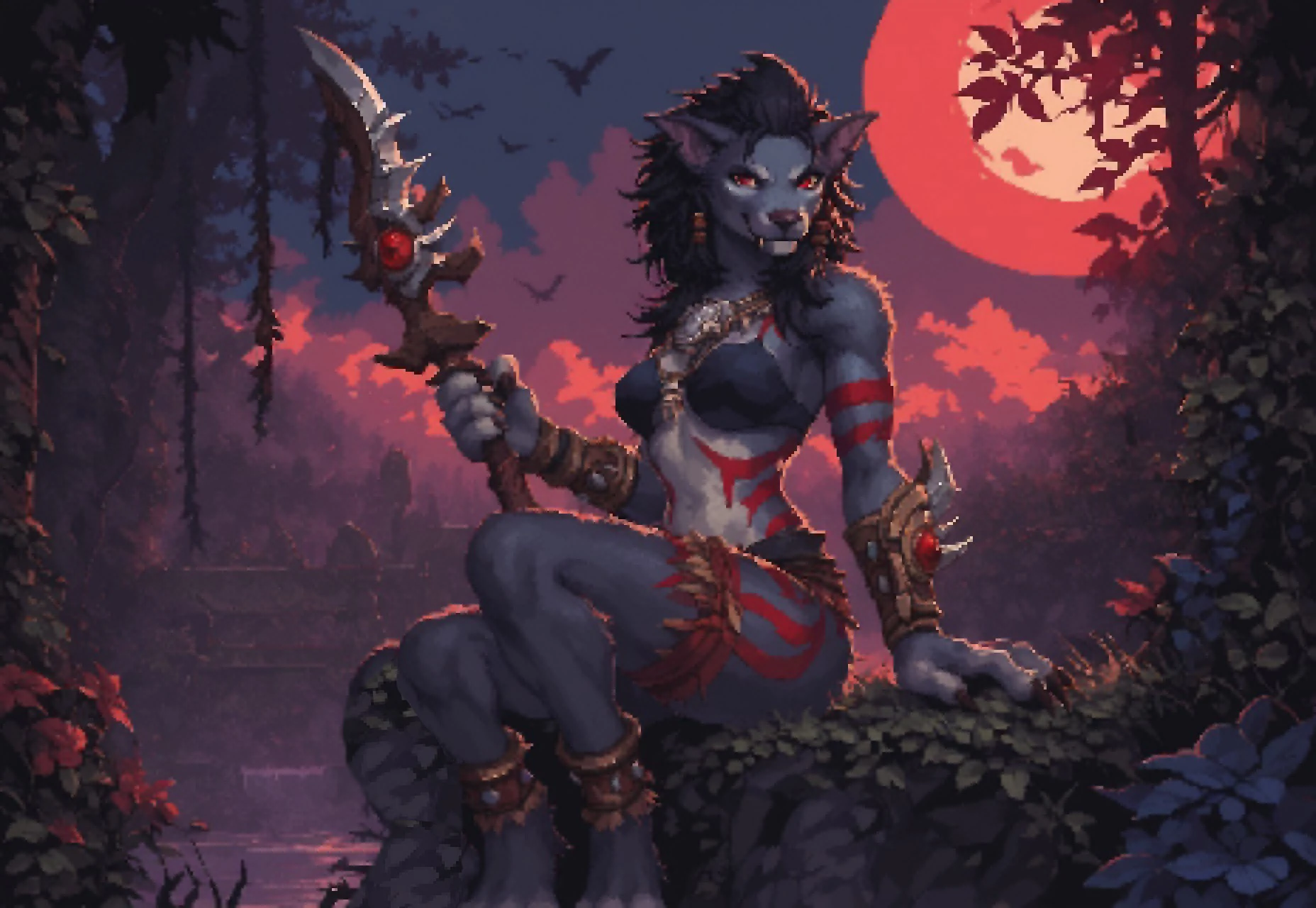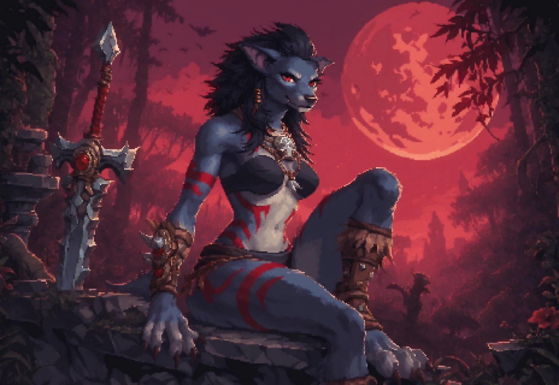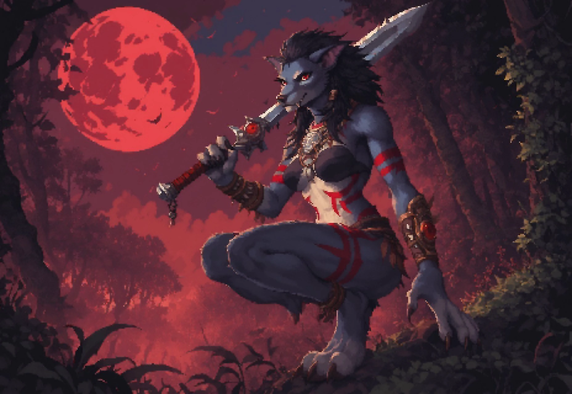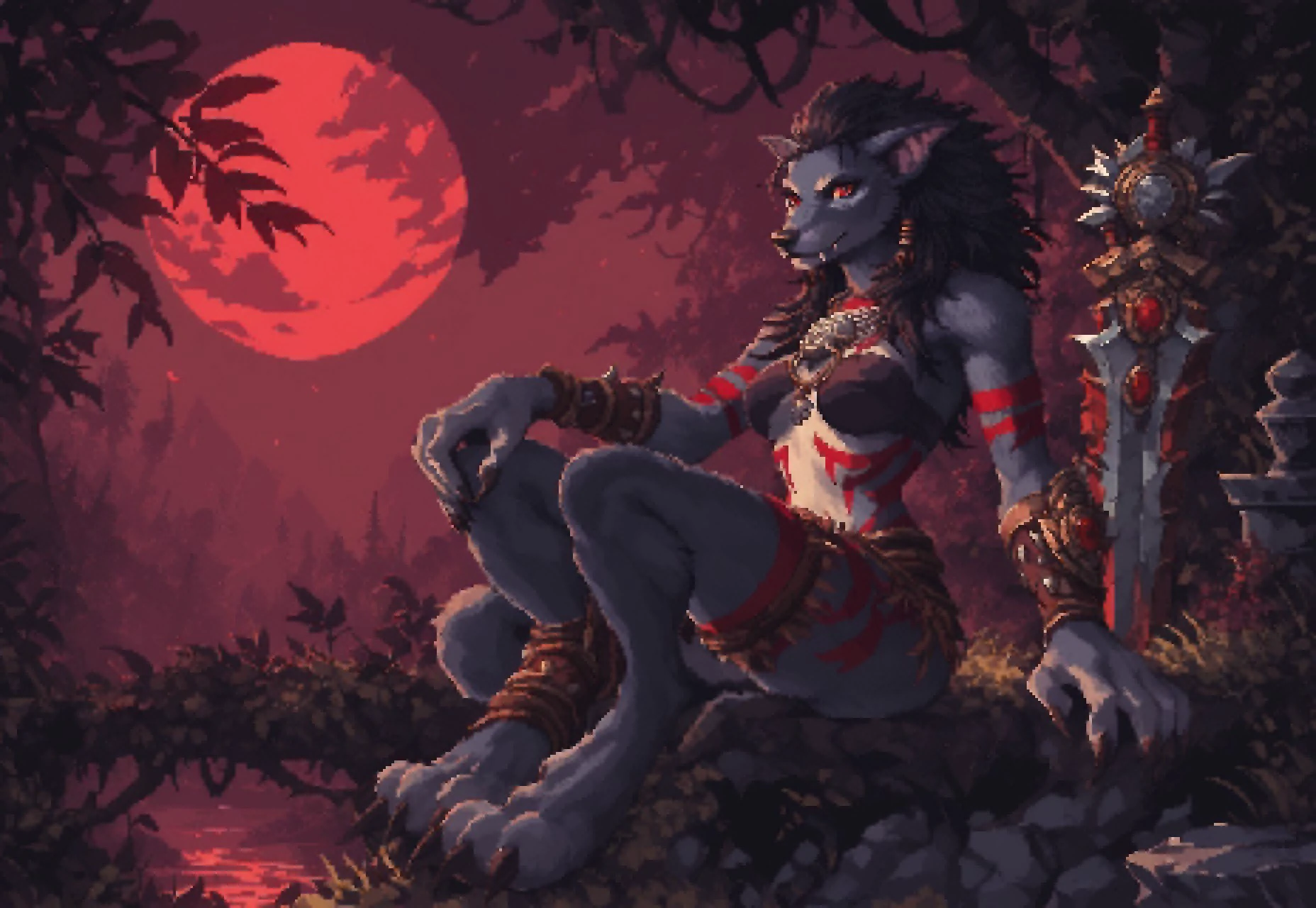 1girl, Worguexl, furry female, worgen, anthro, bodypaint, red eyes, messy hair