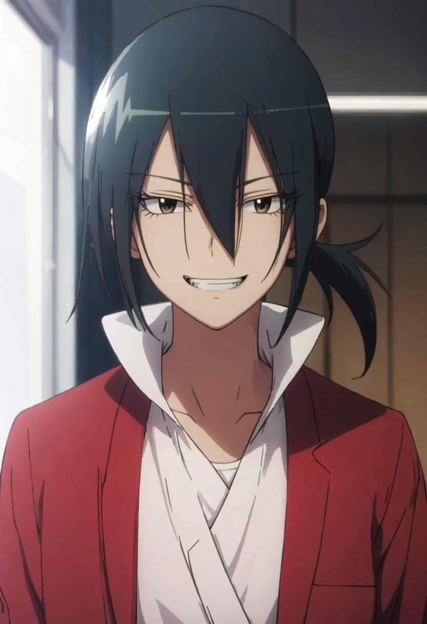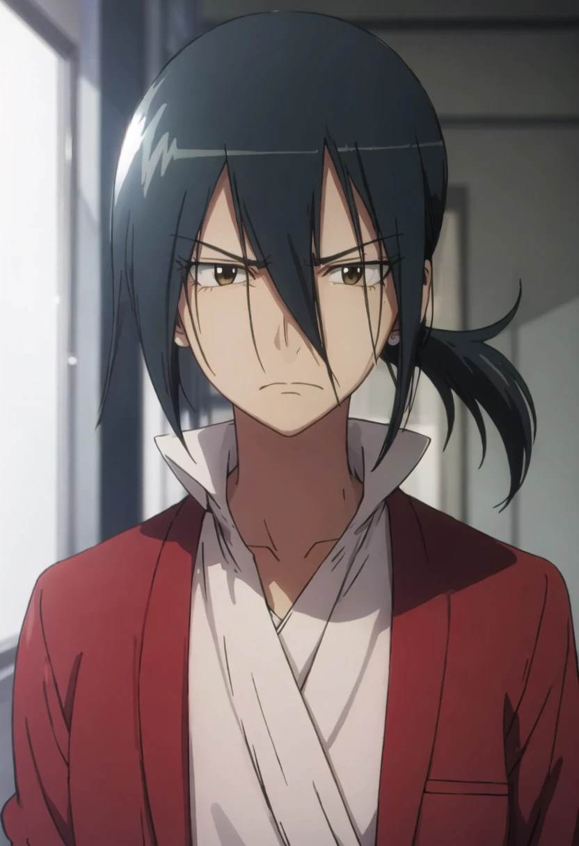 • The pruned character tags are black_hair, ponytail, hair_over_one_eye, black_eyes. You can add them into prompts when core features (e.g. hair color) of character is not so stable.