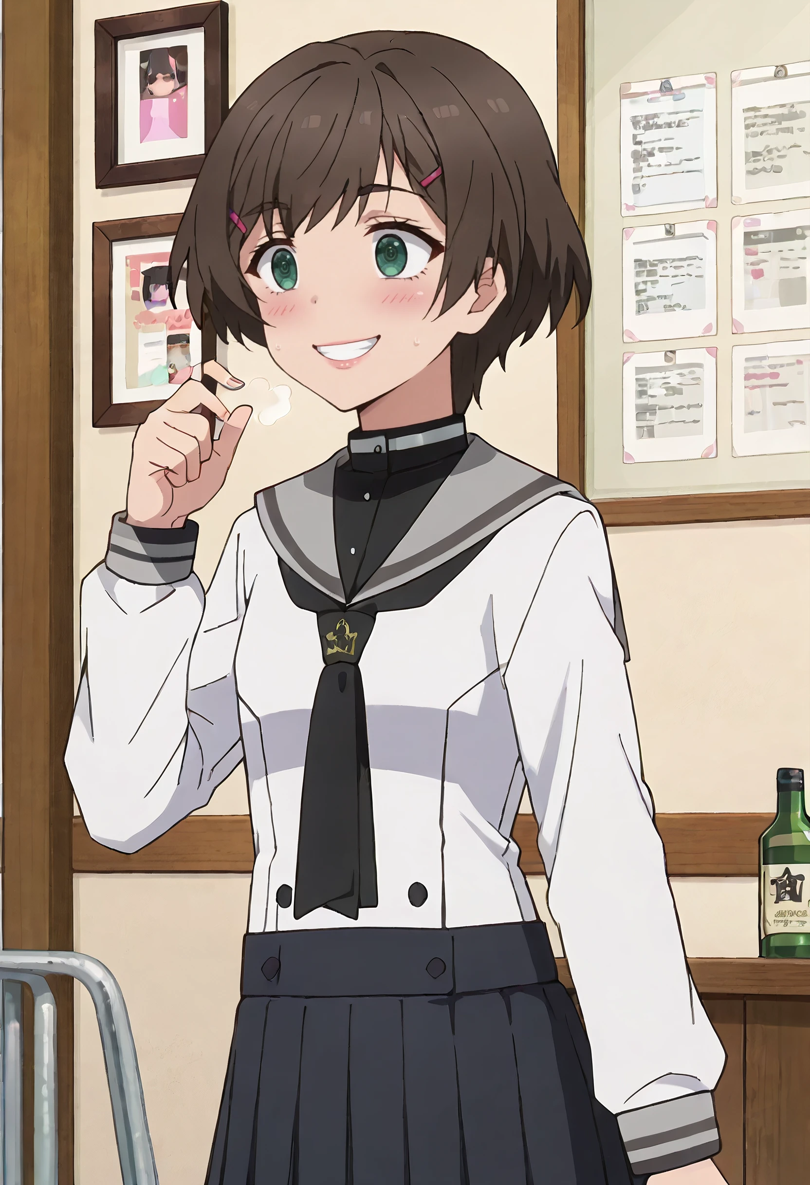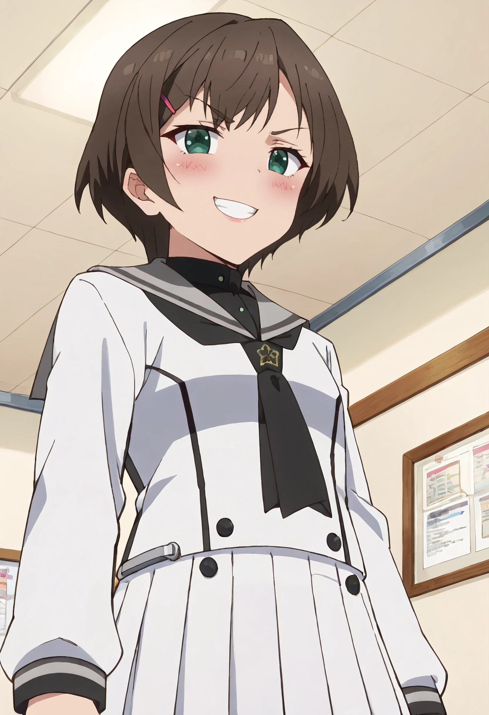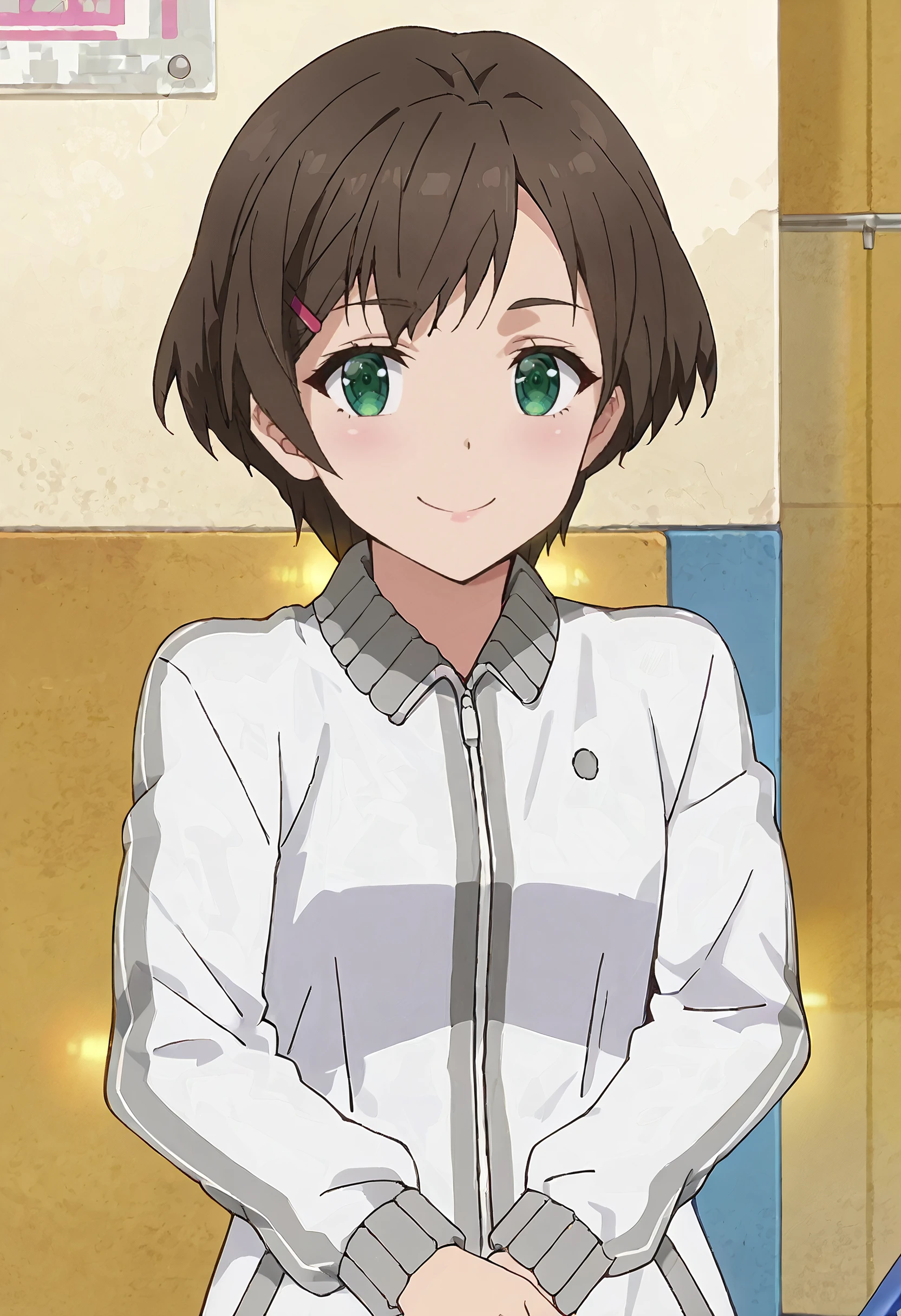 TNMAyumu, short hair, brown hair, hair ornament, hairclip, green eyes,
