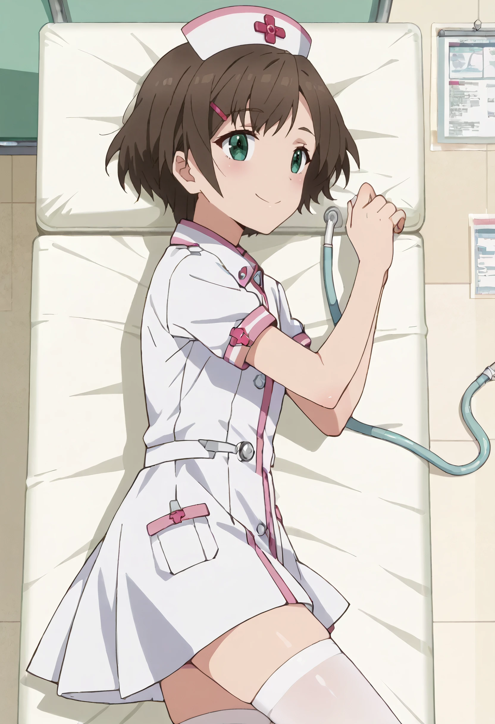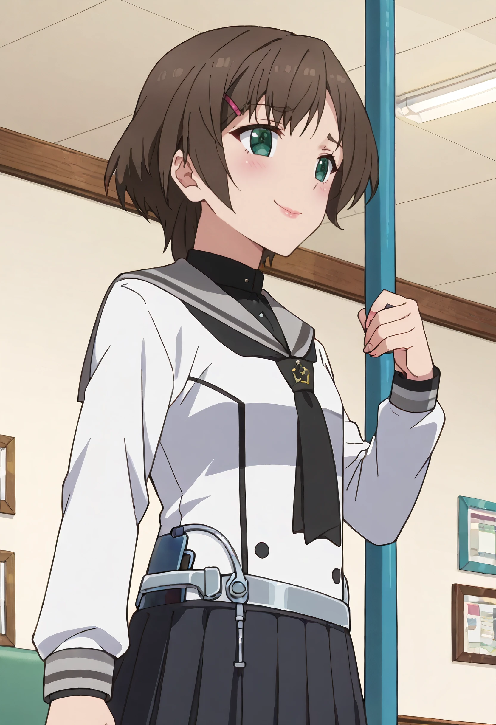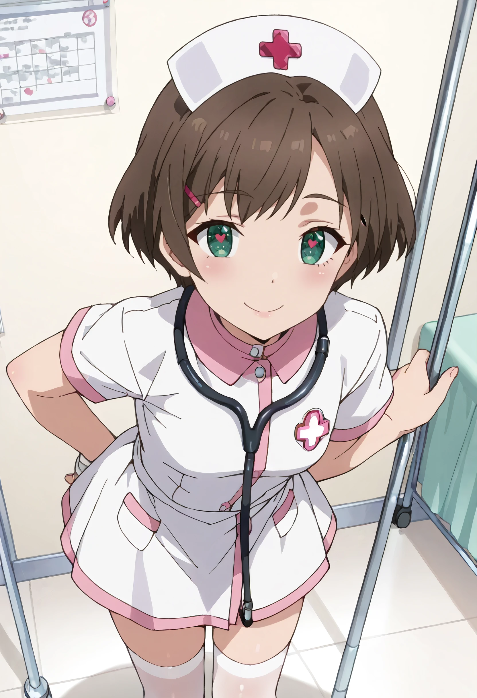 TNMAyumu, short hair, brown hair, hair ornament, hairclip, green eyes,