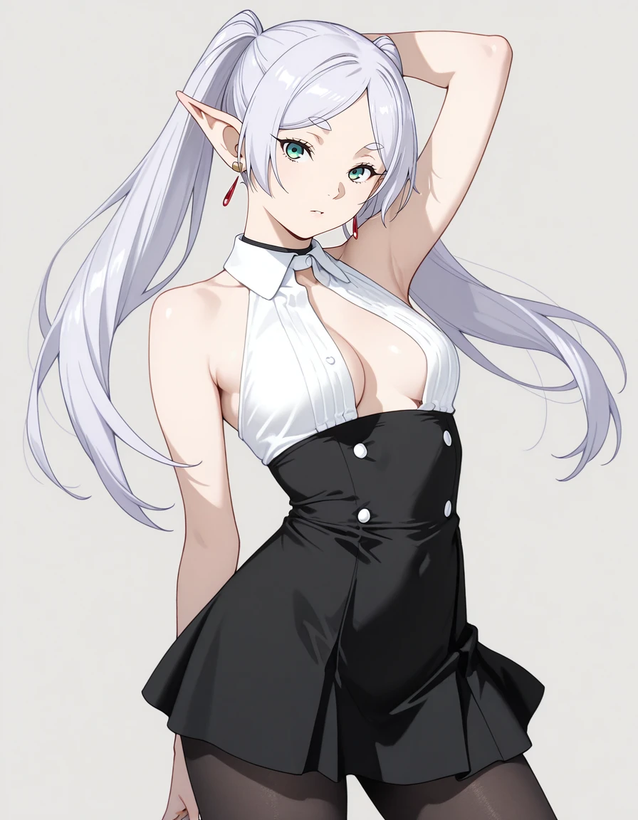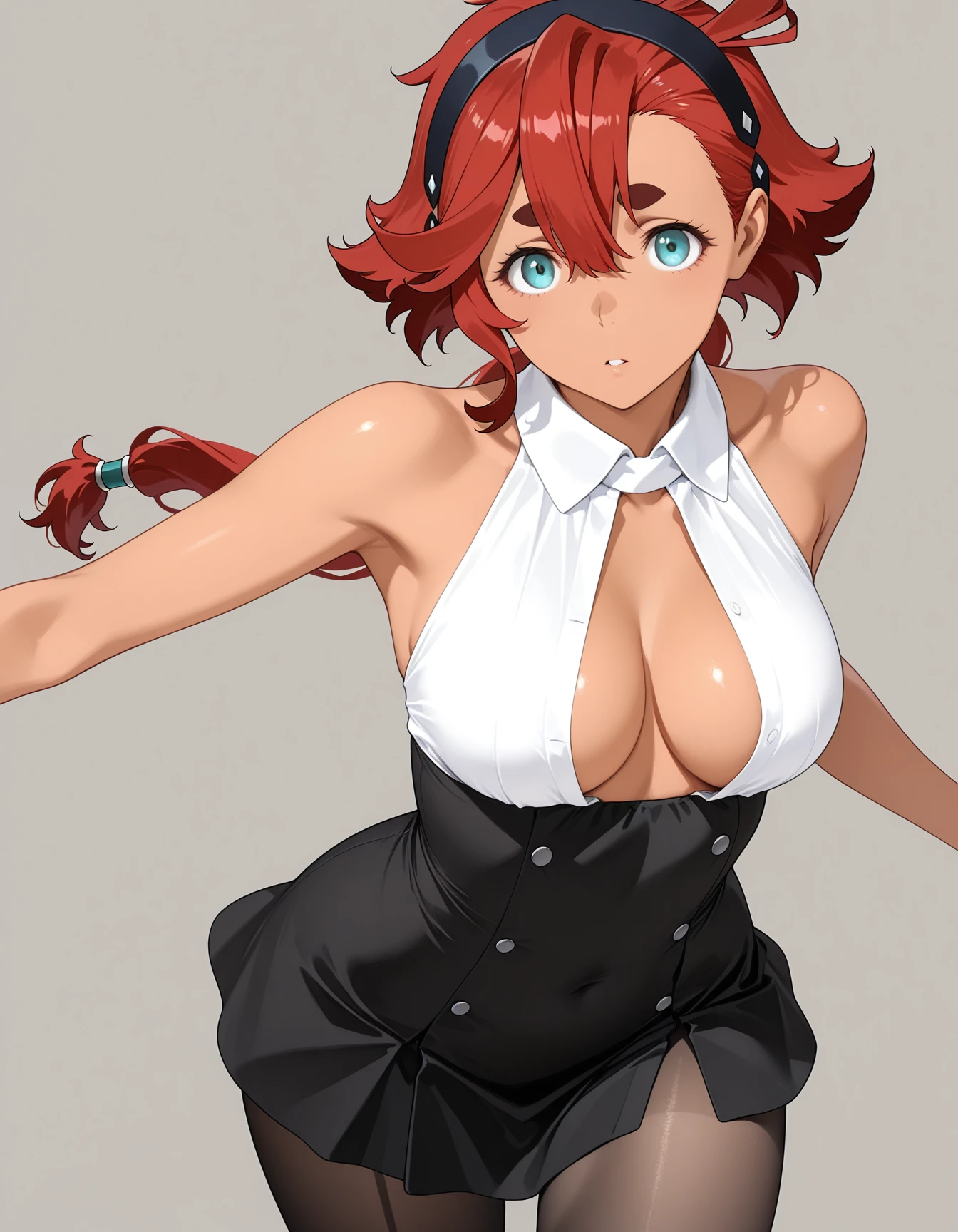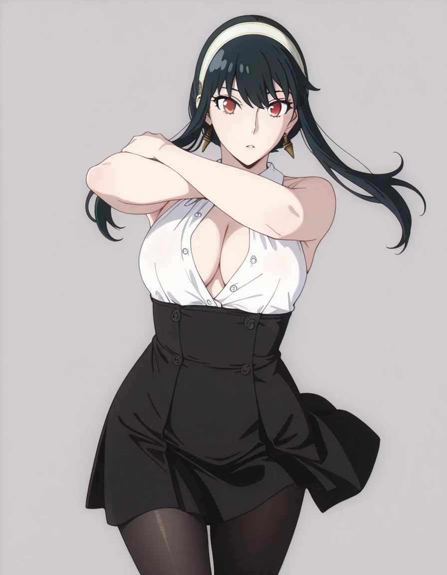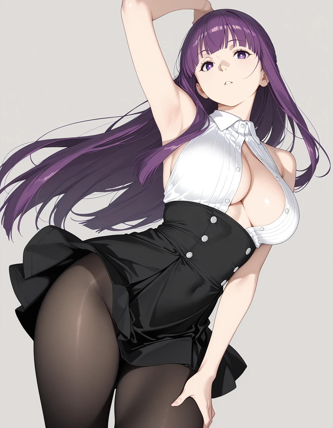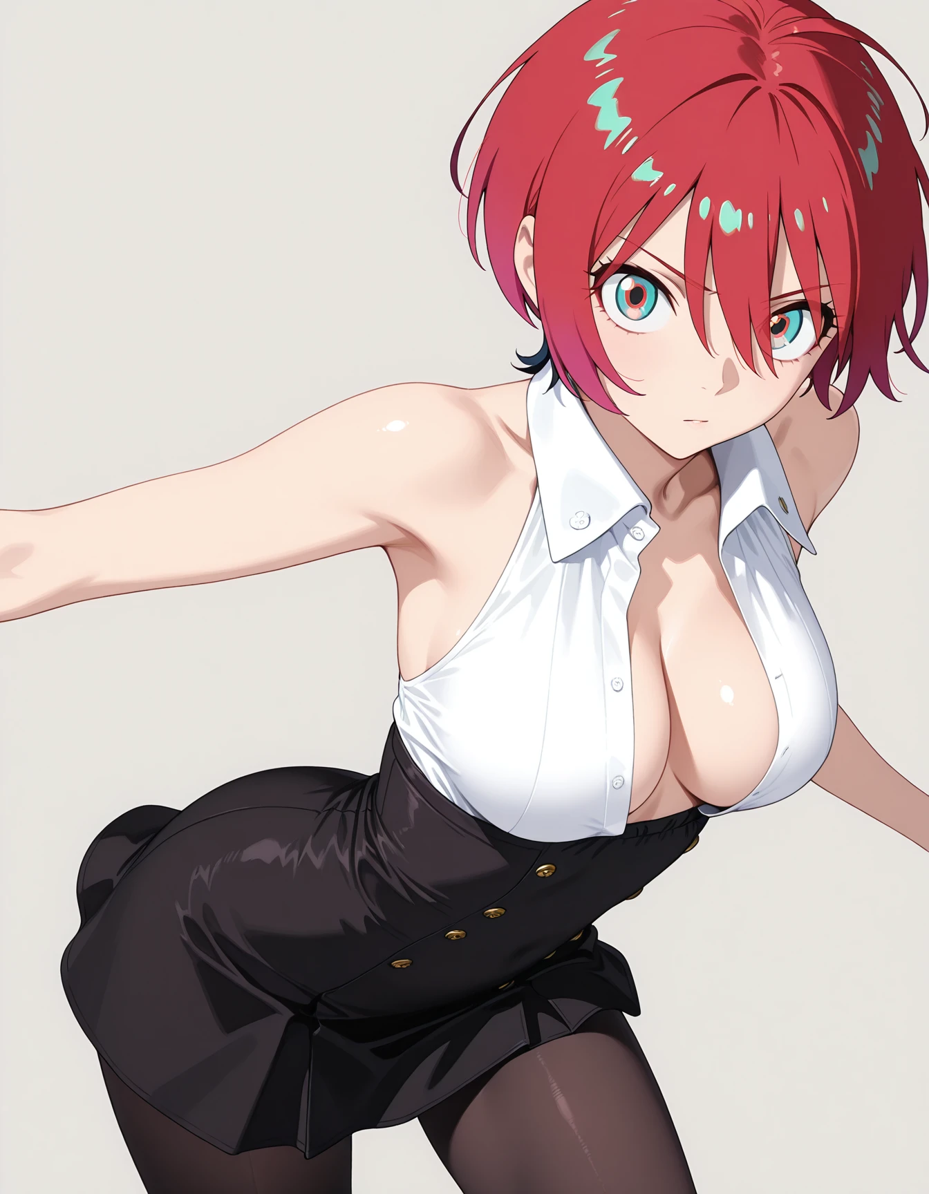 mai_bj_clothing_17,white_shirt,bare_shoulders,sleeveless,black high-waist_skirt,black_pantyhose,cleavage