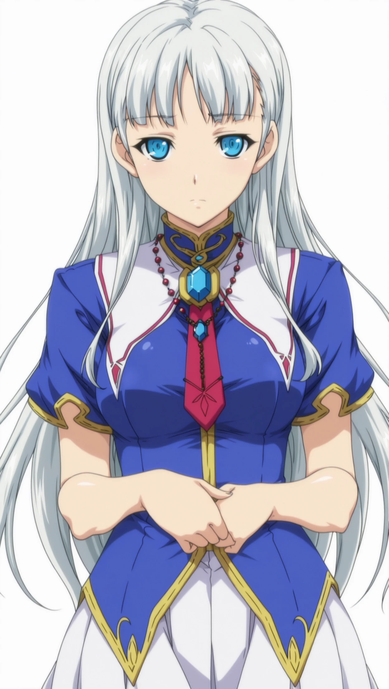 anime coloring, masterpiece, best quality, amazing quality, sherrywhite, 1girl, long hair, silver hair, blue eyes, ??????????????, cross necklace, gem, necktie, dress, short sleeves, skirt, white skirt, solo, pose, standing, looking at viewer, from front, ((((white background, simple background))))⚙️ Generation Settings