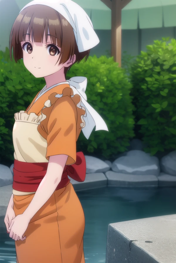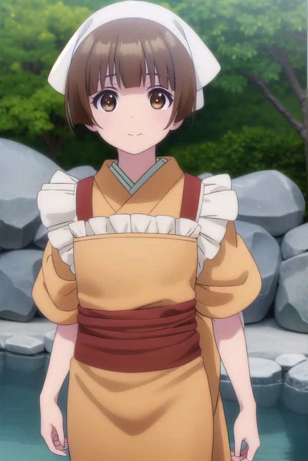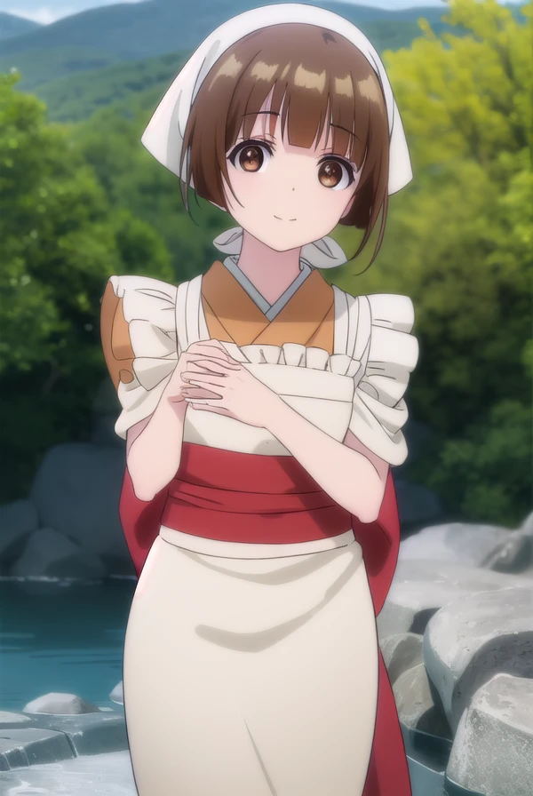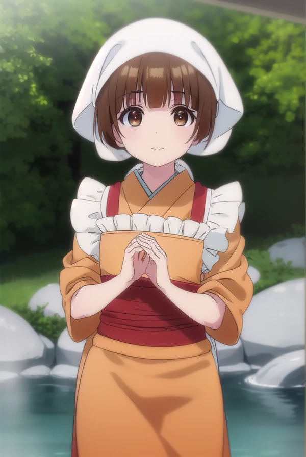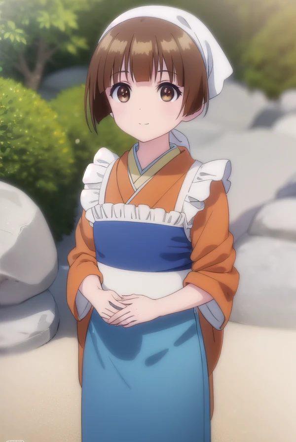 japanese clothes, kimono, apron, head scarf,