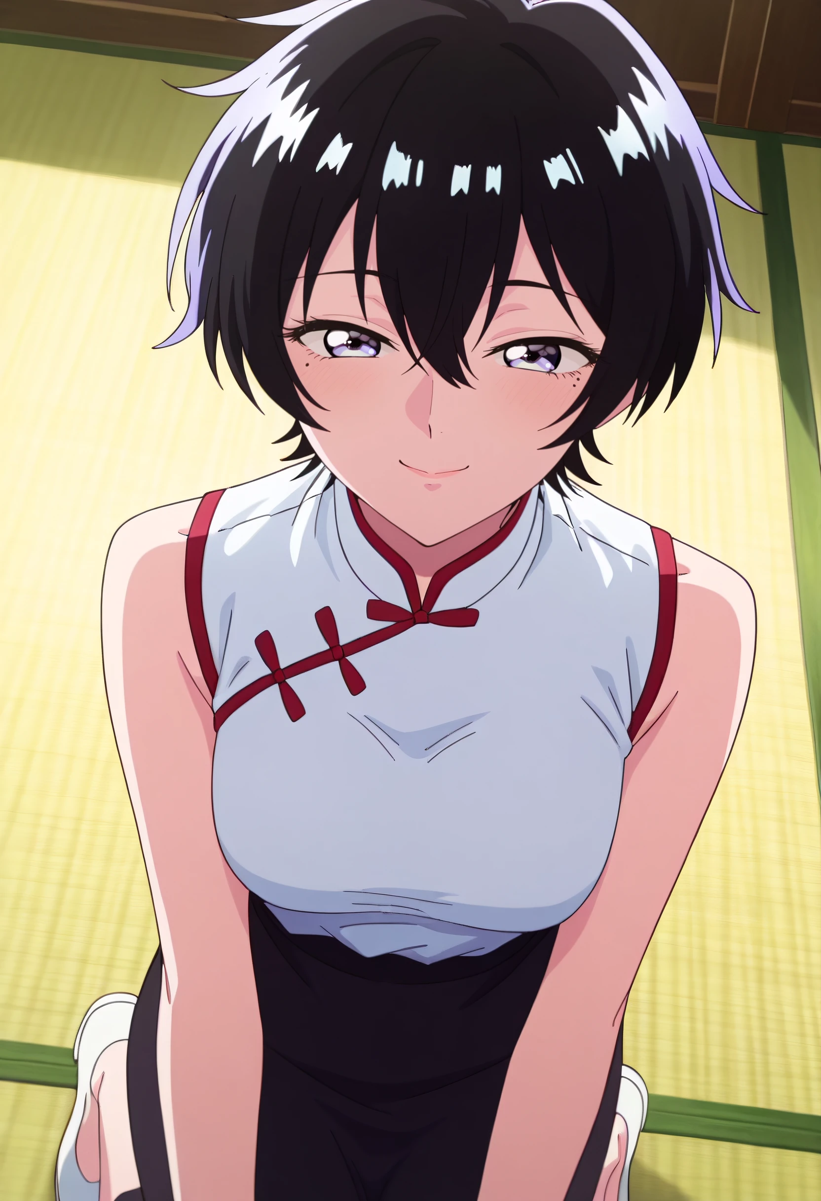 KGRReiko, short hair, black hair, hair between eyes, mole under eye, mole, purple eyes,