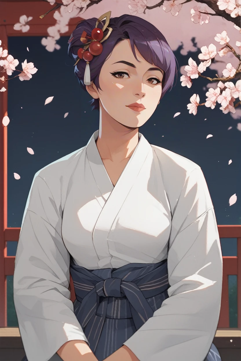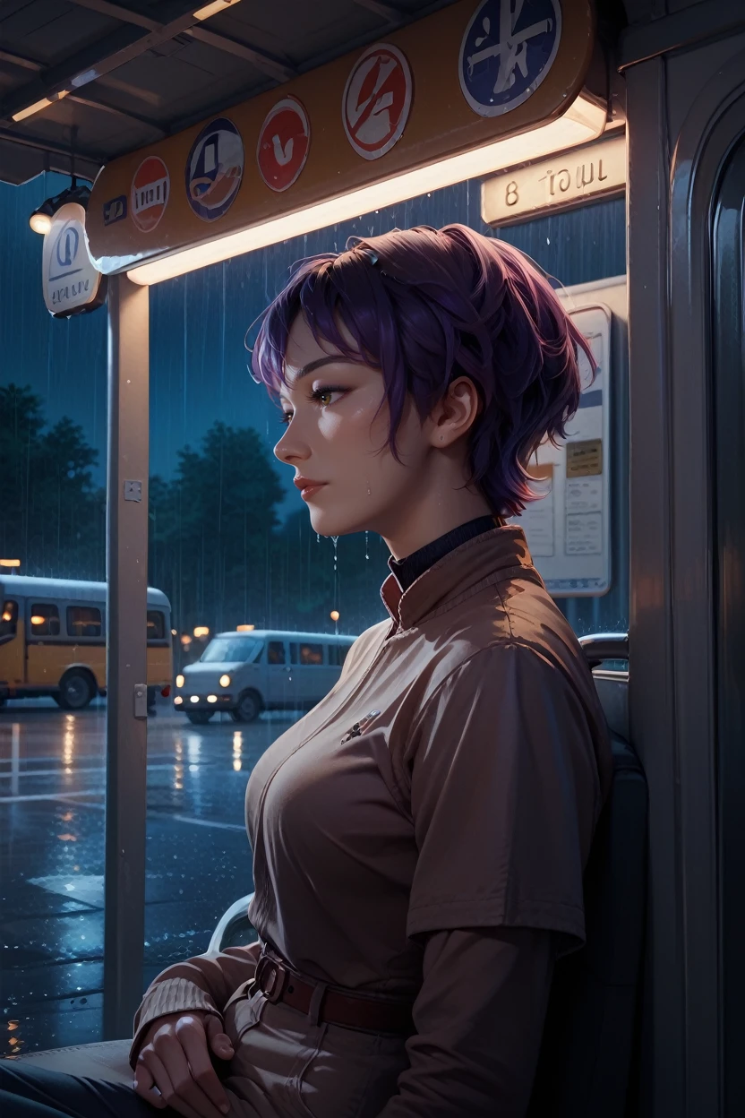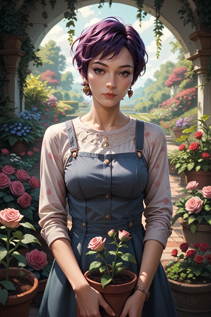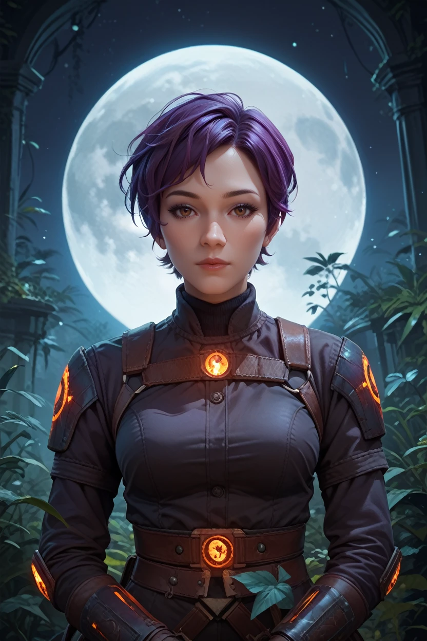 sabinenh, 1girl, purple hair, short hair, brown eyes