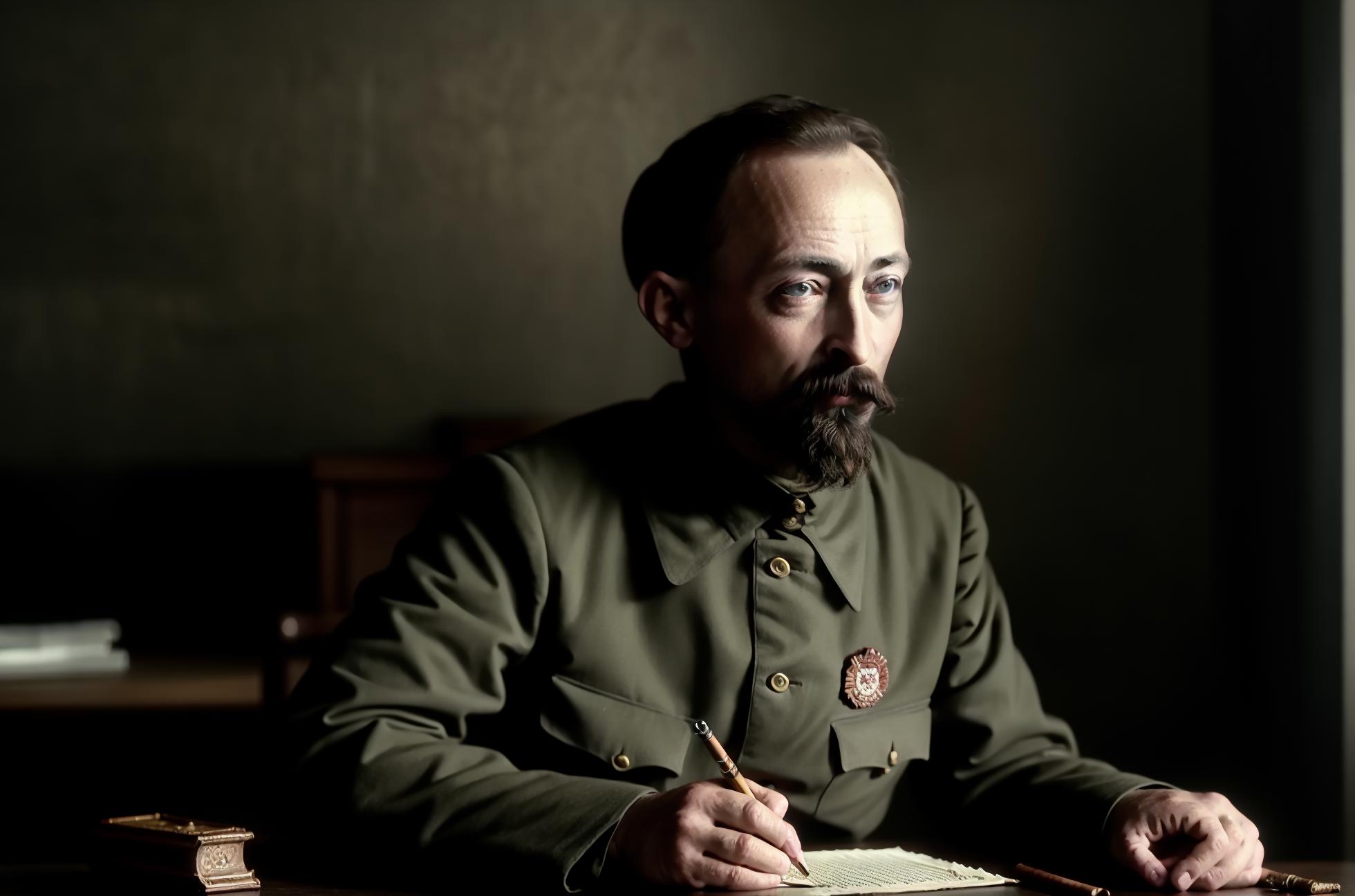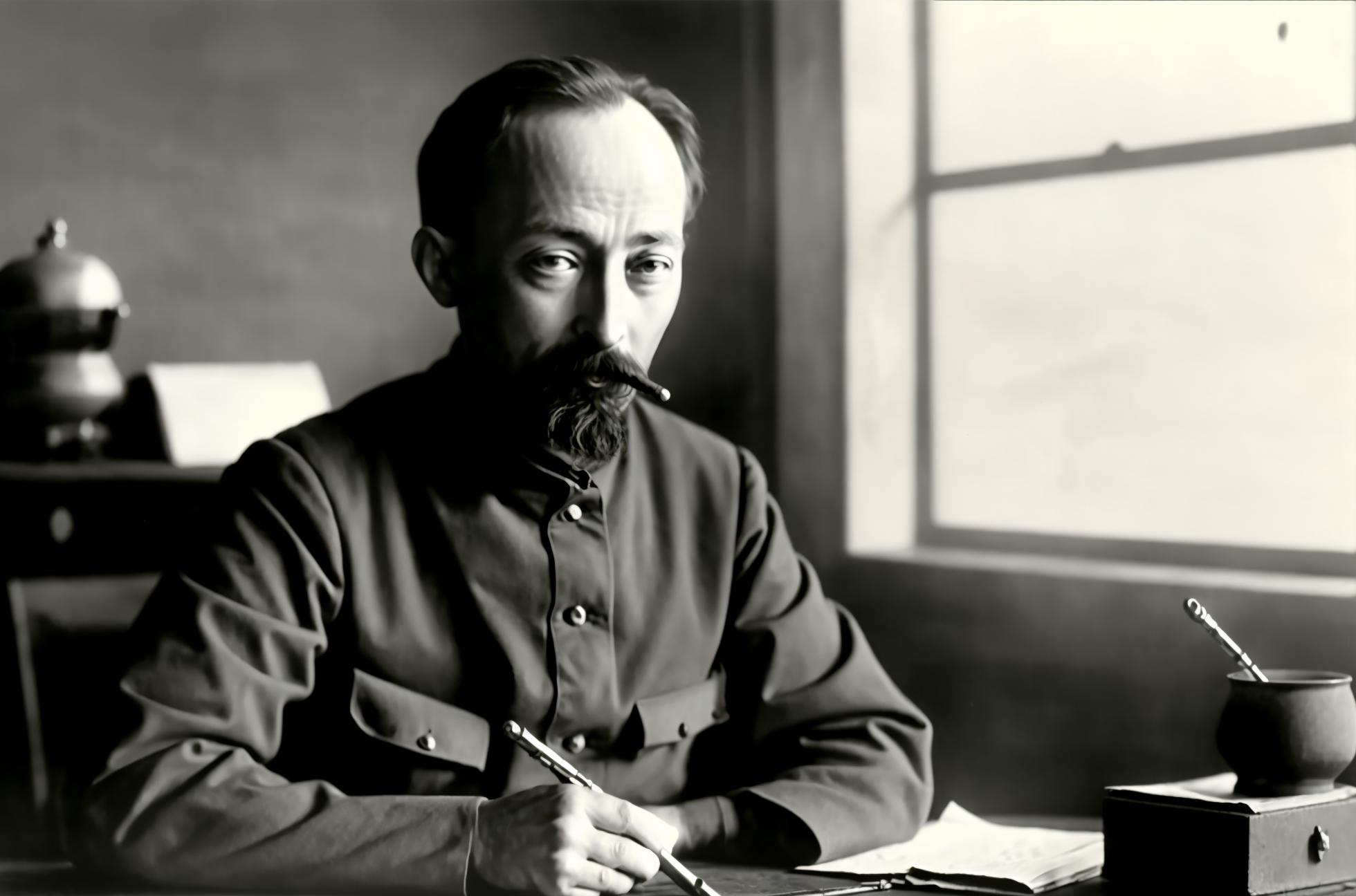 Felix Edmundovich Dzerzhinsky (1877 – 1926), nicknamed "Iron Felix", was a Bolshevik revolutionary and politician. From 1917 until his death in 1926, he led the first two Soviet secret police organizations, the Cheka and the OGPU, establishing state security organs for the post-revolutionary Soviet Union.