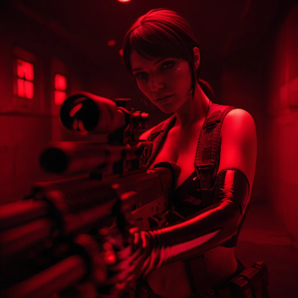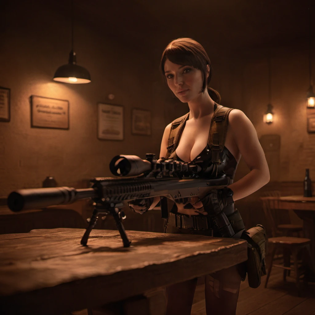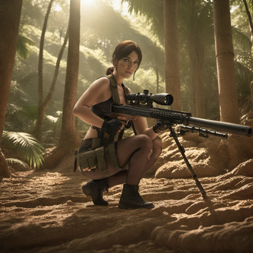 Quiet is a fictional character from Konami's Metal Gear series. Created by Hideo Kojima, designed by Yoji Shinkawa, and based on and voiced by Stefanie Joosten, Quiet appears in the 2015 action-adventure stealth game, Metal Gear Solid V: The Phantom Pain as one of the game bosses opposing the protagonist Venom Snake, but can also become an ally who can go on missions with him. The character is a skilled assassin and sniper with superhuman abilities belonging to the covert strike force XOF, a rogue division of the American intelligence agency Cipher. Depending on the player's actions, she can be captured by Venom Snake and eventually used as a member of his Diamond Dogs mercenary group.