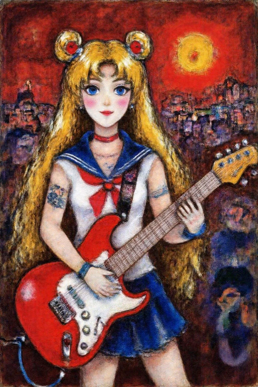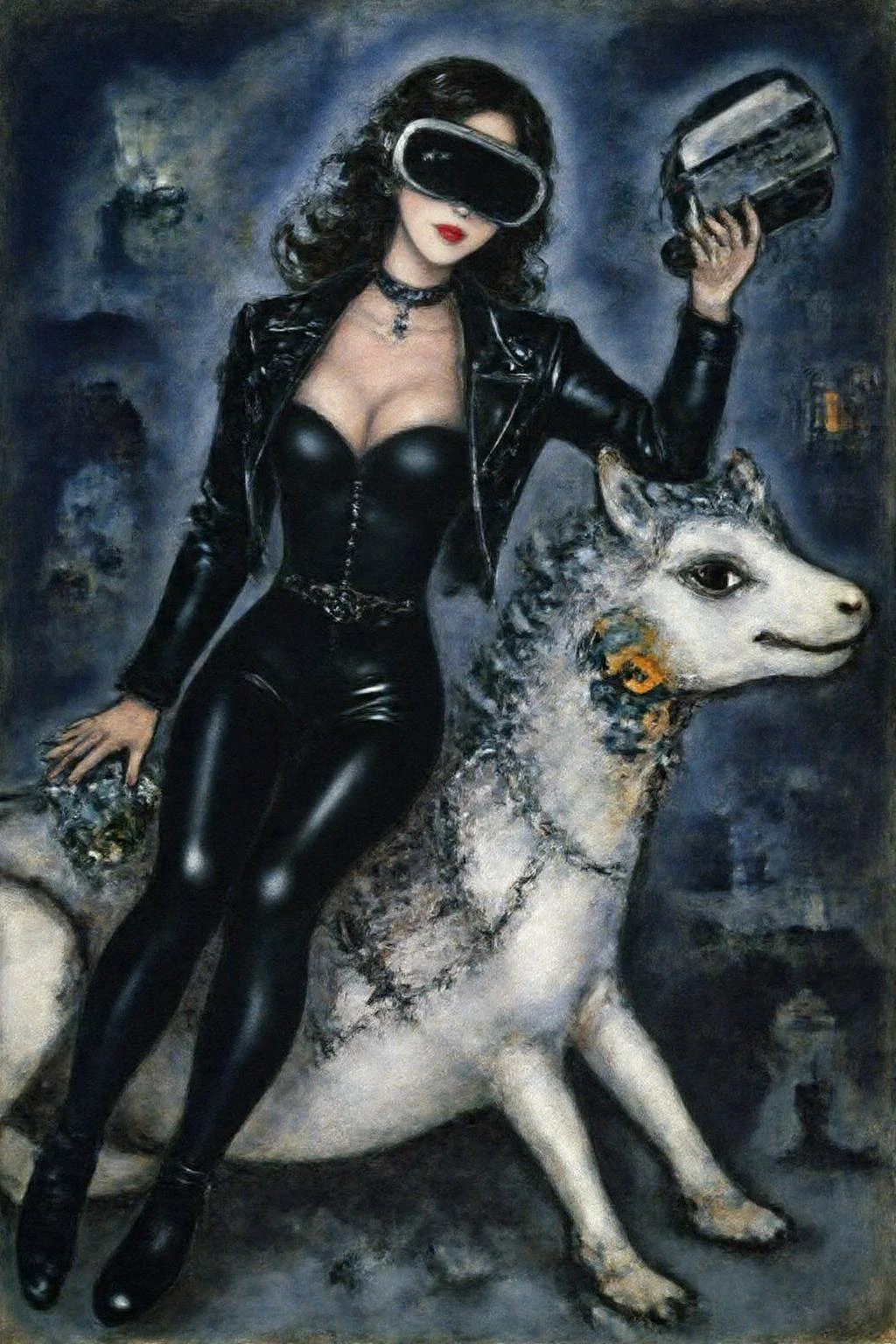 The paintings are abstract enough that I had to go over my usual 10 epochs to "breakthrough" the Flux-Dev realistic style. I've reduced the training set from 19 to 15 and went from 3800 to 4500 steps. My usual training regime of 19 images at 10 epochs just didn't work. If you are curious about that failed version, you can find it at tensor. art/models/813927260986932184/Marc-Chagall-V1-NoCD6A3Cos5-2025-01-01-23:06:50-Ep-10