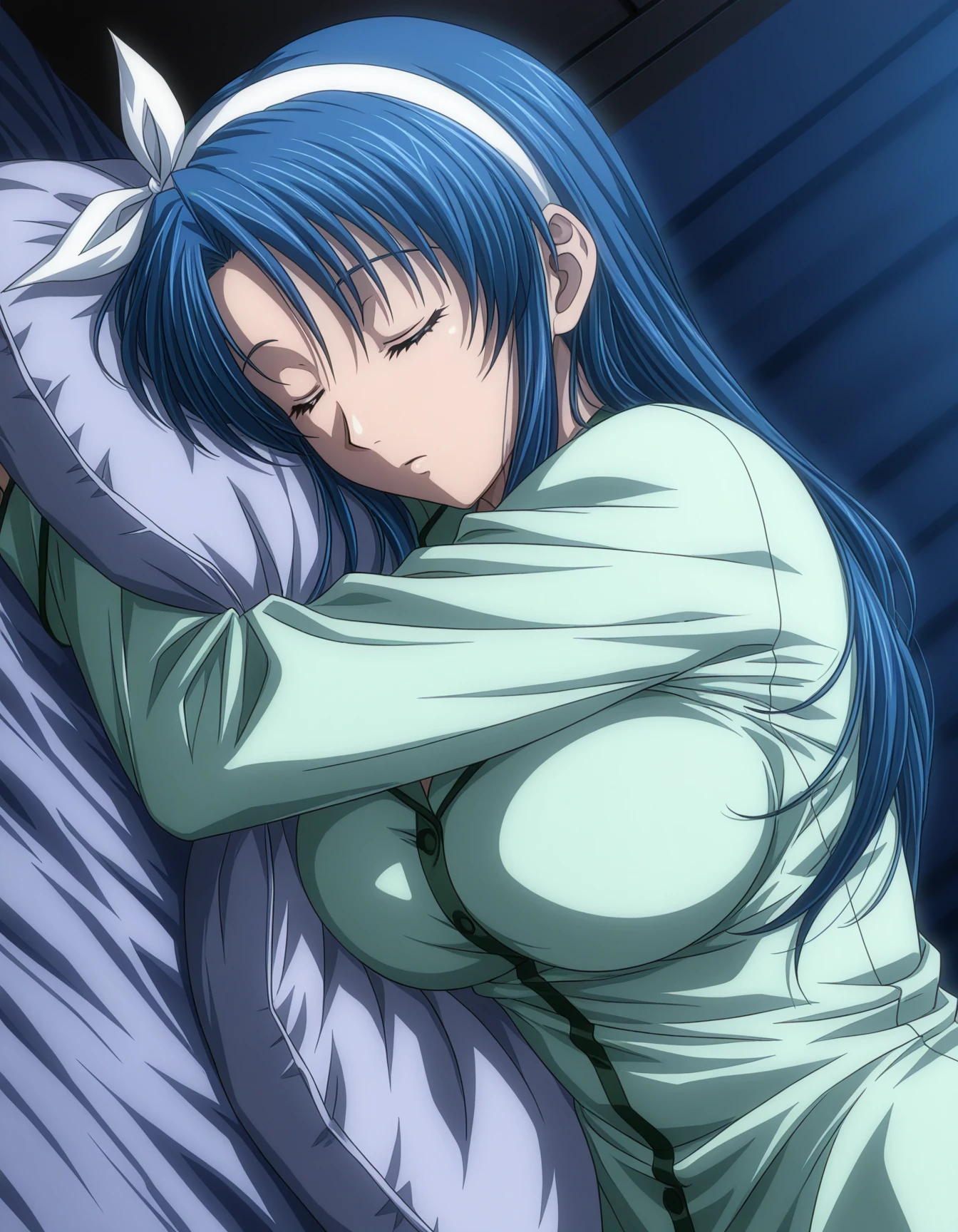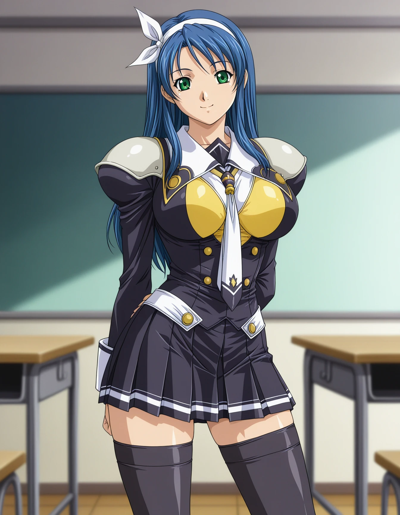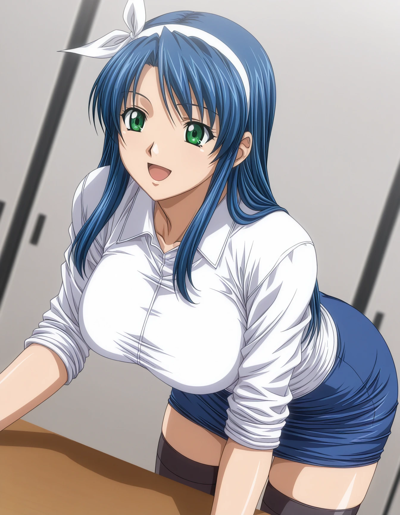 otokawa saori, blue hair, long hair, hairband, green eyesOutfit :