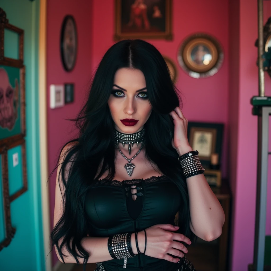 Metal&Gothic Girls Flux is a combination of metal, gothic, and a little bit of punk rock aesthetics mixing up style, fashion and sensuality to create amazing and distinctive looks in these themes that are both delightful and sexy. Add some metal & gothic style to your creations with this Lora and bring forth that dream rock metal or goth woman you always dreamed about into reality! The artwork features different clothing styles and looks capturing that sassy, eye-catching and captivating touch in every creation. The style taps into the visual language of sex, music and rock and roll.