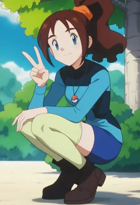 Since the necklace is a Pokeball necklace, the image output often shows the character holding a Pokéball. Therefore, I recommend adding 'holding poke ball' to the Negative Prompt for regular use.