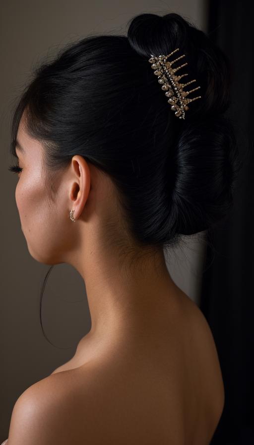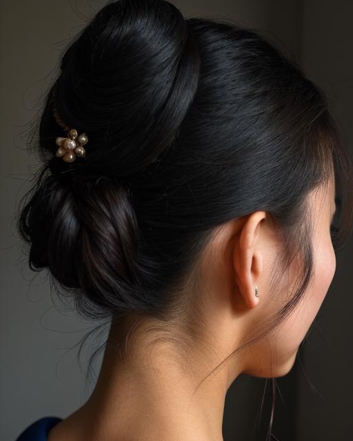 This model is meant to reproduce the view of the back of a woman's head who has hair up in bun. This is usually held in place with a hairclip as a casual hairstyle. The clip is not coming through so well here, but the model should help to keep the generations focused on an unobstructed nape.